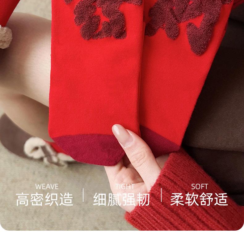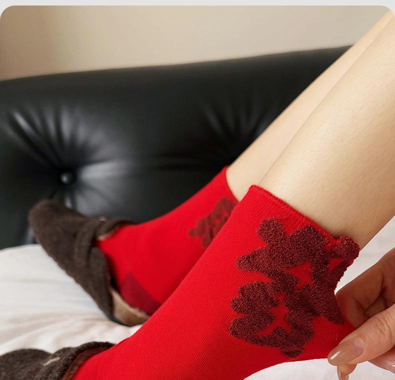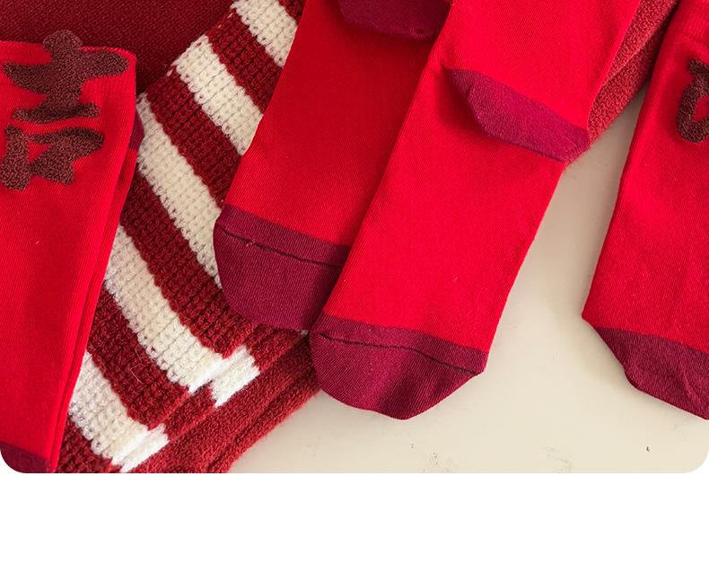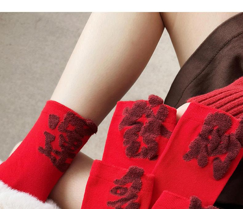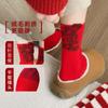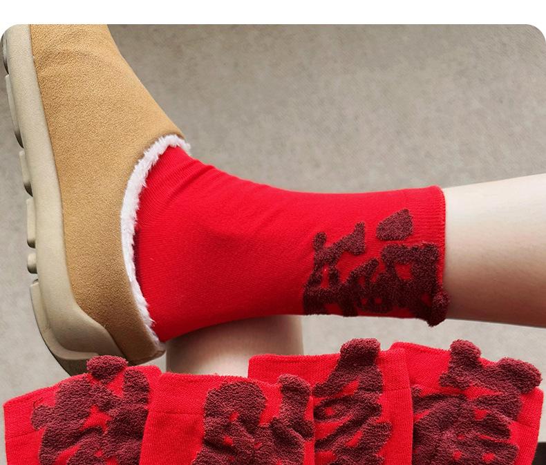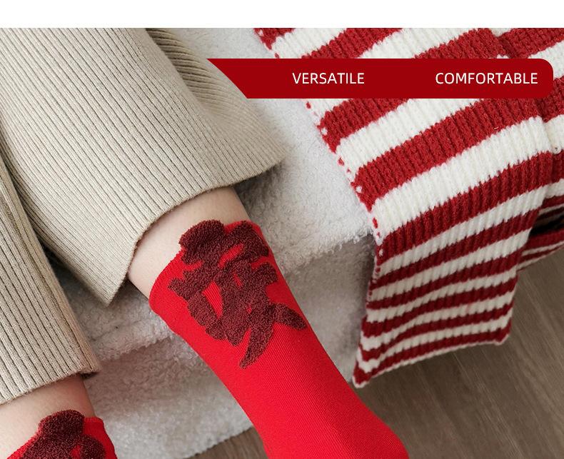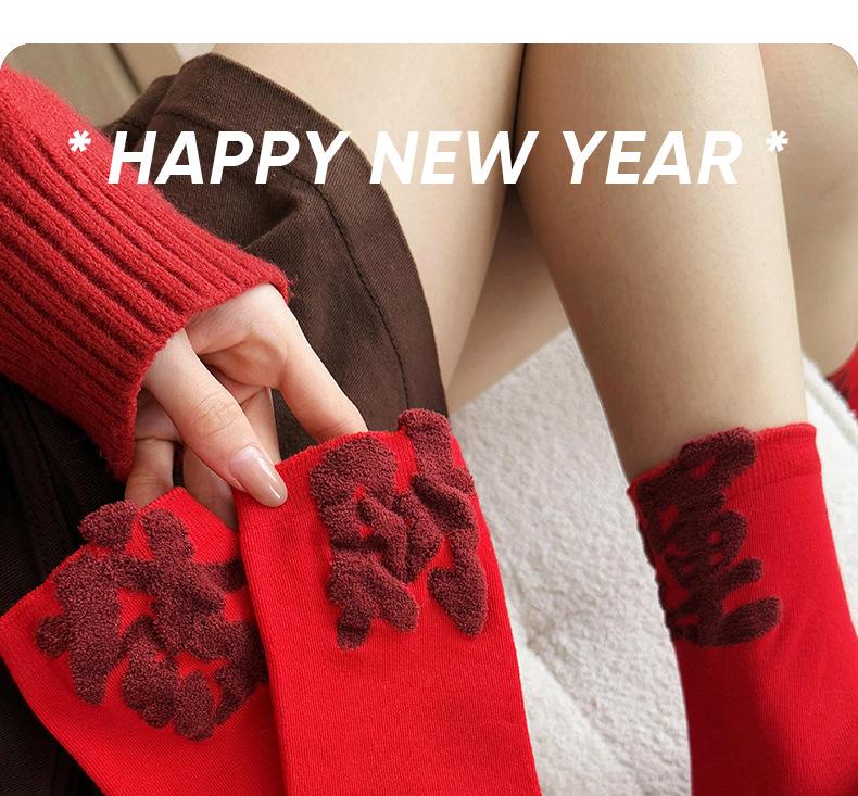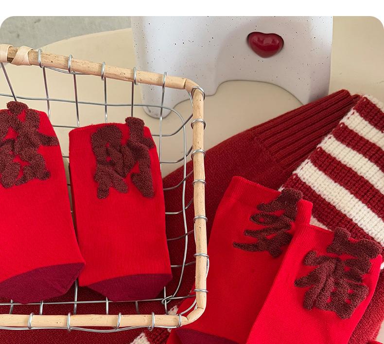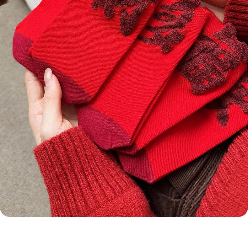 Meias vermelhas femininas festivas deste ano, meias femininas vermelhas de cano médio, confortáveis, criativas e financeiras, meias de algodão tridimensionais, meias de ano novo