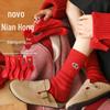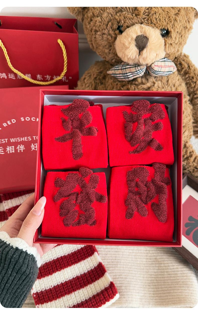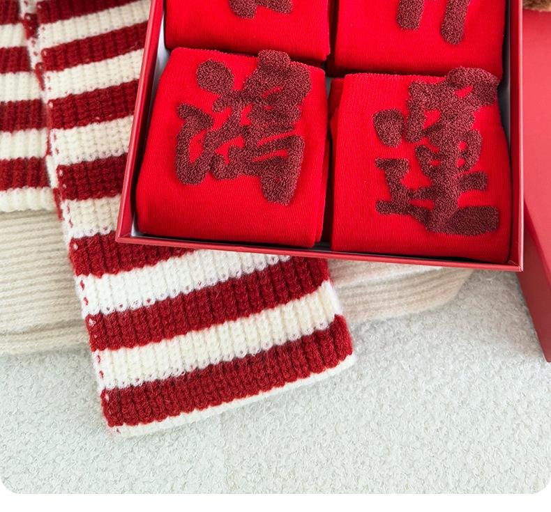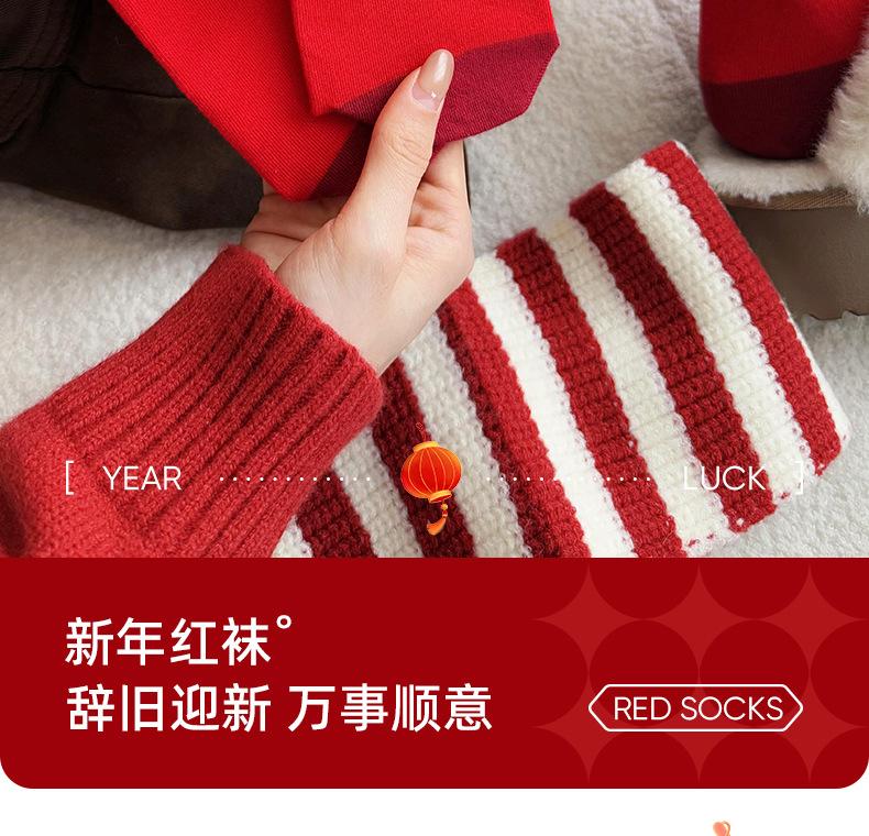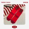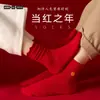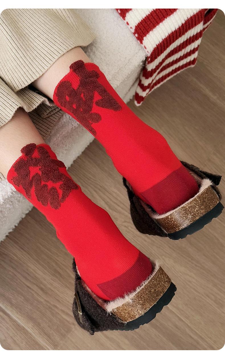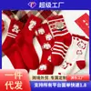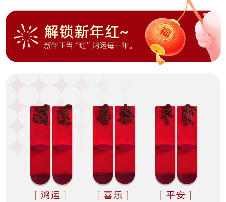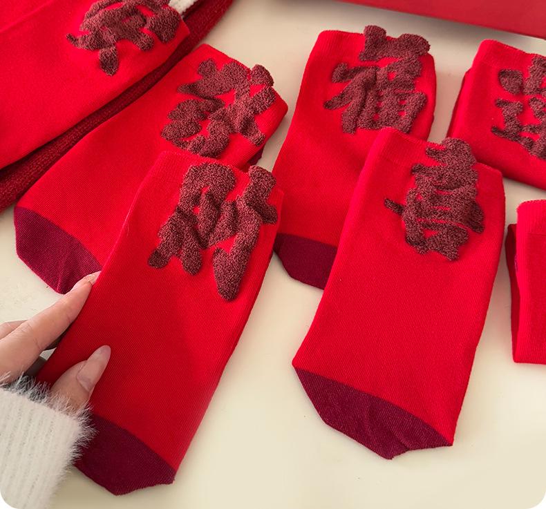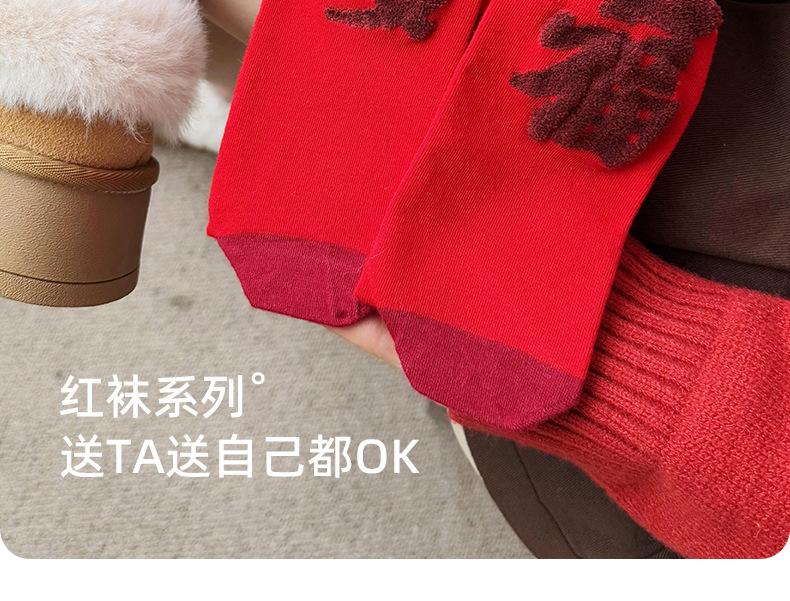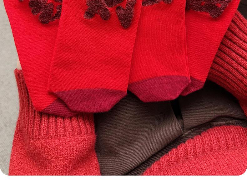 Meias vermelhas femininas festivas deste ano, meias femininas vermelhas de cano médio, confortáveis, criativas e financeiras, meias de algodão tridimensionais, meias de ano novo