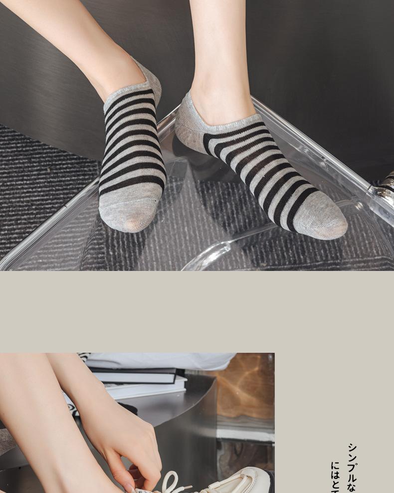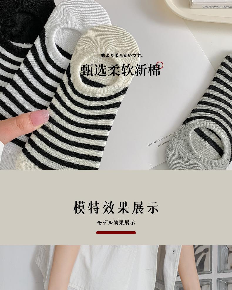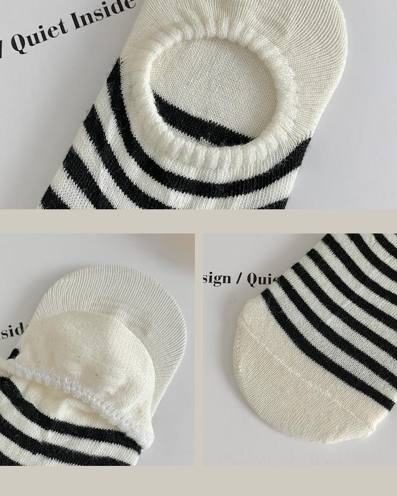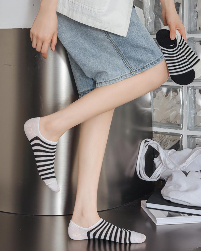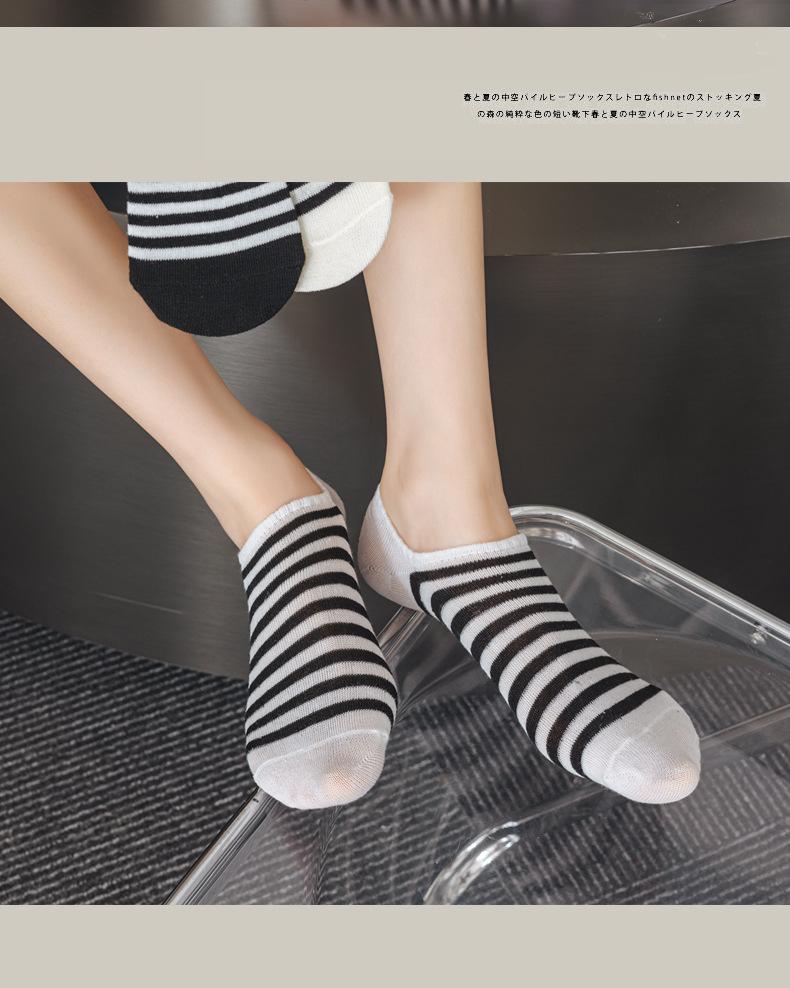 Meias Curtas Listradas Pretas e Brancas Rasas, Meias Invisíveis, Meias Canoa Finas de Verão para Meninas, Venda Quente, Meias Femininas Simples Ultrafinas, Venda Direta da Fábrica