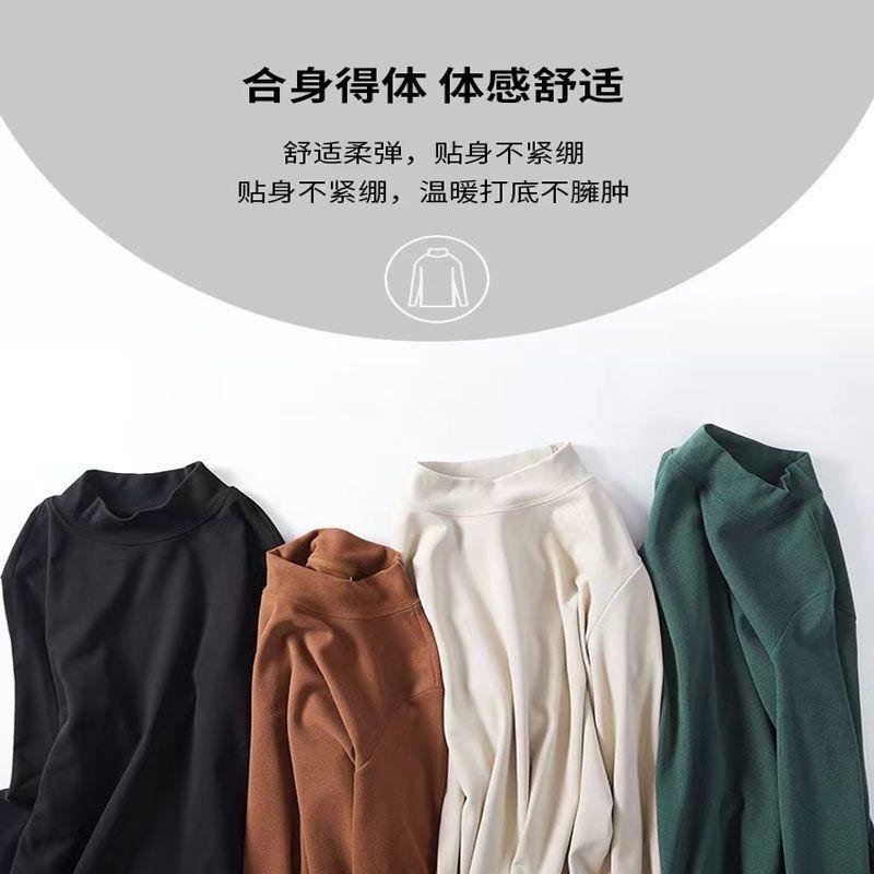 Compre Camiseta masculina de manga comprida com gola semi-alta de veludo dupla face, camisa de base quente, outono e inverno 2025, moda interna, roupas de outono no atacado no Joom.pro