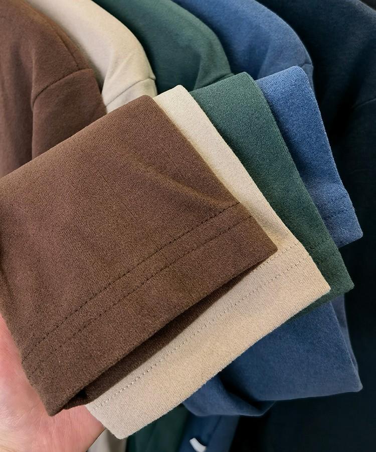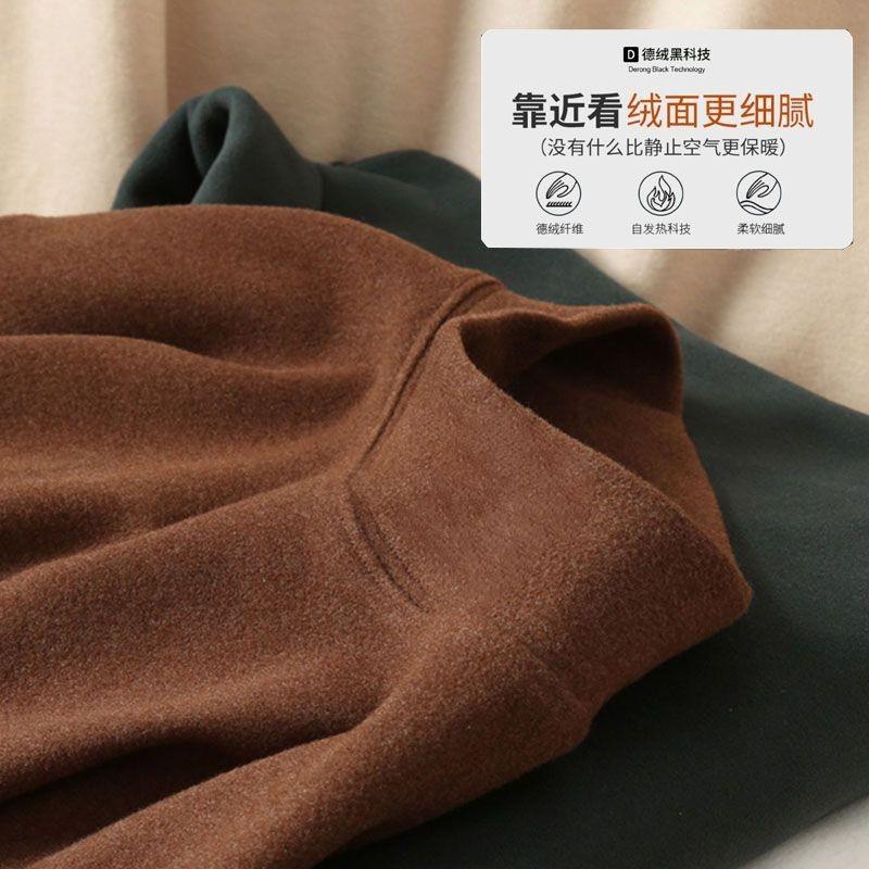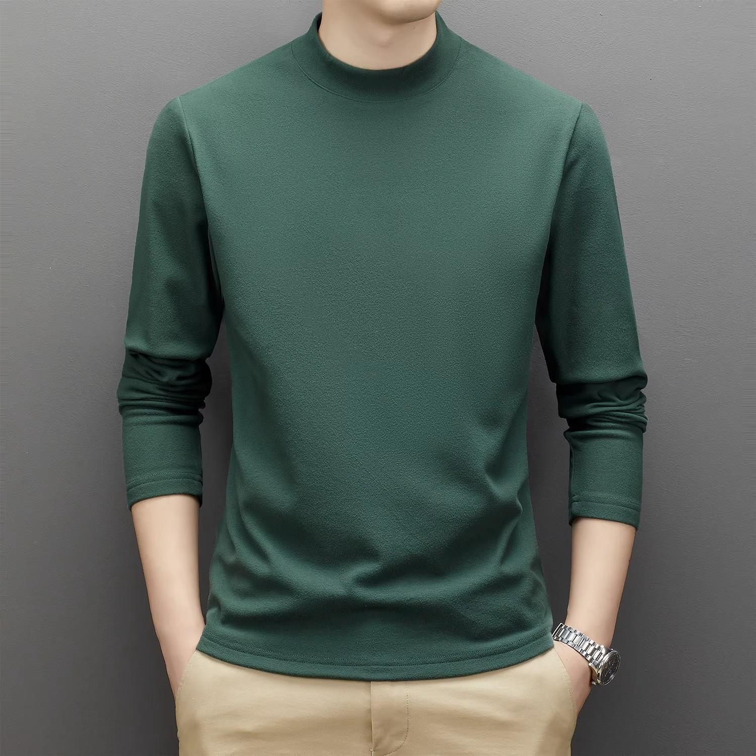 Camiseta masculina de manga comprida com gola semi-alta de veludo dupla face, camisa de base quente, outono e inverno 2025, moda interna, roupas de outono