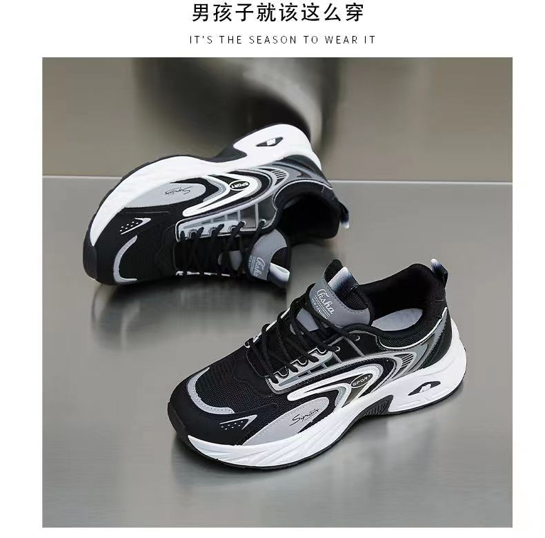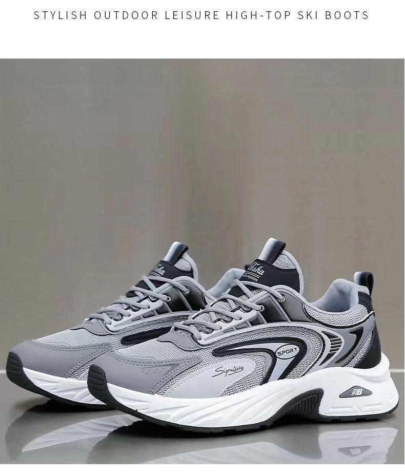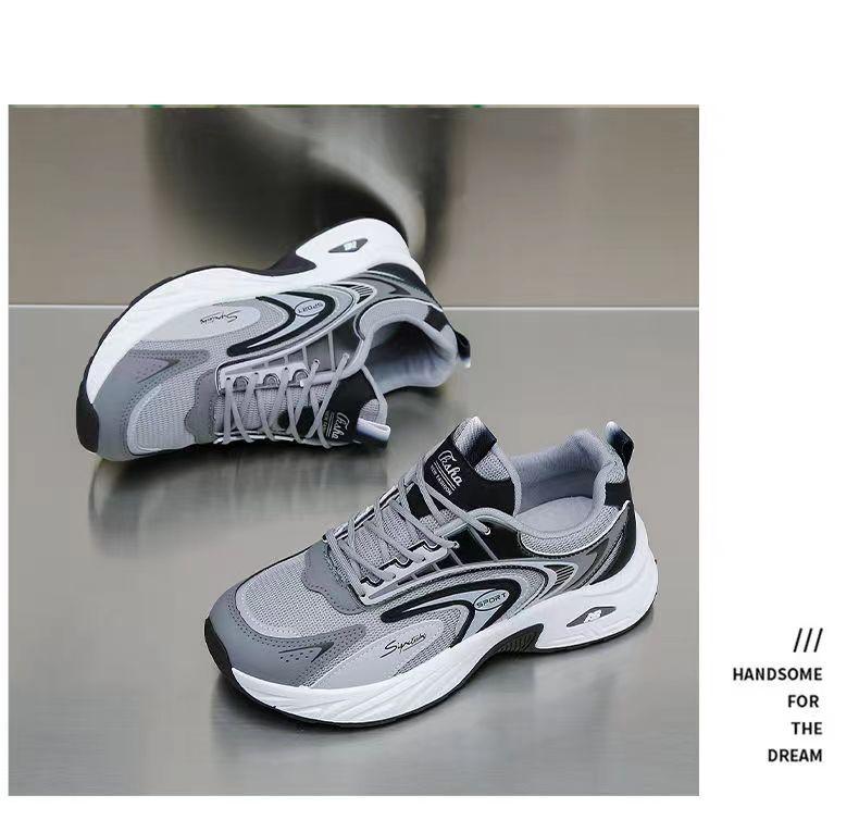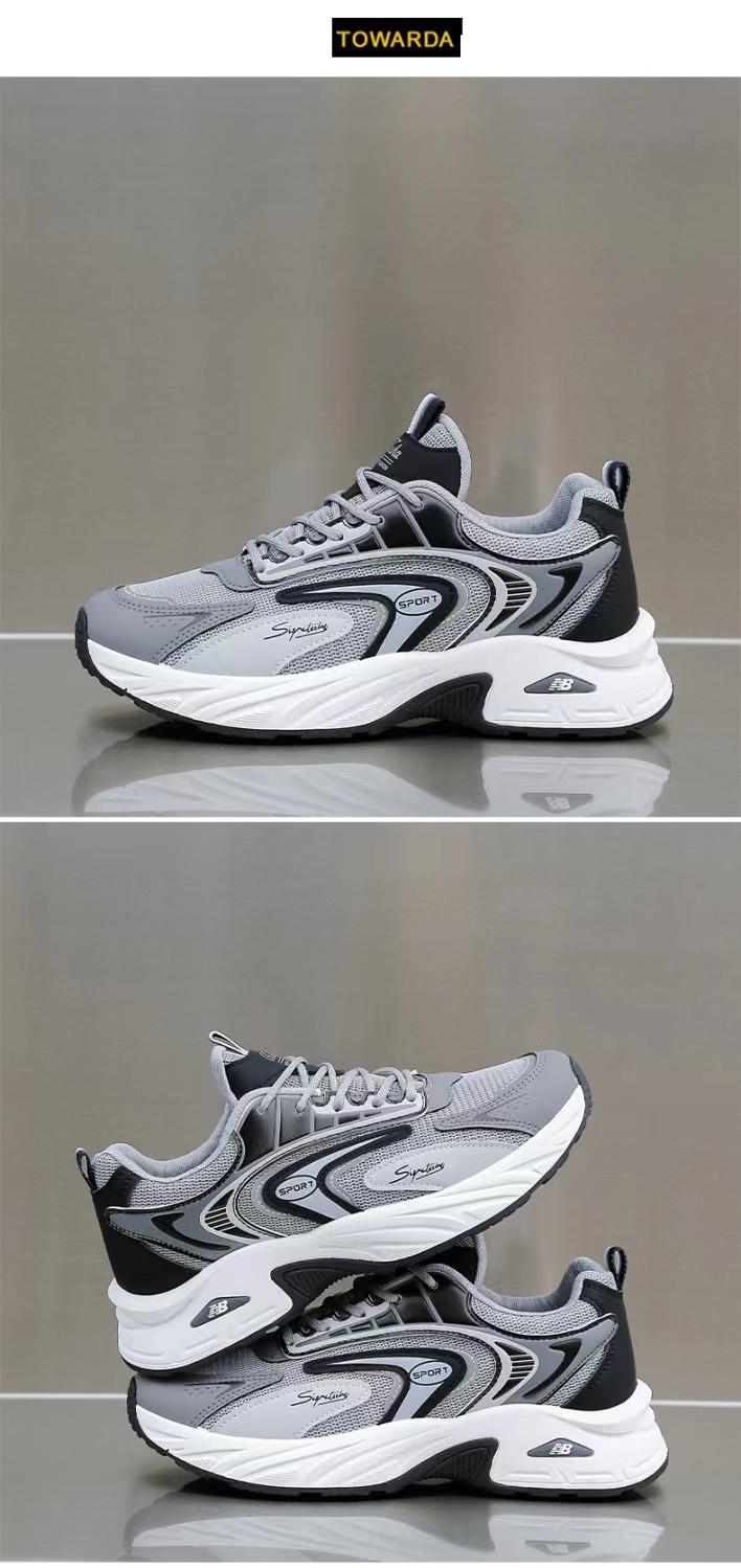 Sapatos Esportivos, Sapatos Casuais de Solado Macio para Outono e Inverno, Sapatos de Couro Pretos, Tênis de Corrida, Sapatos de Pai de Meia-Idade, Saltos Baixos, Confortáveis e Vazados