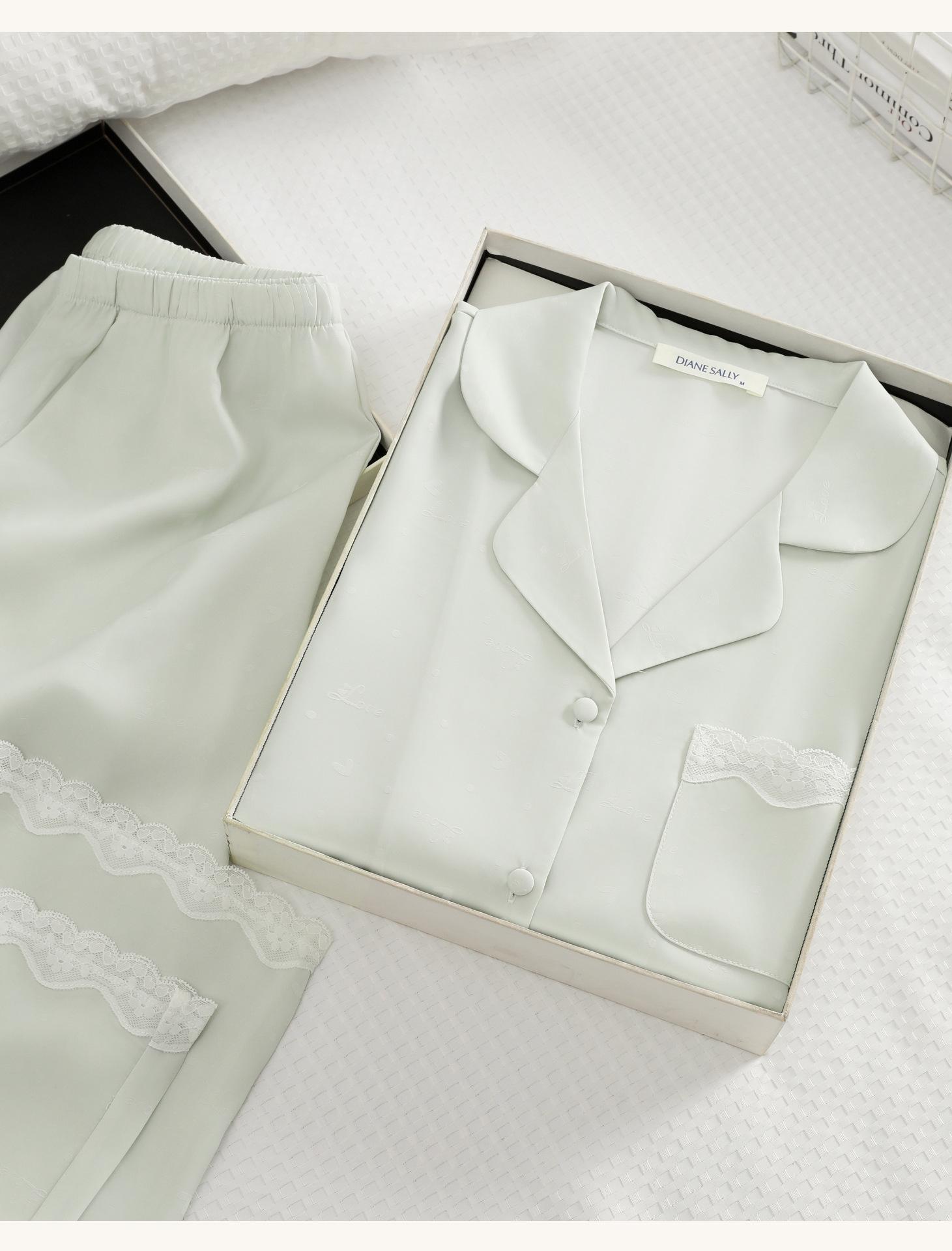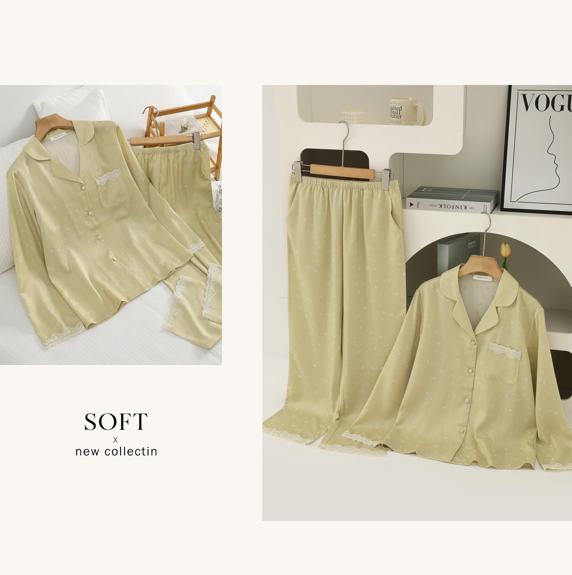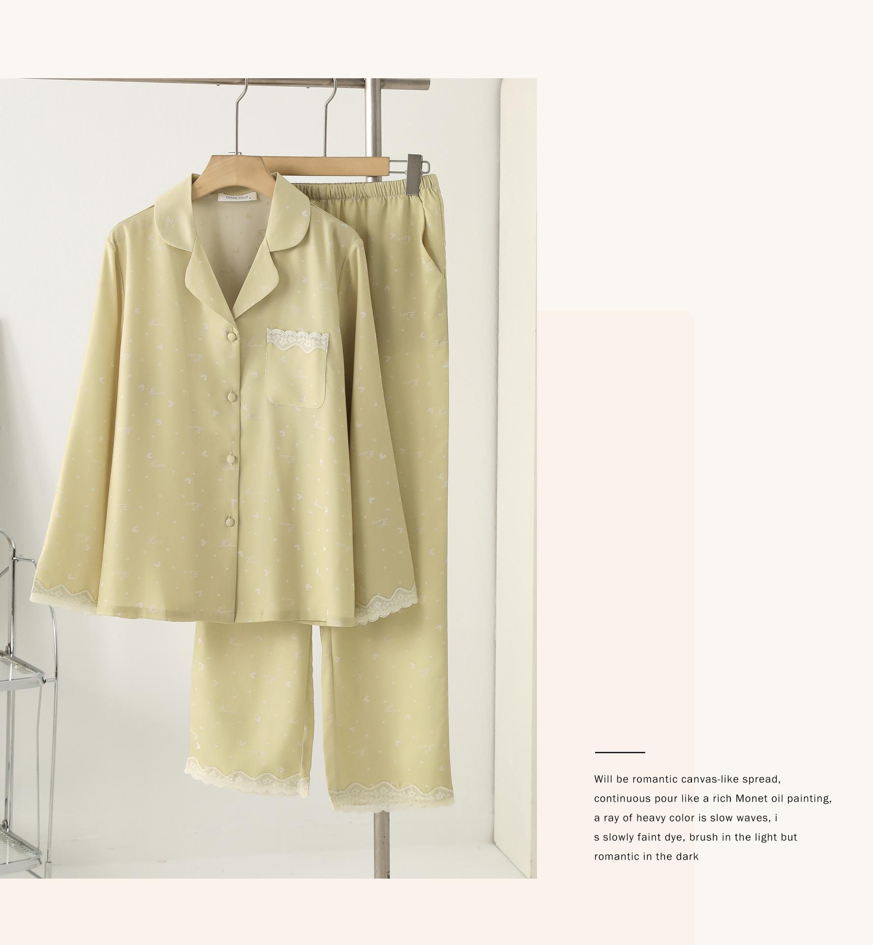 Pijamas Personalizados para Mulheres na Primavera e Outono, Calças de Manga Longa de Seda Gelo Fina de Alta Qualidade, Conjunto de Roupa de Casa Doce e Fashion para Mulheres