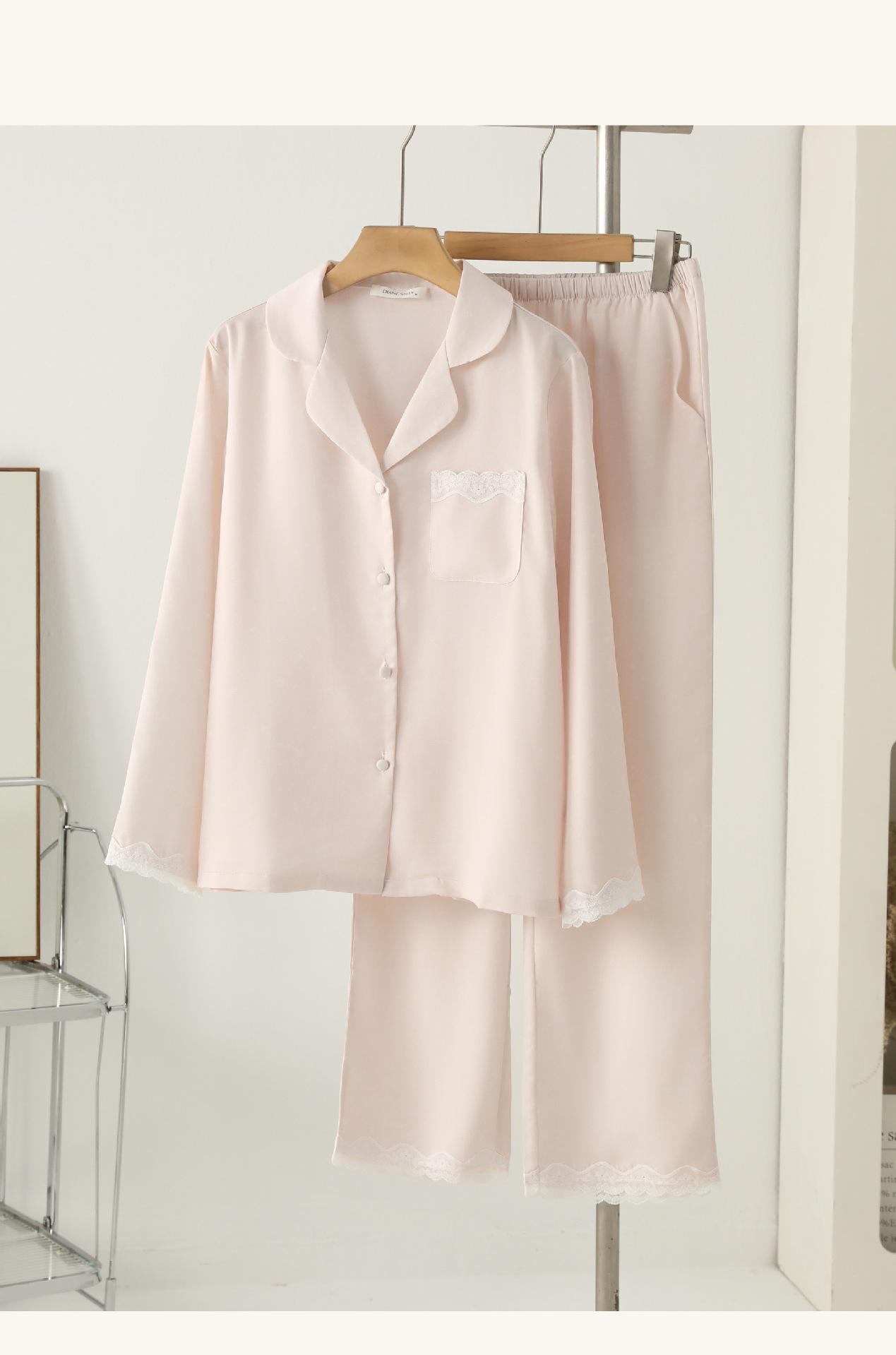 Compre Pijamas Personalizados para Mulheres na Primavera e Outono, Calças de Manga Longa de Seda Gelo Fina de Alta Qualidade, Conjunto de Roupa de Casa Doce e Fashion para Mulheres no atacado no Joom.pro