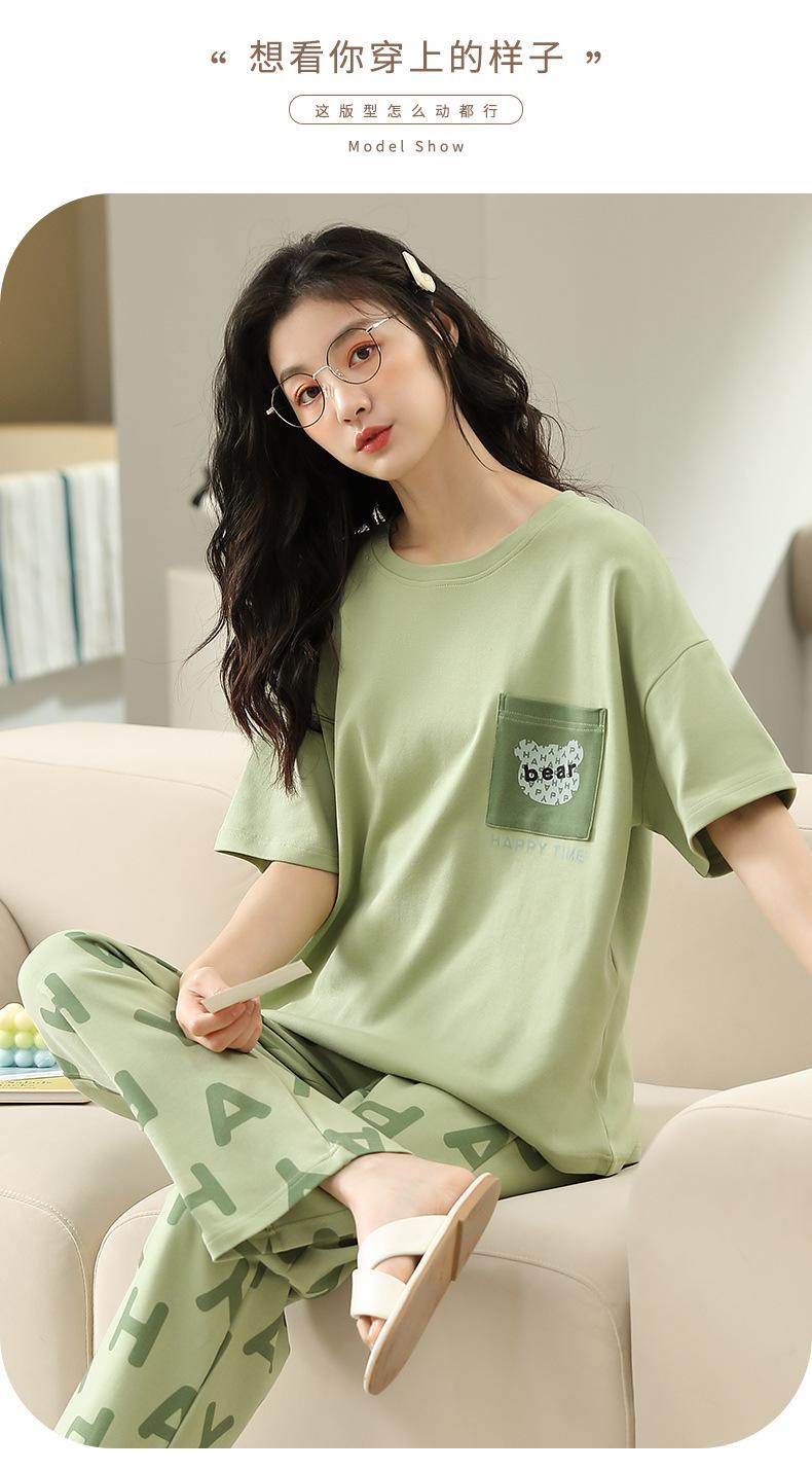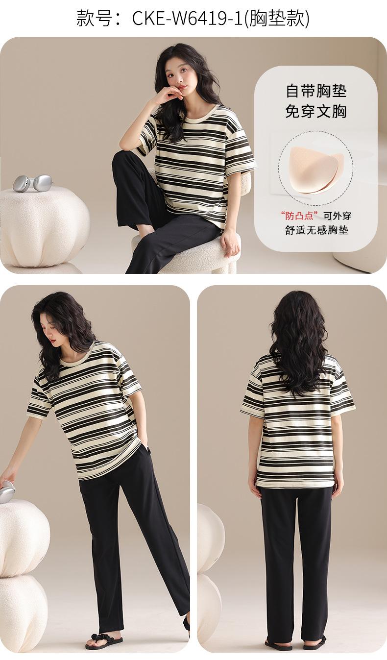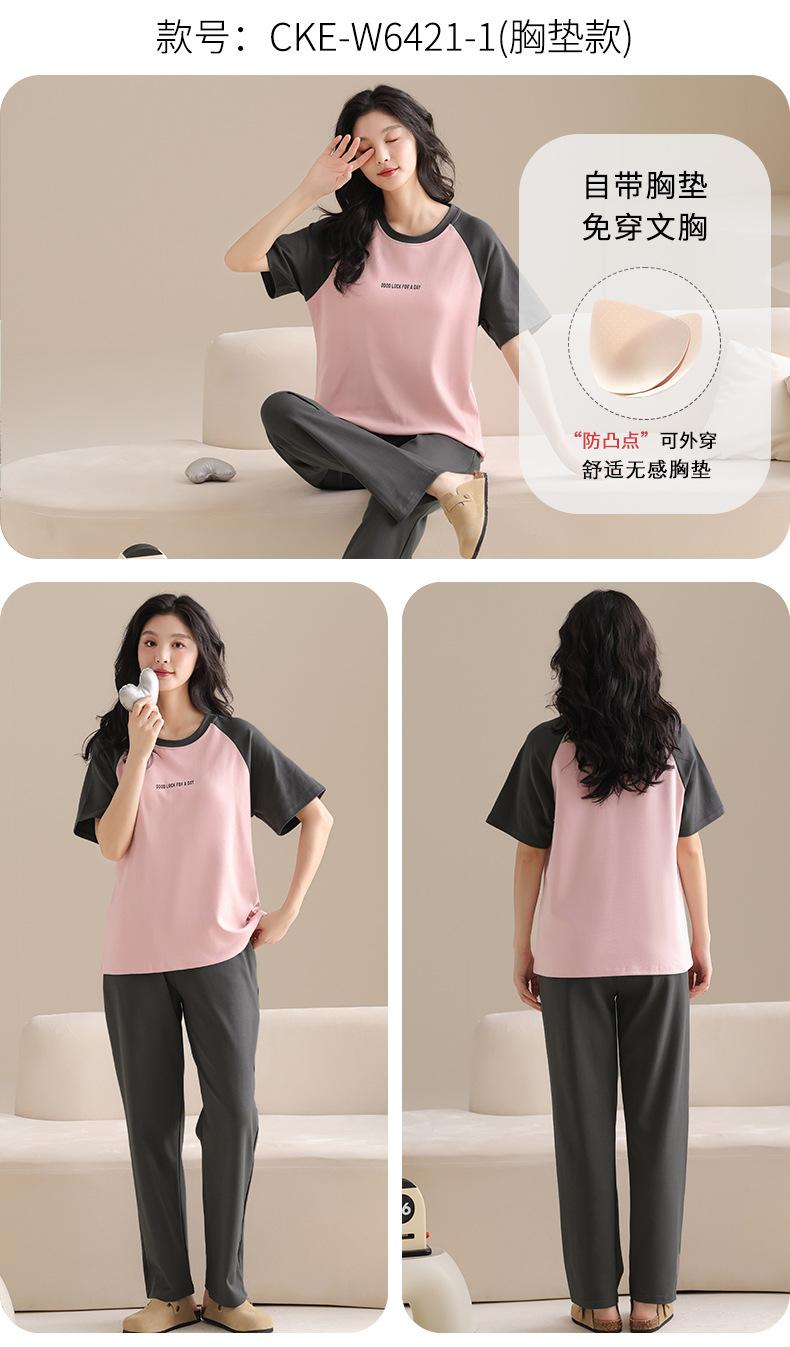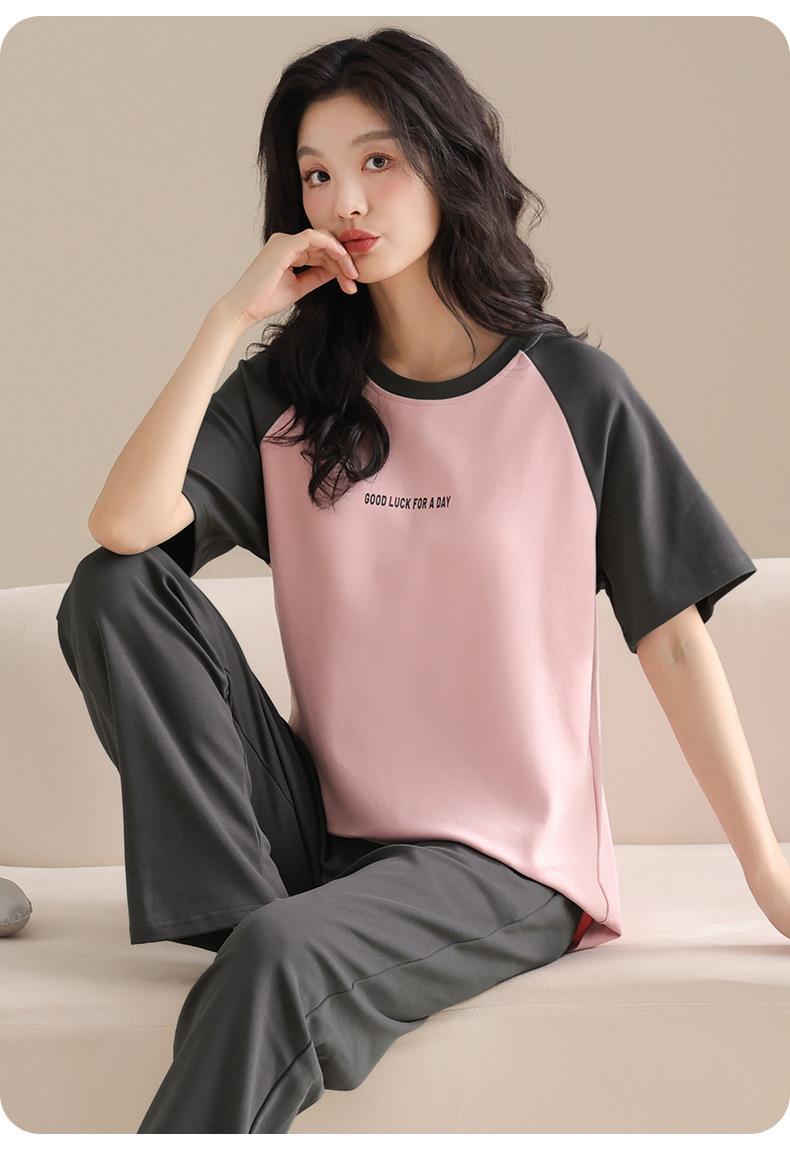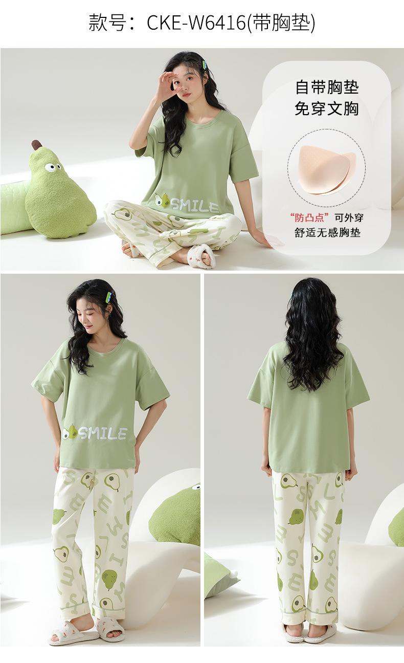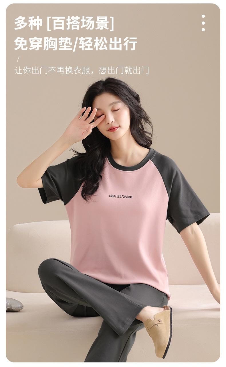 Pijama de algodão feminino verão manga curta calças com almofada no peito terno algodão pulôver gola redonda roupa casual roupas para casa