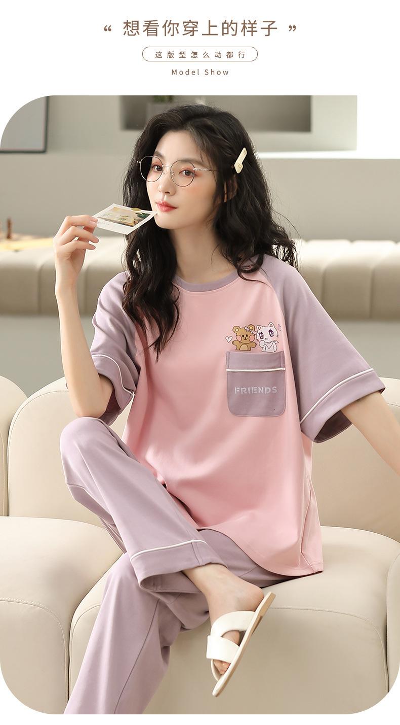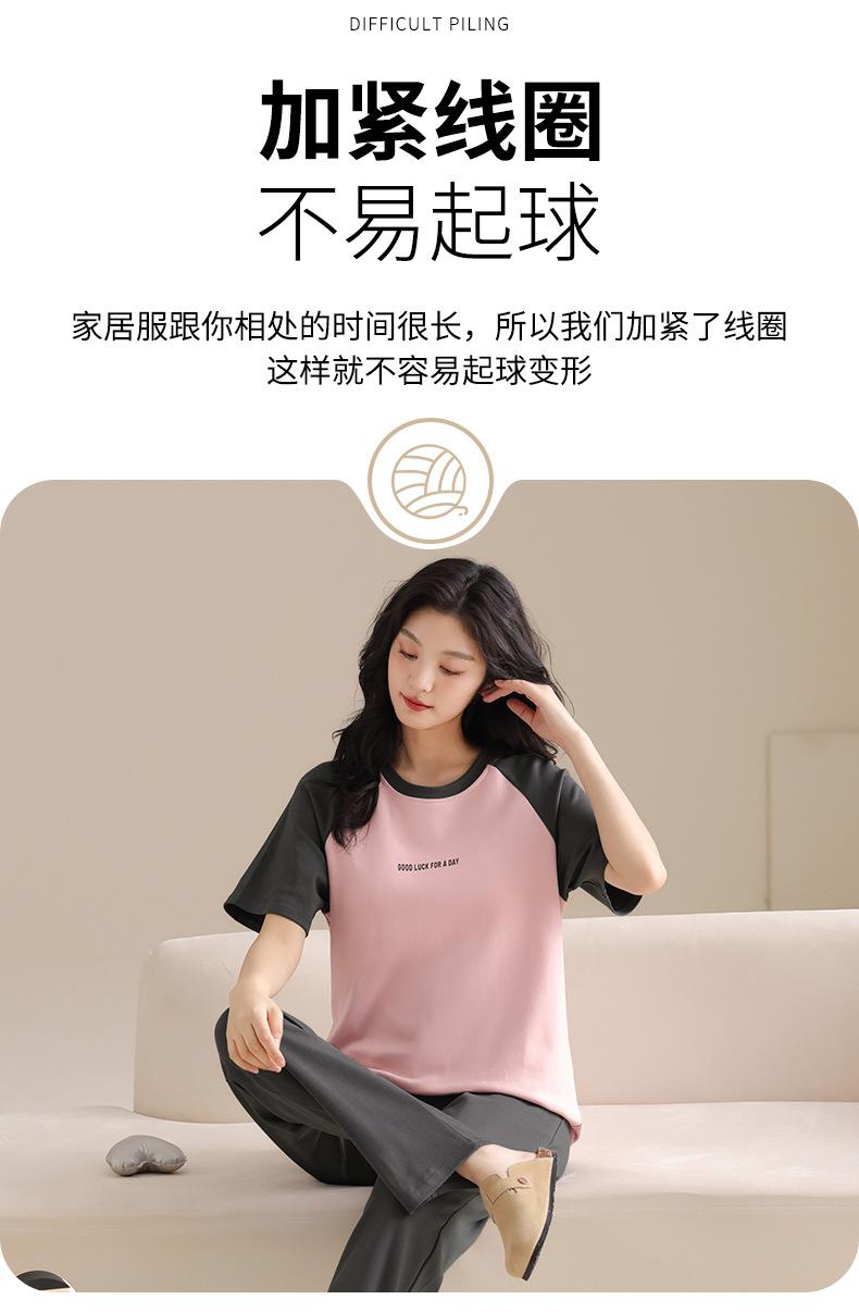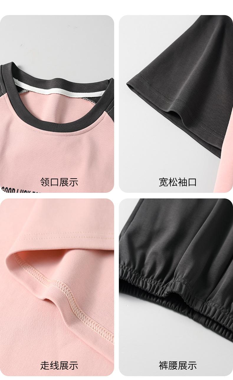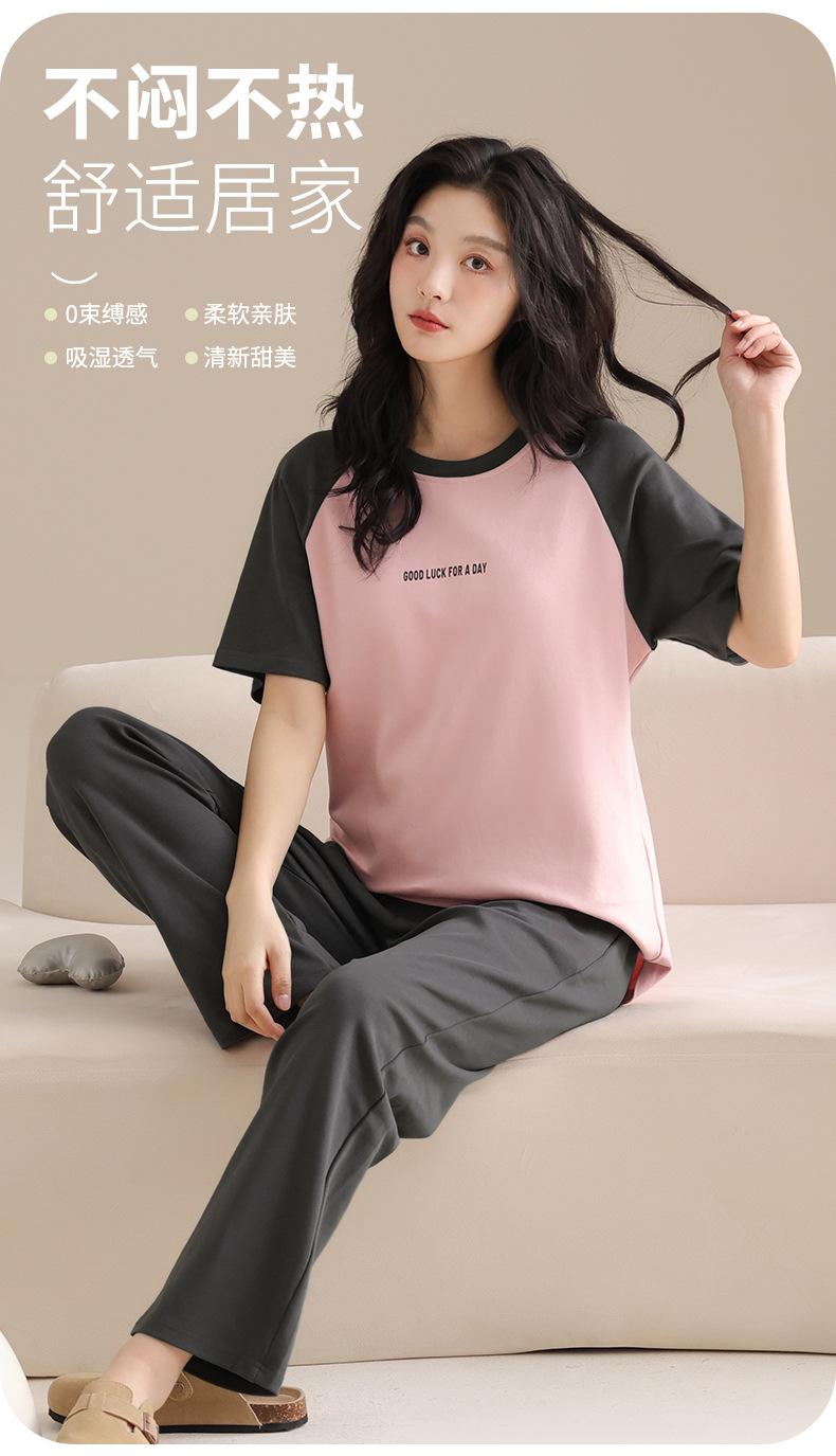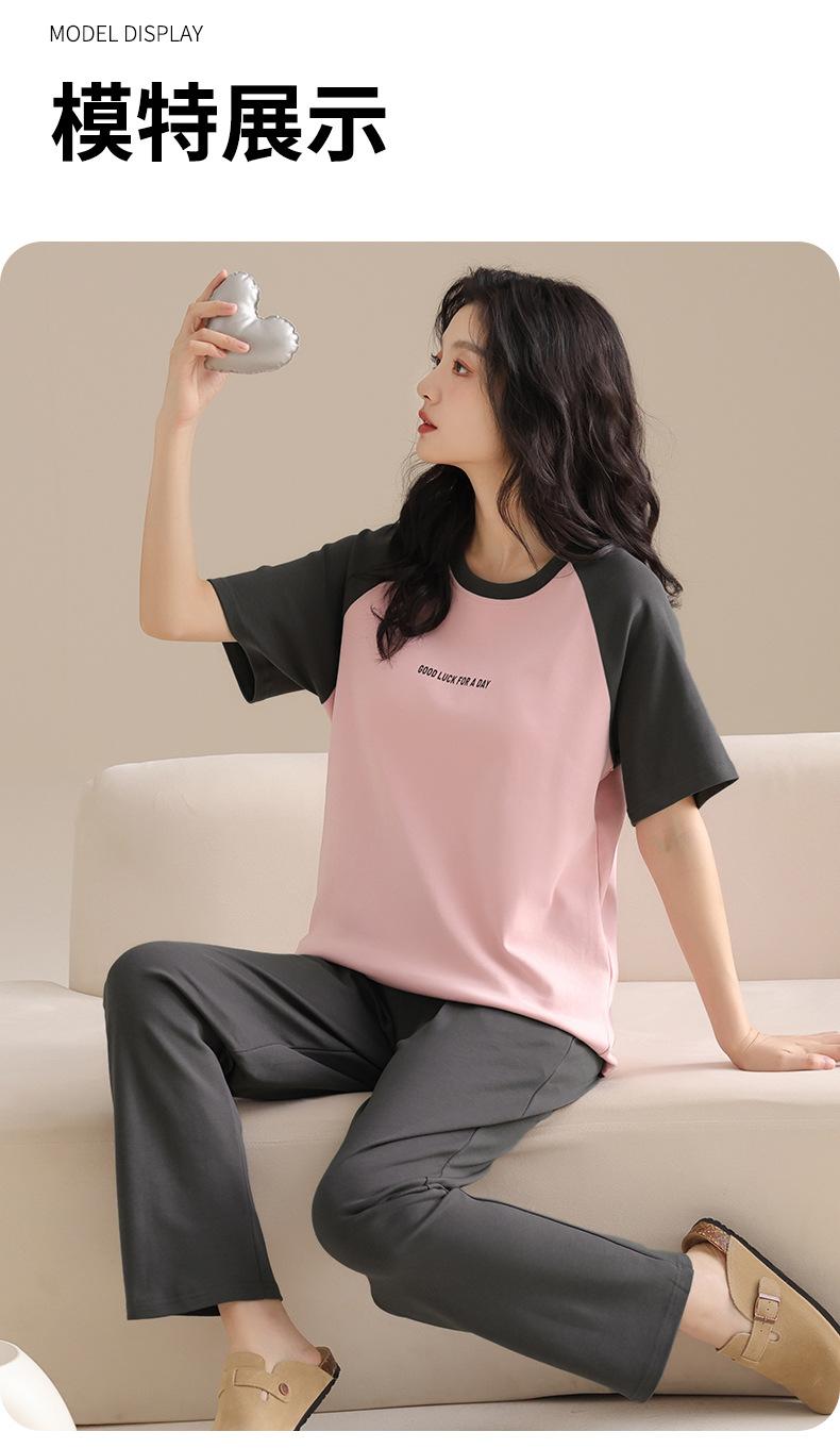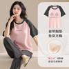 Pijama de algodão feminino verão manga curta calças com almofada no peito terno algodão pulôver gola redonda roupa casual roupas para casa