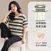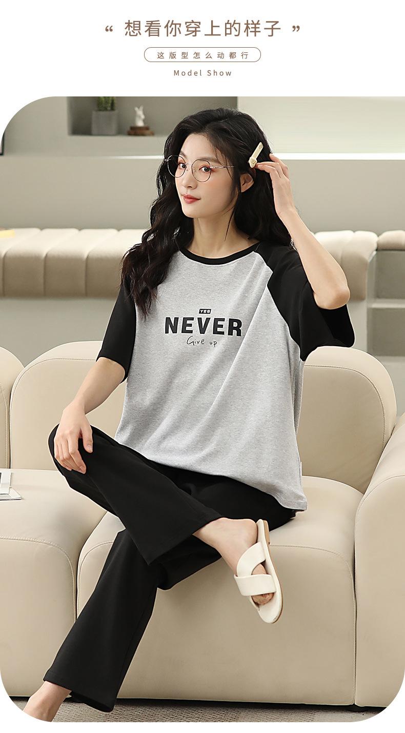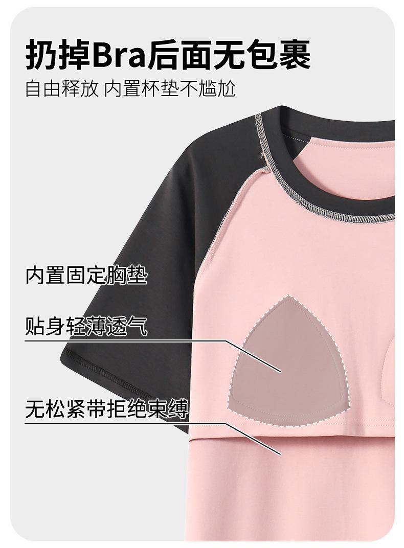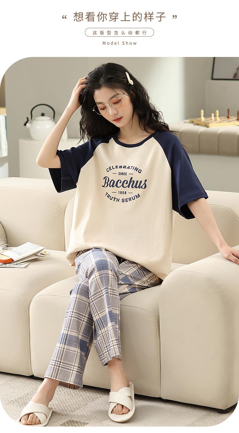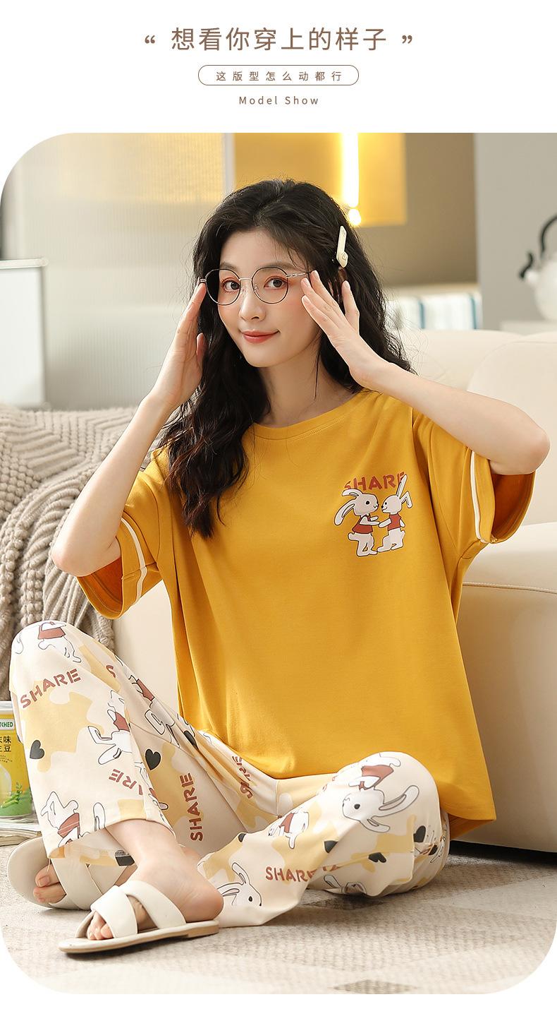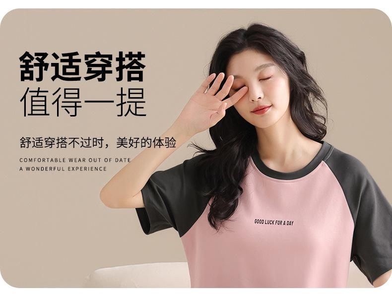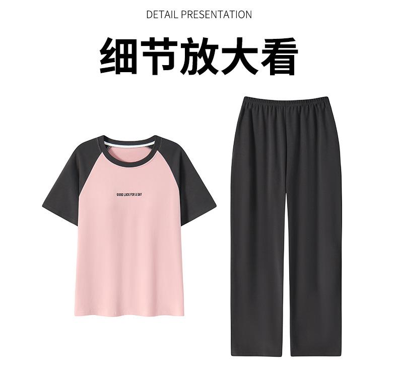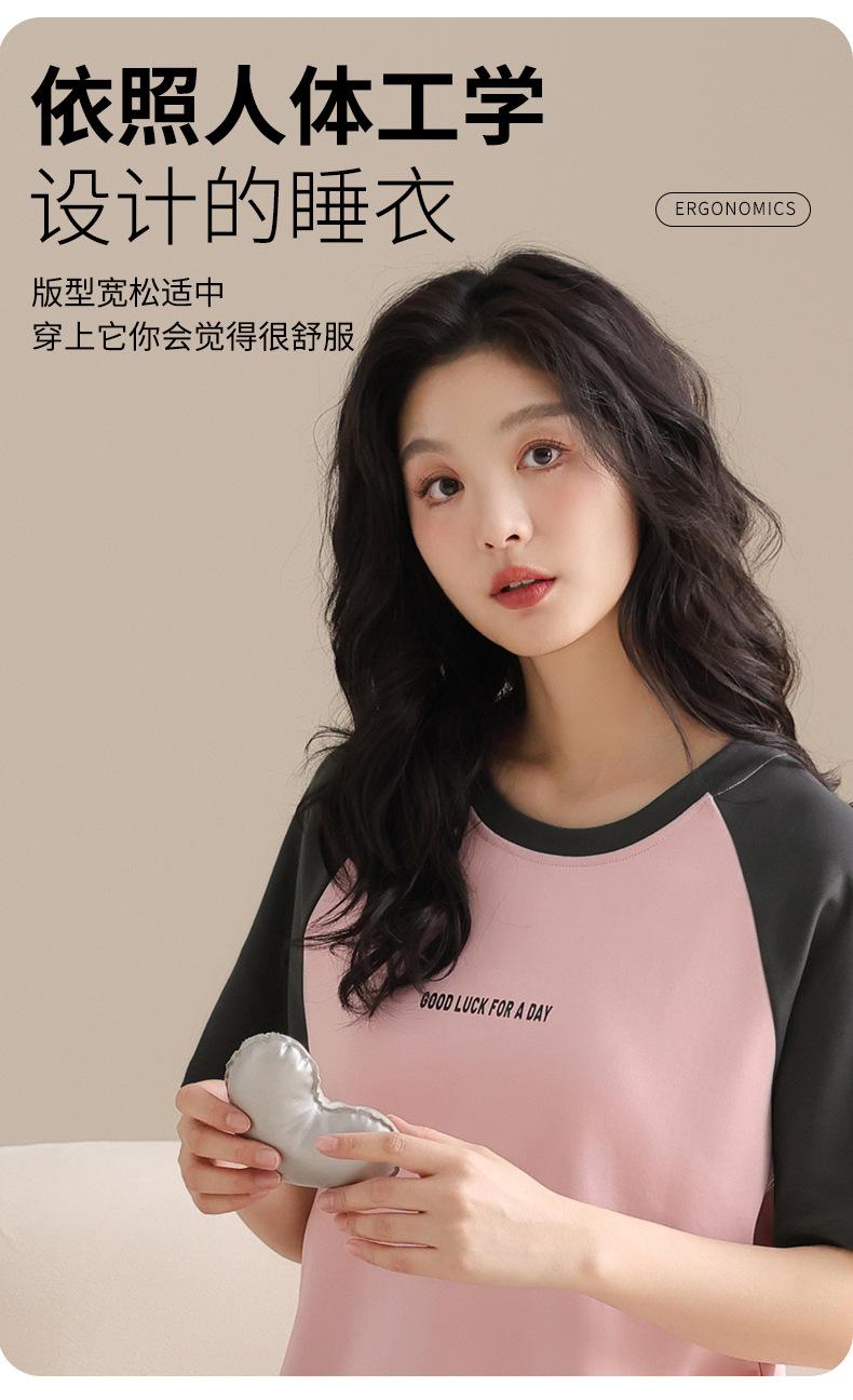 Pijama de algodão feminino verão manga curta calças com almofada no peito terno algodão pulôver gola redonda roupa casual roupas para casa
