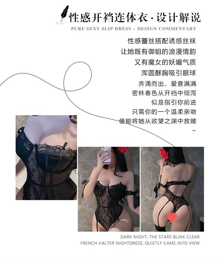 Compre Lingerie sexy macacão de renda sexy desejo puro de reunir roupa transparente paixão tentação uniforme oco terno grátis no atacado no Joom.pro