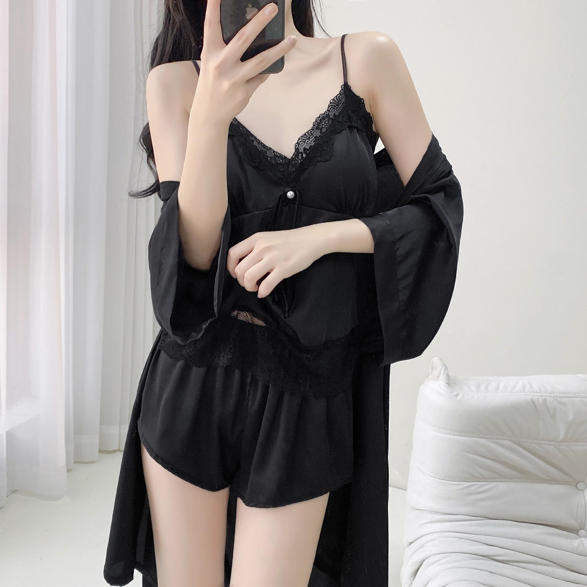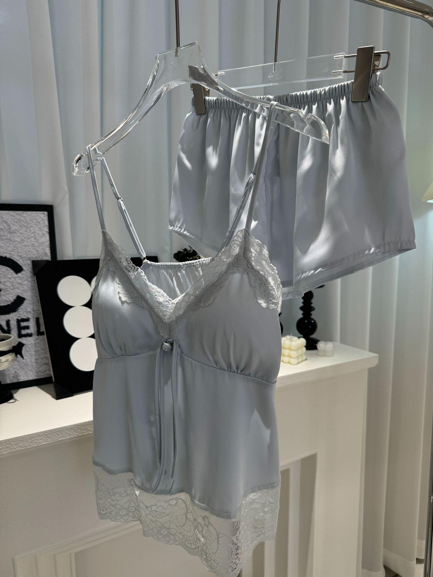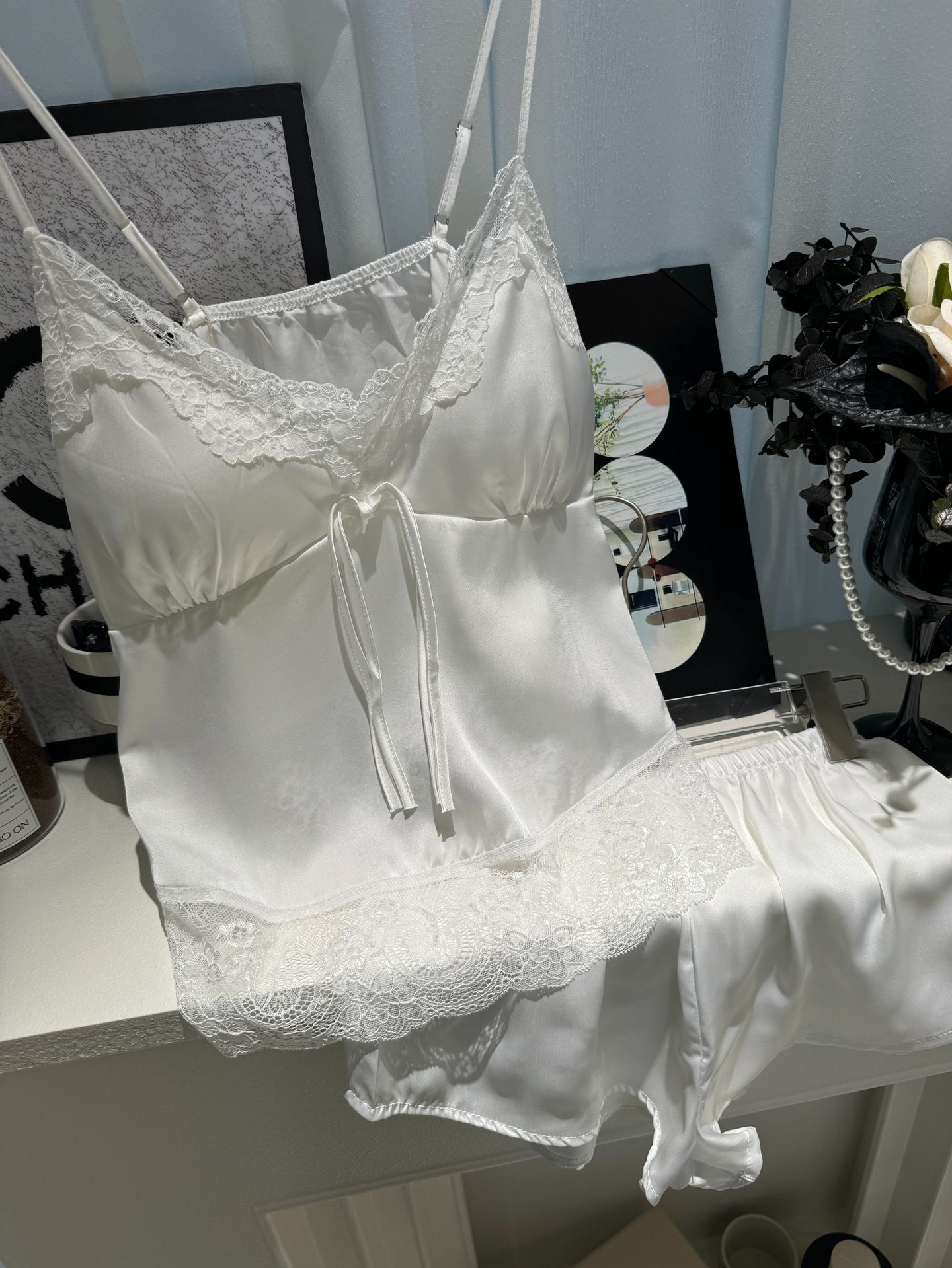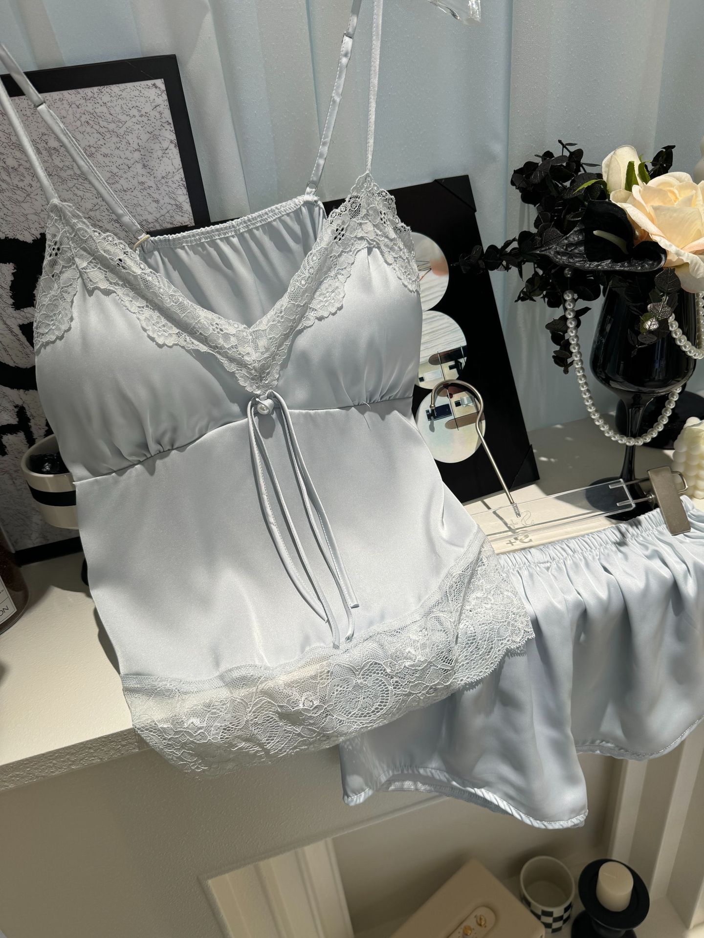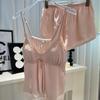 Pijama de alça sexy feminino destacável de duas peças verão gelo e neve seda colete shorts roupas de casa com almofada no peito
