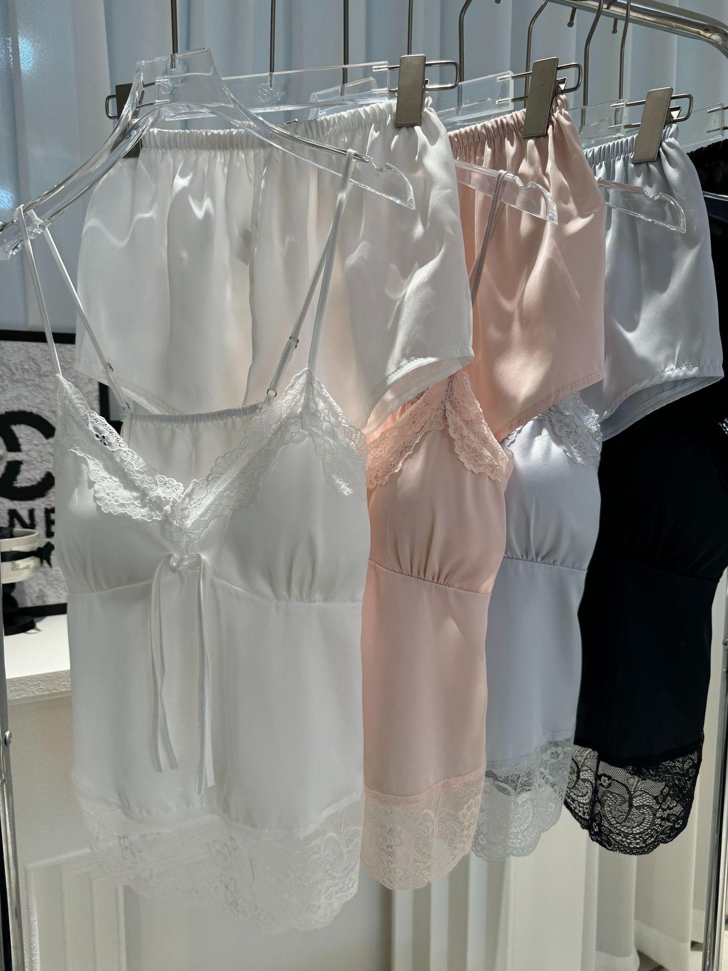 Compre Pijama de alça sexy feminino destacável de duas peças verão gelo e neve seda colete shorts roupas de casa com almofada no peito no atacado no Joom.pro