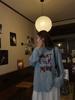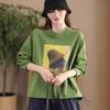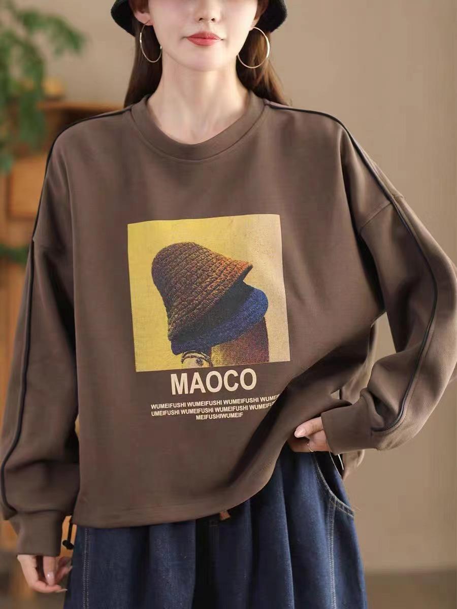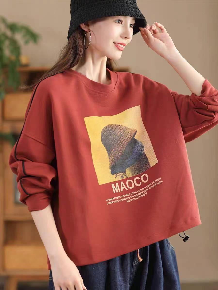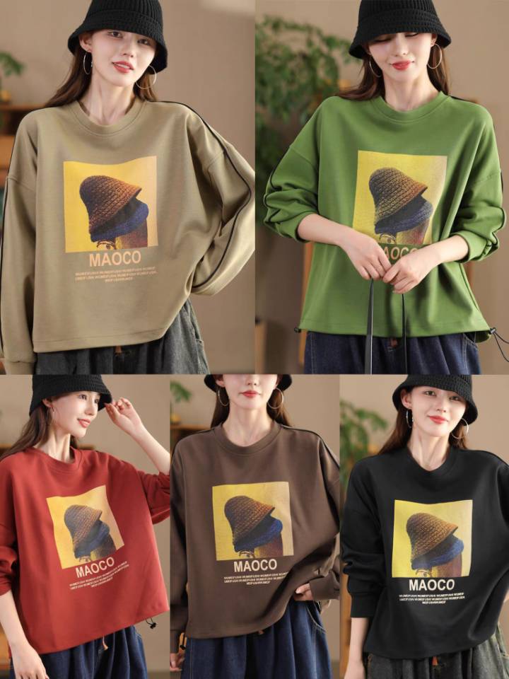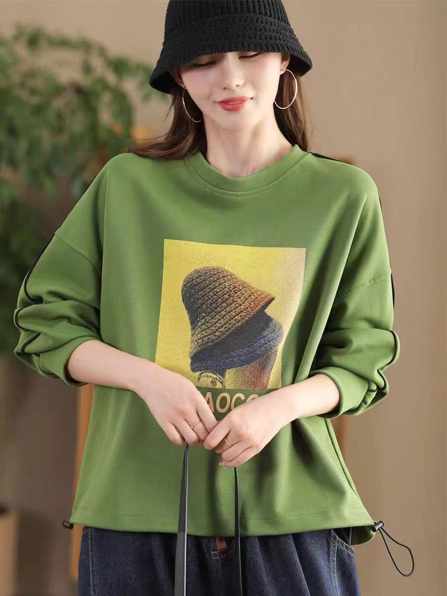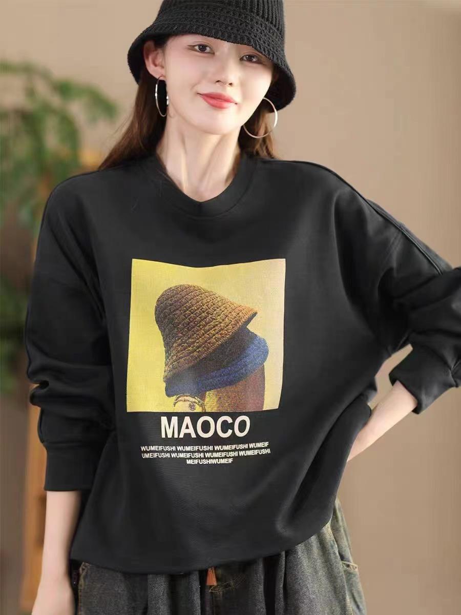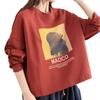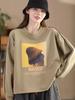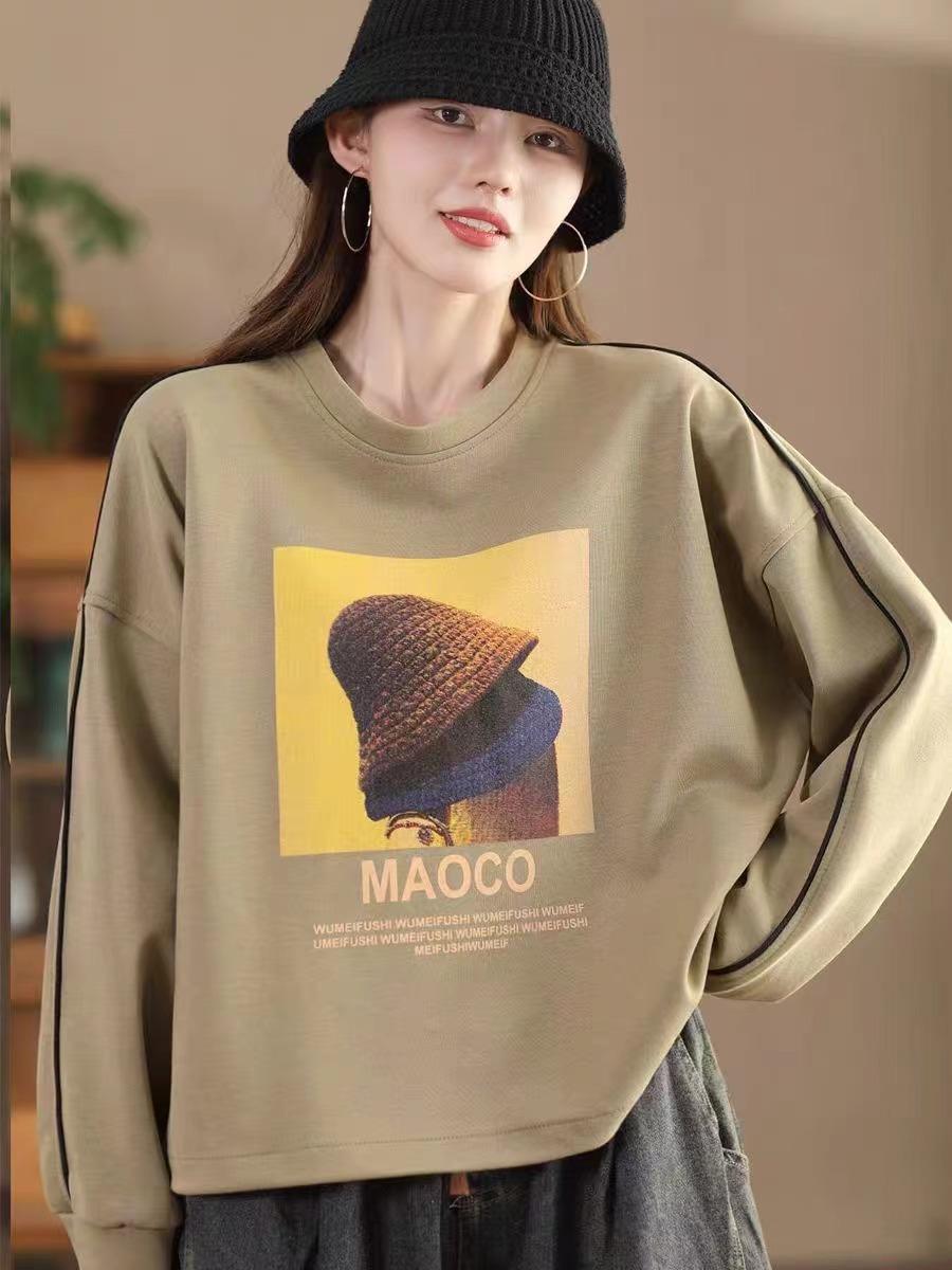 Moletom Estampado de Gola Redonda para Mulheres Primavera e Outono Novo Jaqueta Tamanho Grande Solta e Versátil Pulôver Casual Top de Manga Comprida