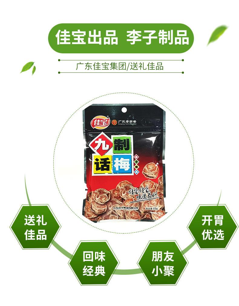 Jiabao nove-sistema ameixa 65g supermercado atacado Guangdong tempo-honrado Chaoshan especialidade ameixa carne doce e azedo frutas cristalizadas