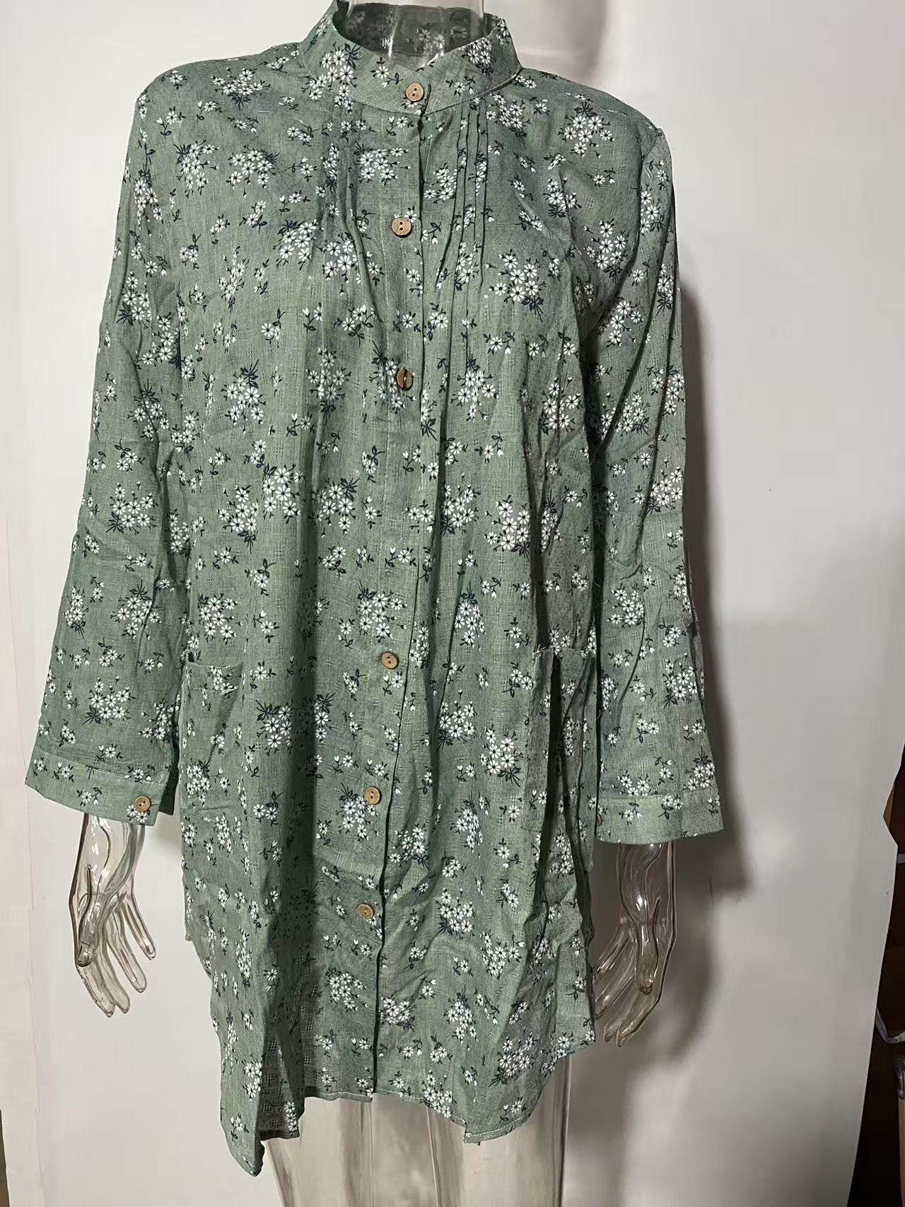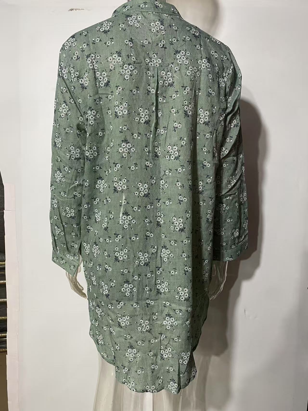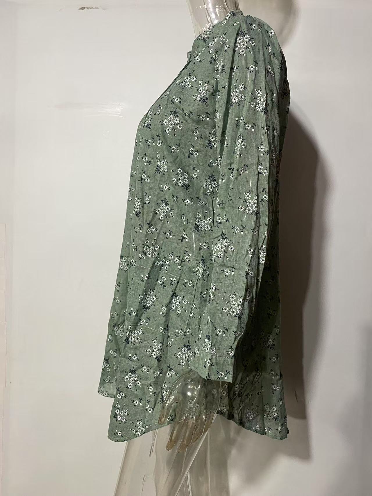 1557# eBay AliExpress outono novo tamanho grande manga comprida camisa floral colarinho solto camisa casual das mulheres
