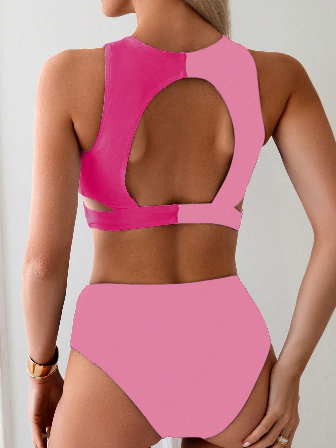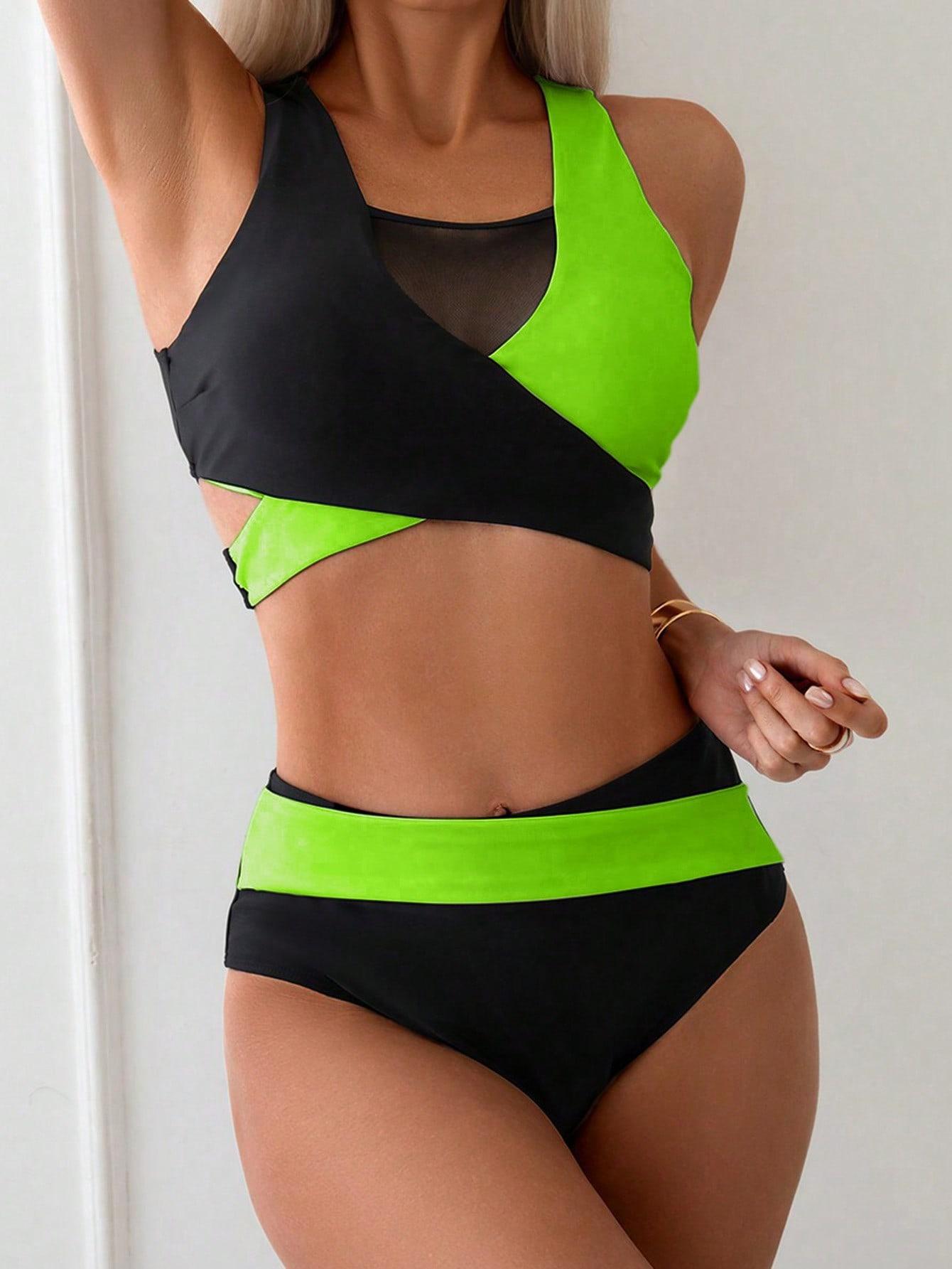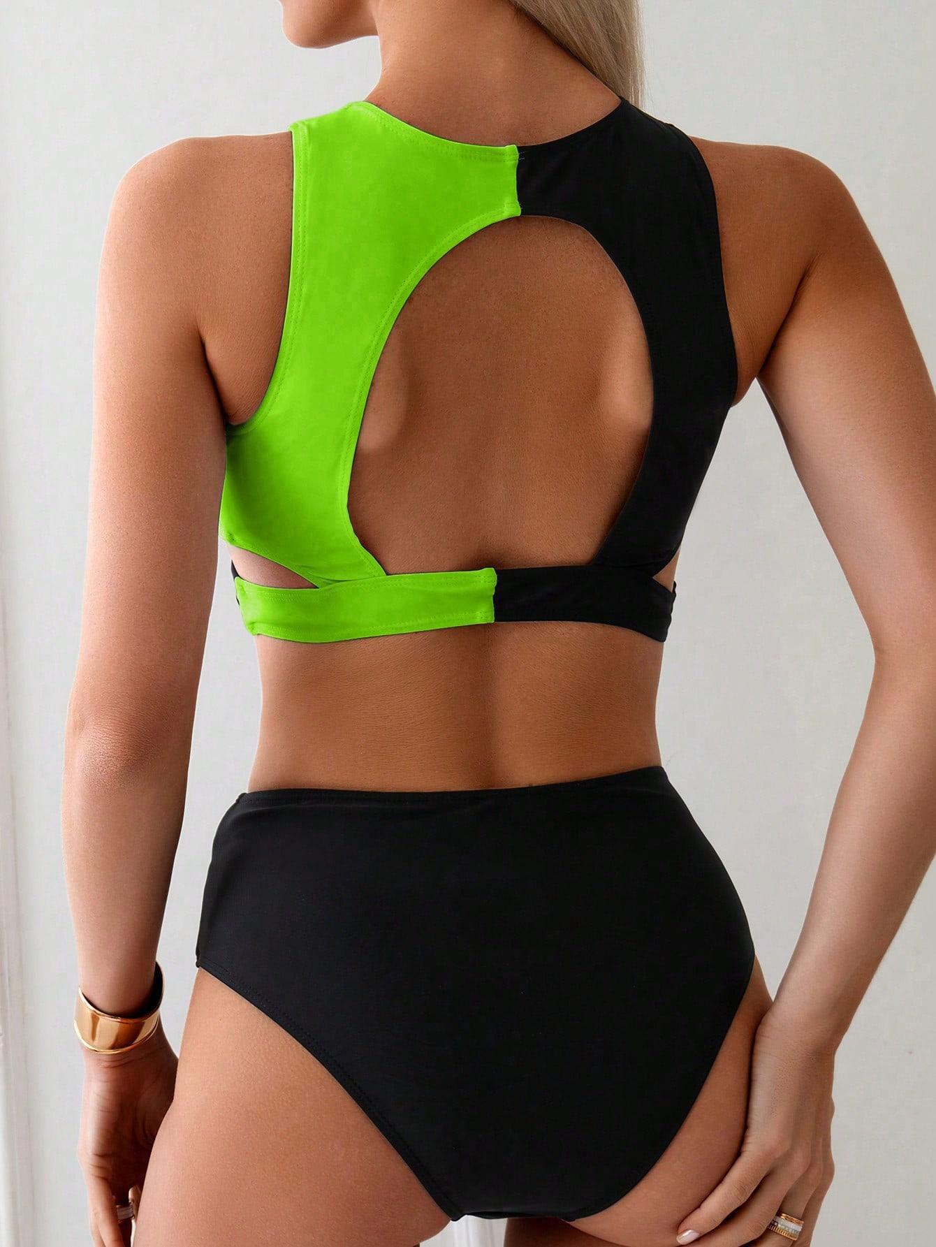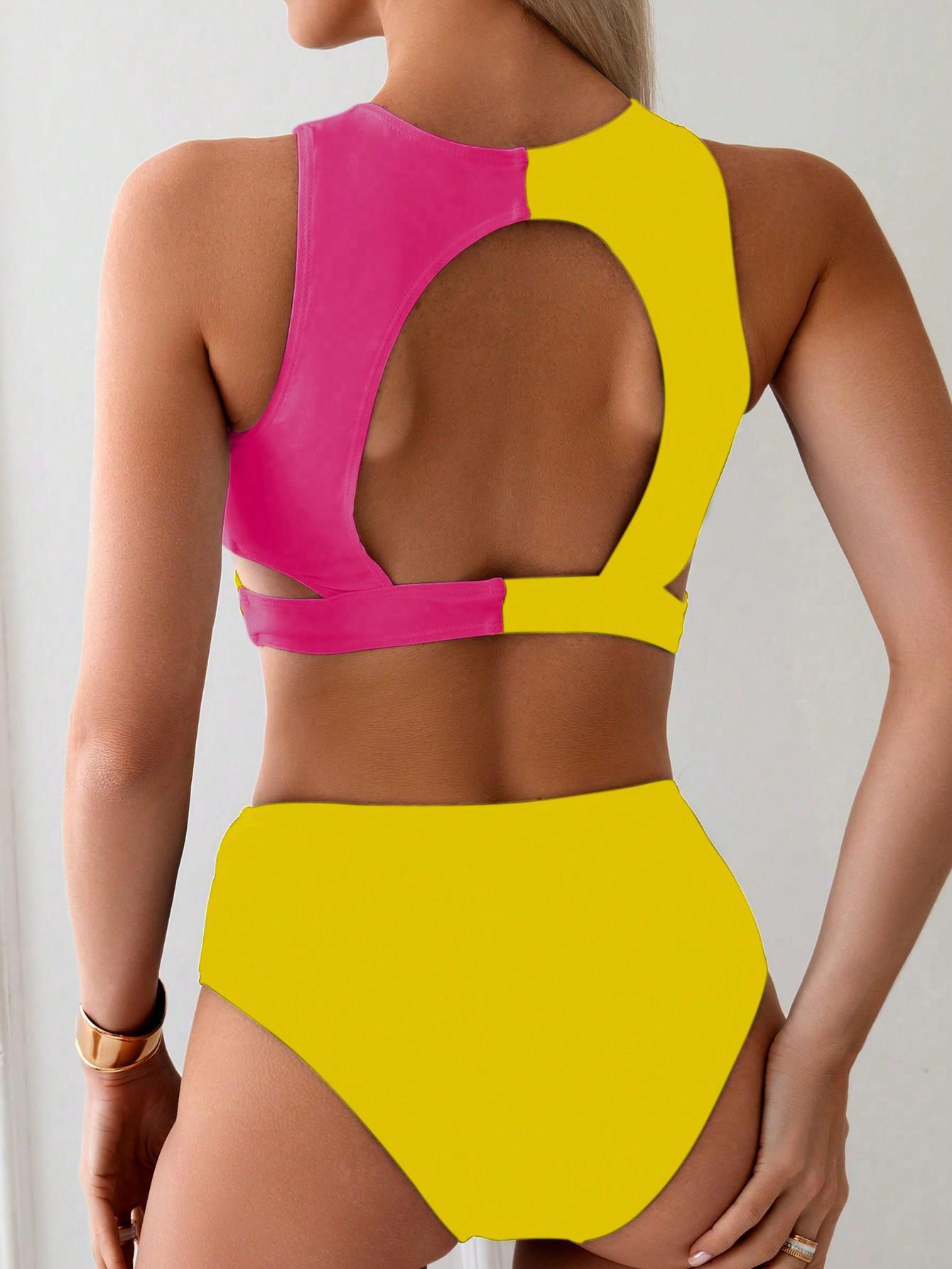 Trajes de Banho Europeus e Americanos Transfronteiriços Trajes de Banho Comércio Exterior Cor Sólida Amazon Dividido Biquíni Sexy Termas Roupa de Banho Feminina
