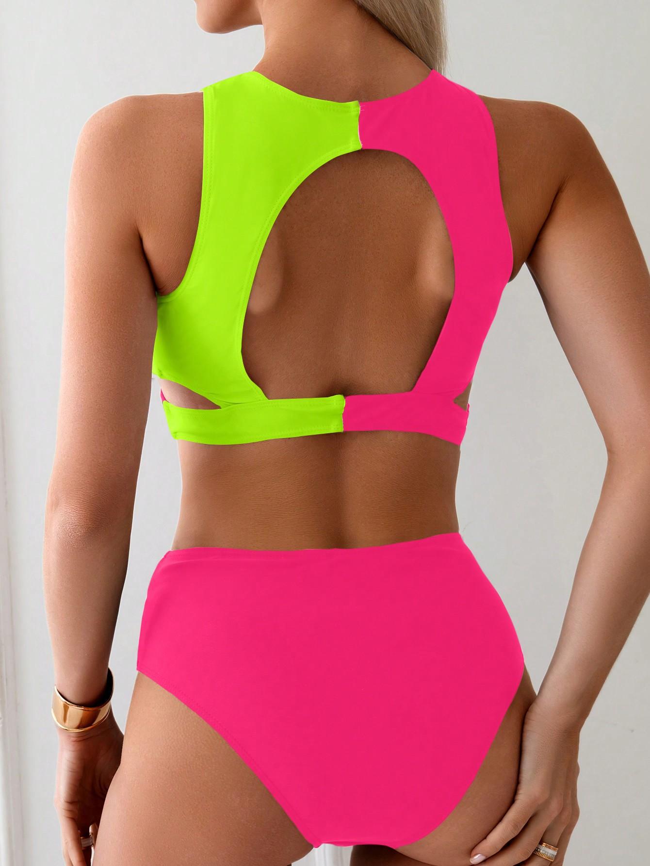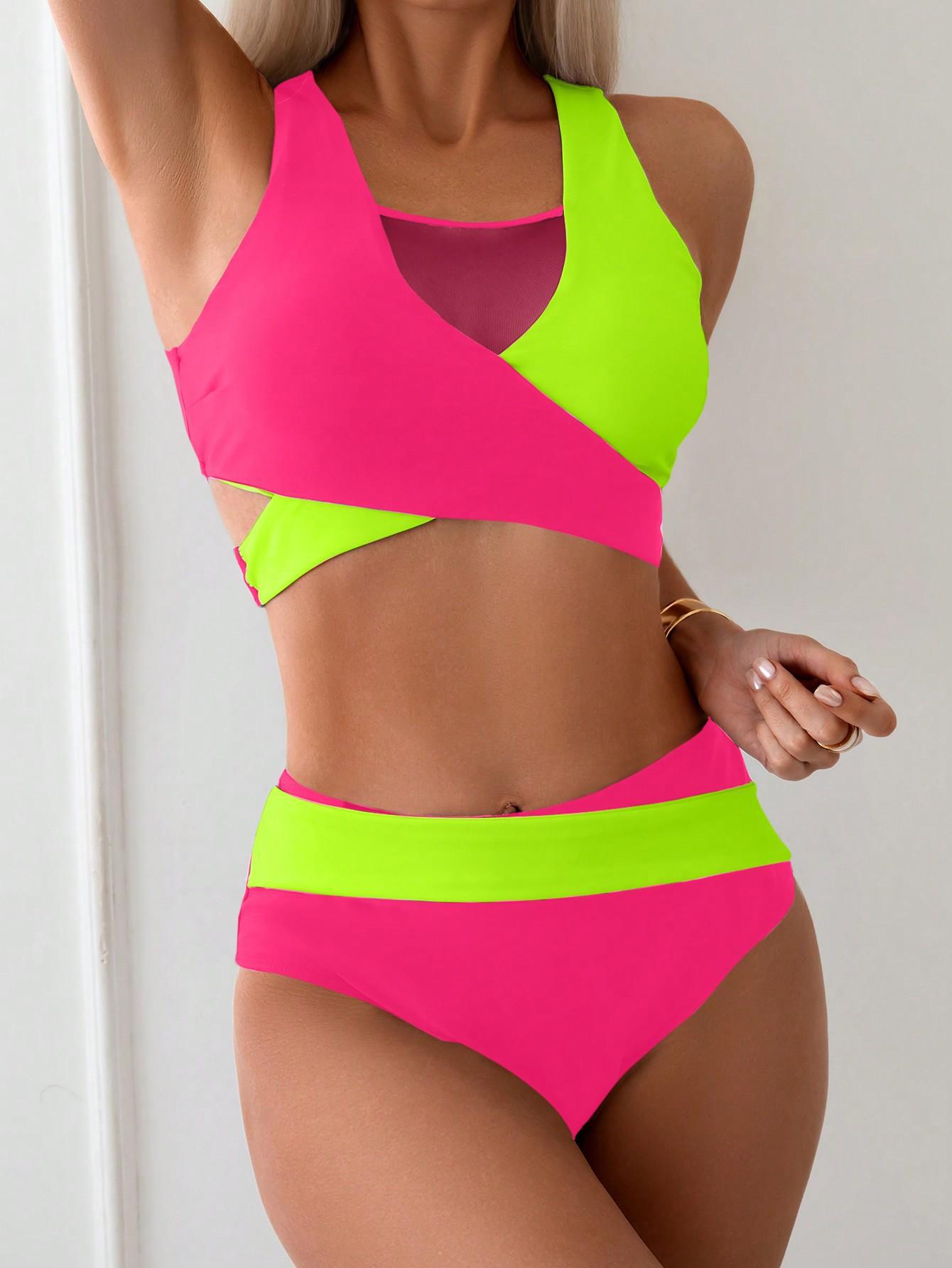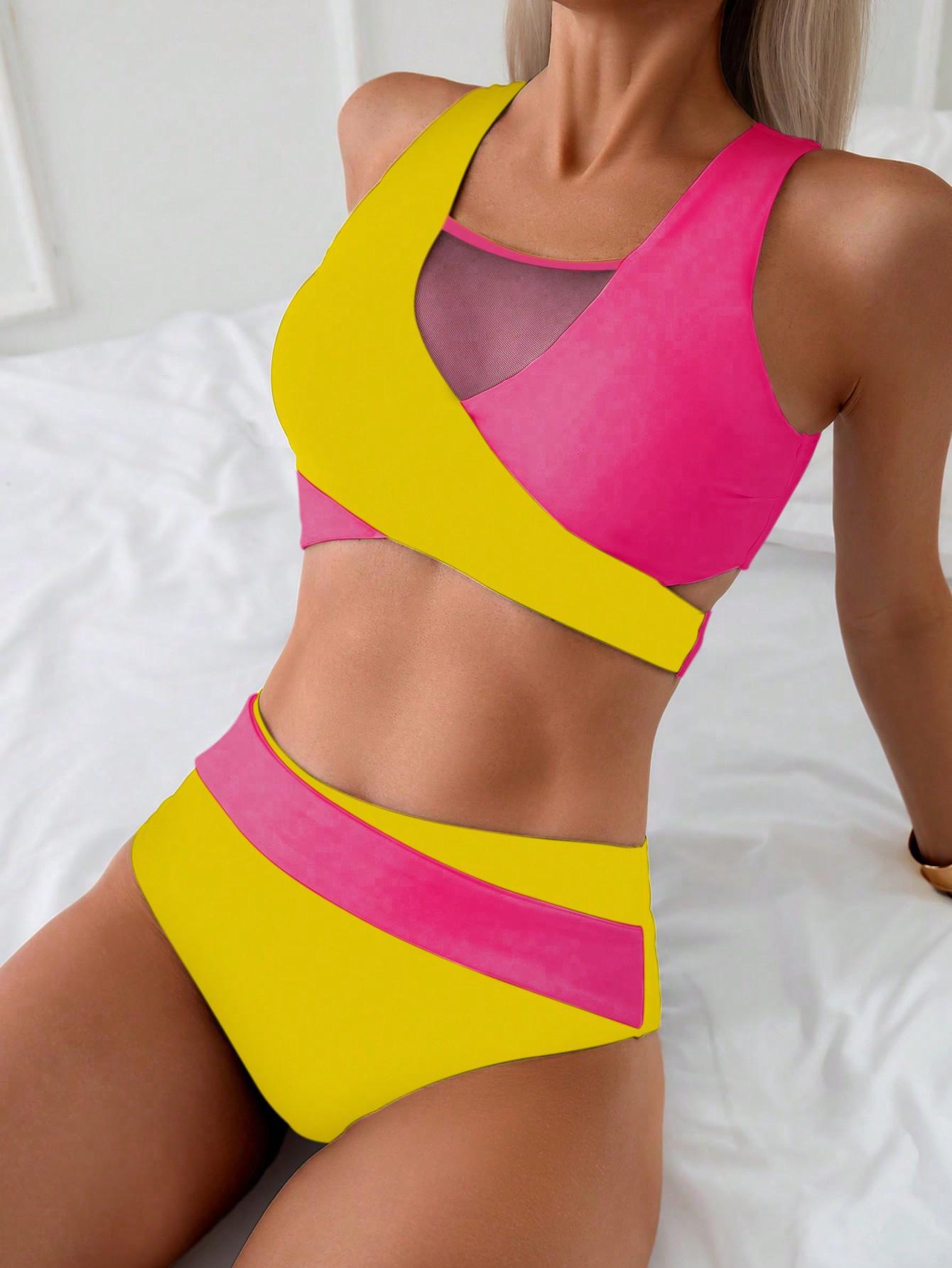 Trajes de Banho Europeus e Americanos Transfronteiriços Trajes de Banho Comércio Exterior Cor Sólida Amazon Dividido Biquíni Sexy Termas Roupa de Banho Feminina
