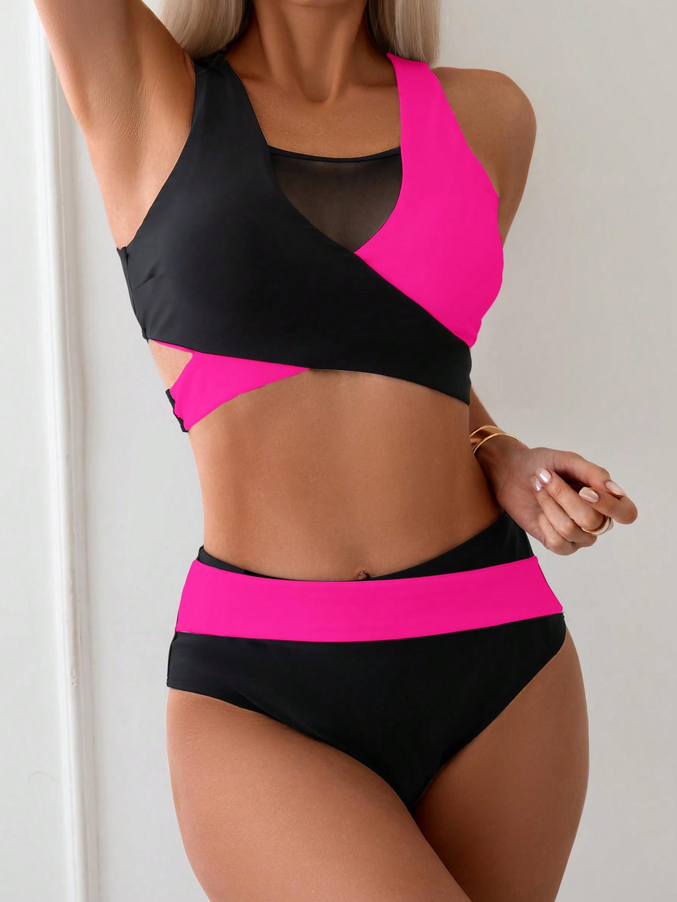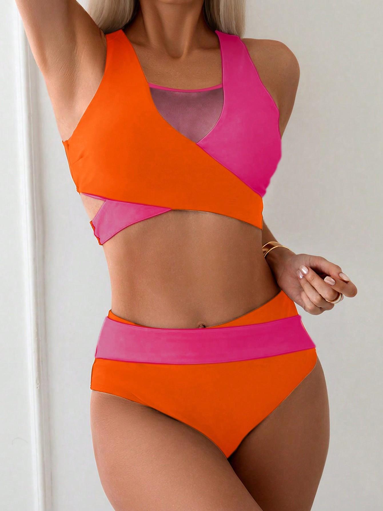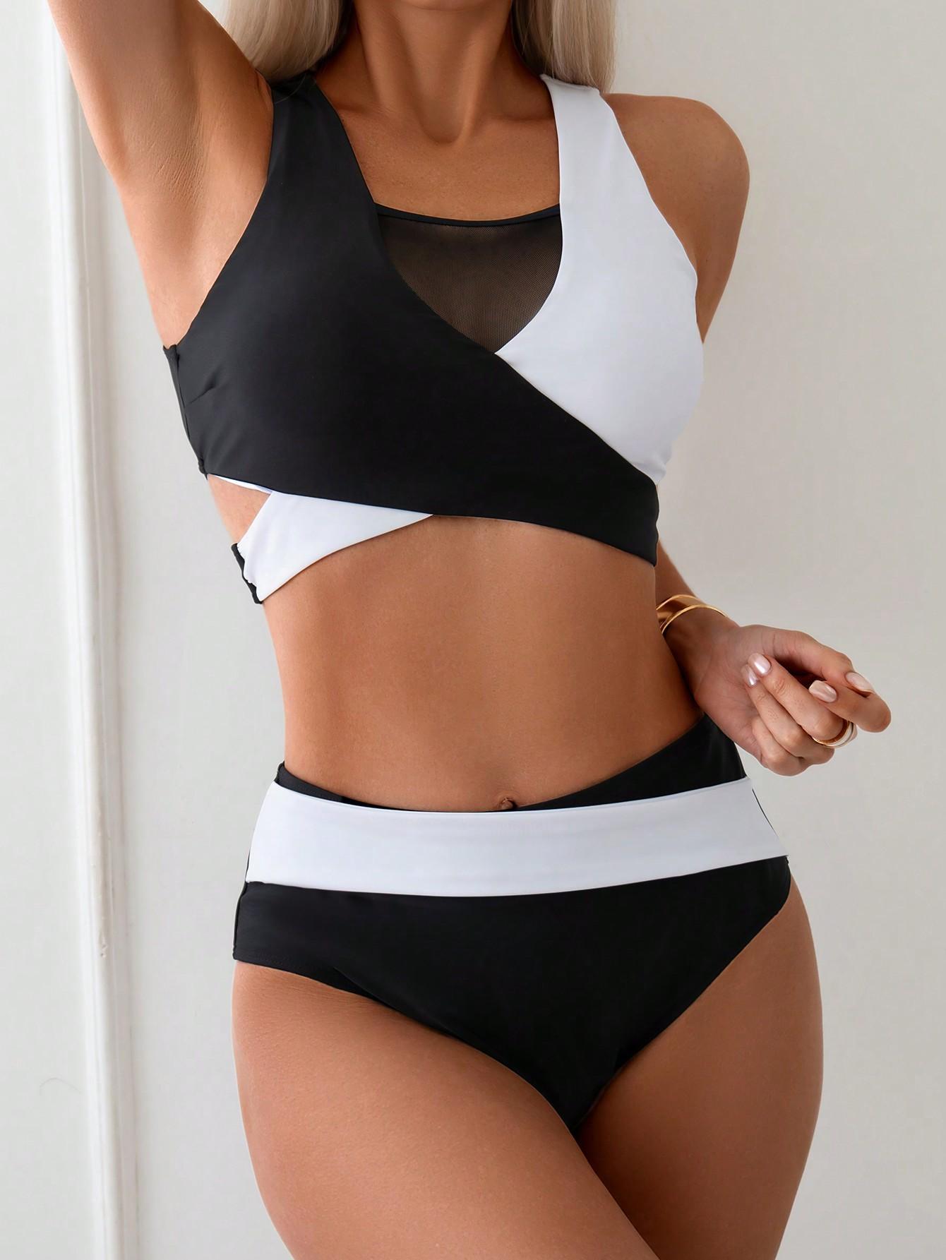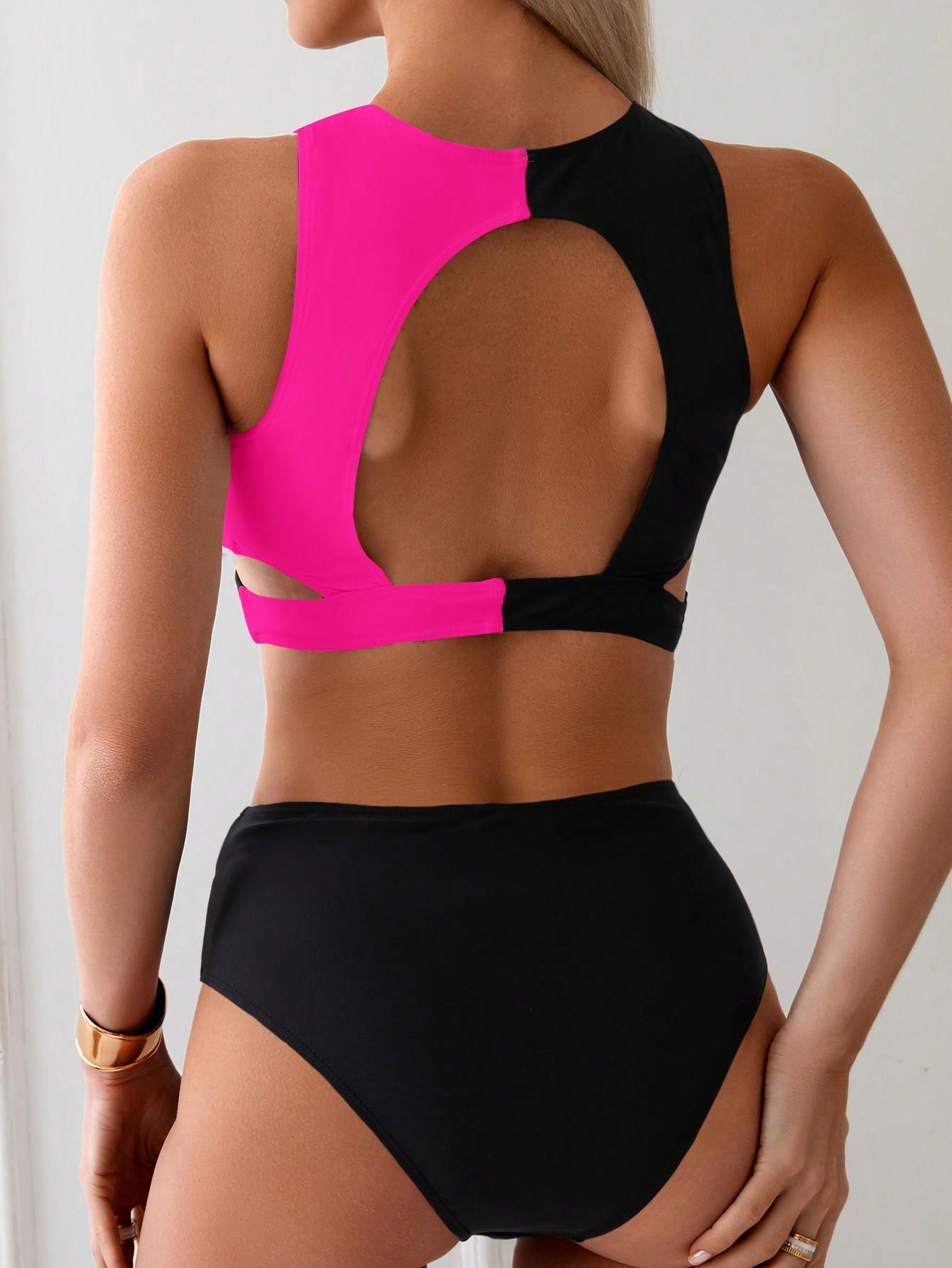 Trajes de Banho Europeus e Americanos Transfronteiriços Trajes de Banho Comércio Exterior Cor Sólida Amazon Dividido Biquíni Sexy Termas Roupa de Banho Feminina