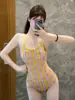 2025 Novo estilo ins Wave Dot Girl's Simples Hot Spring Maiô Retro vintage Backless Strap Maiô de uma peça