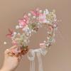 Delicada infantil coroa de cabelo faixa de cabelo pérola coroa menina princesa estilo coreano headwear desempenho flor menina faixa de cabeça mori
