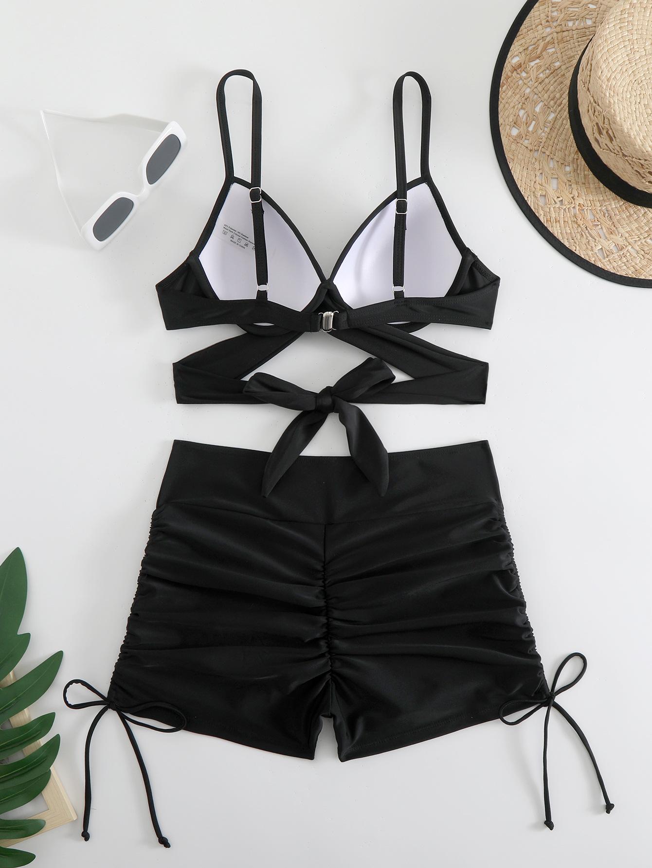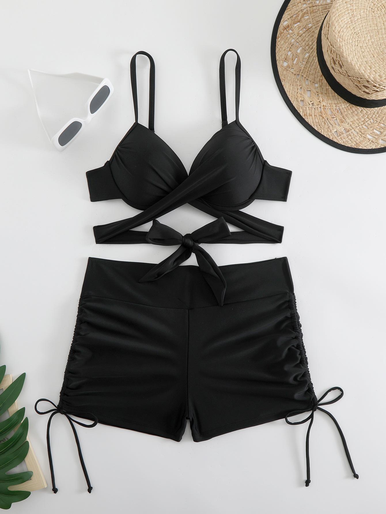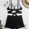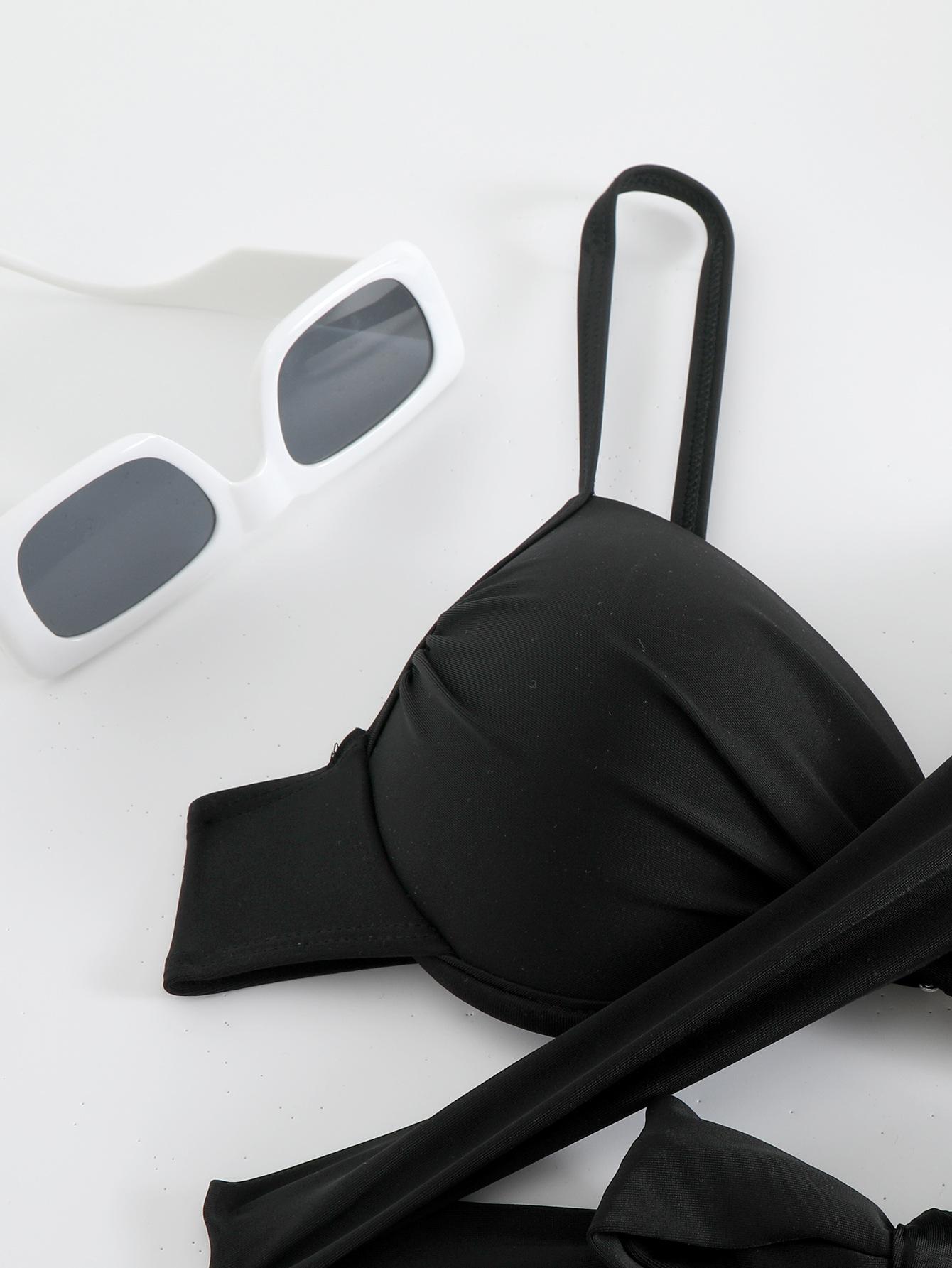 Novo maiô de alta qualidade com alças de cor sólida e fenda oca, quatro cantos, praia, férias, biquíni de primavera quente feminino