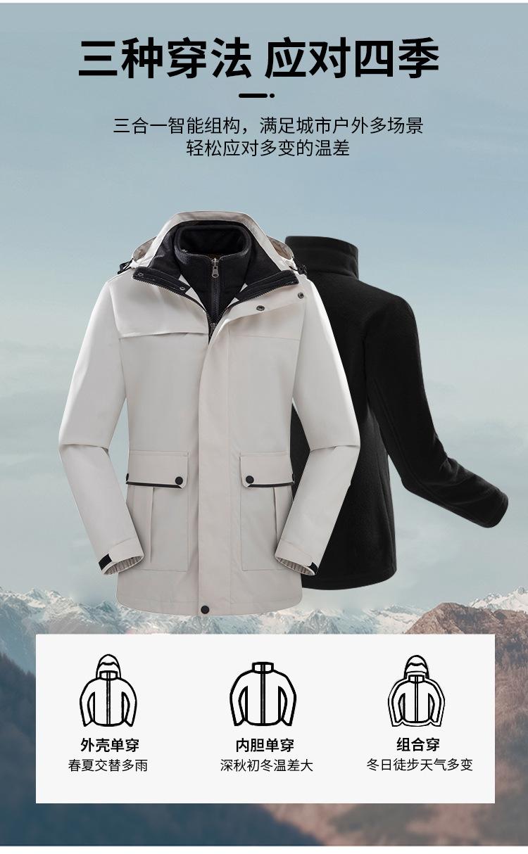 Roupas de trabalho à prova de vento e água para homens e mulheres, três em um, forro removível, traje de montanhismo ao ar livre
