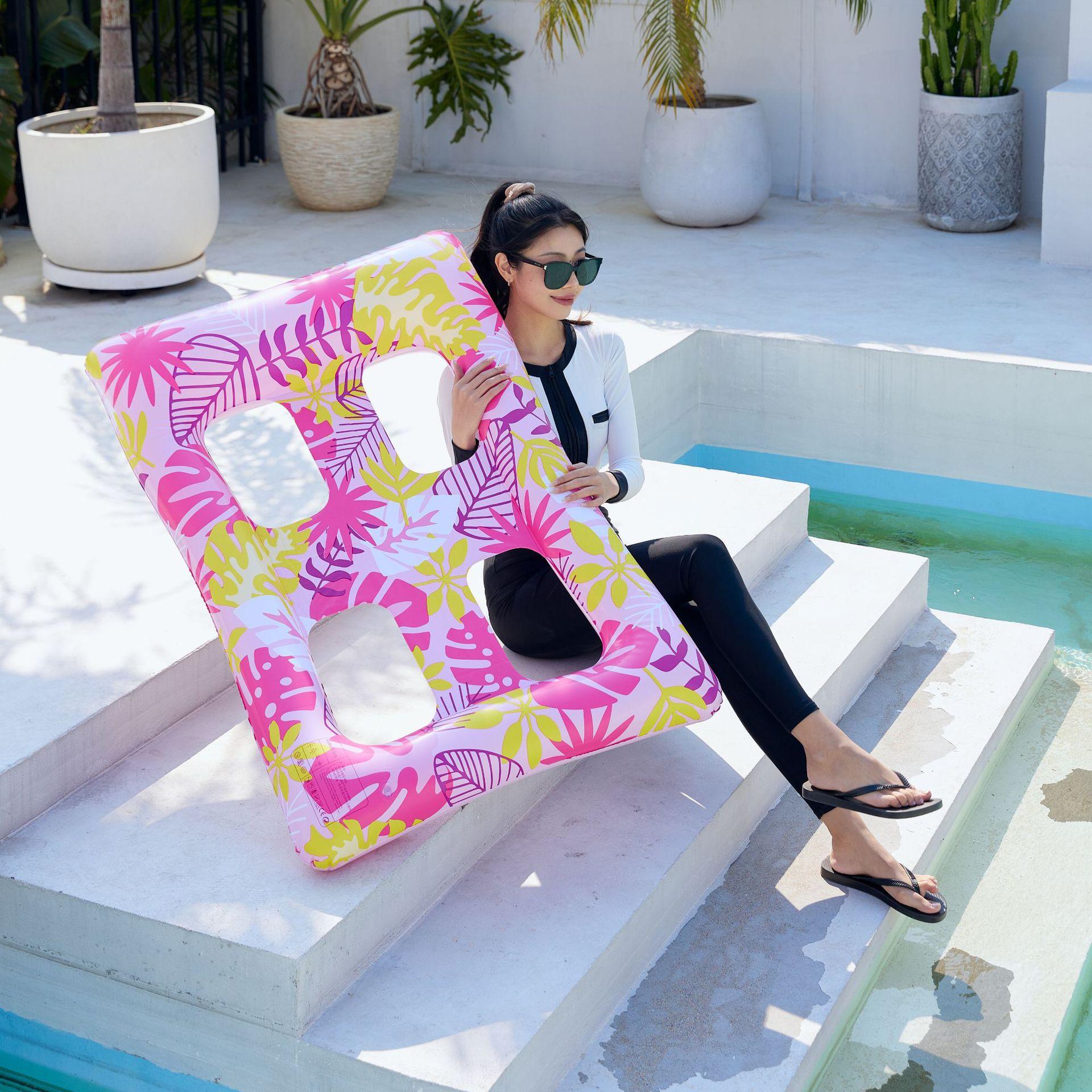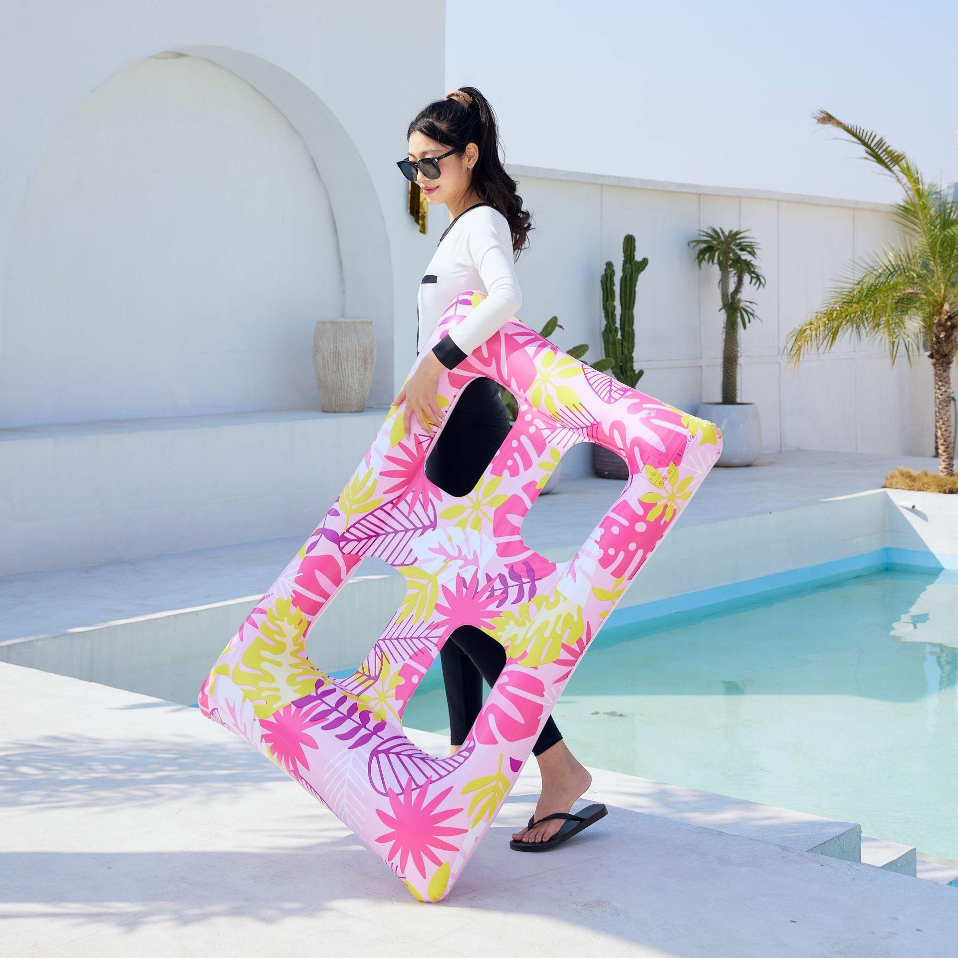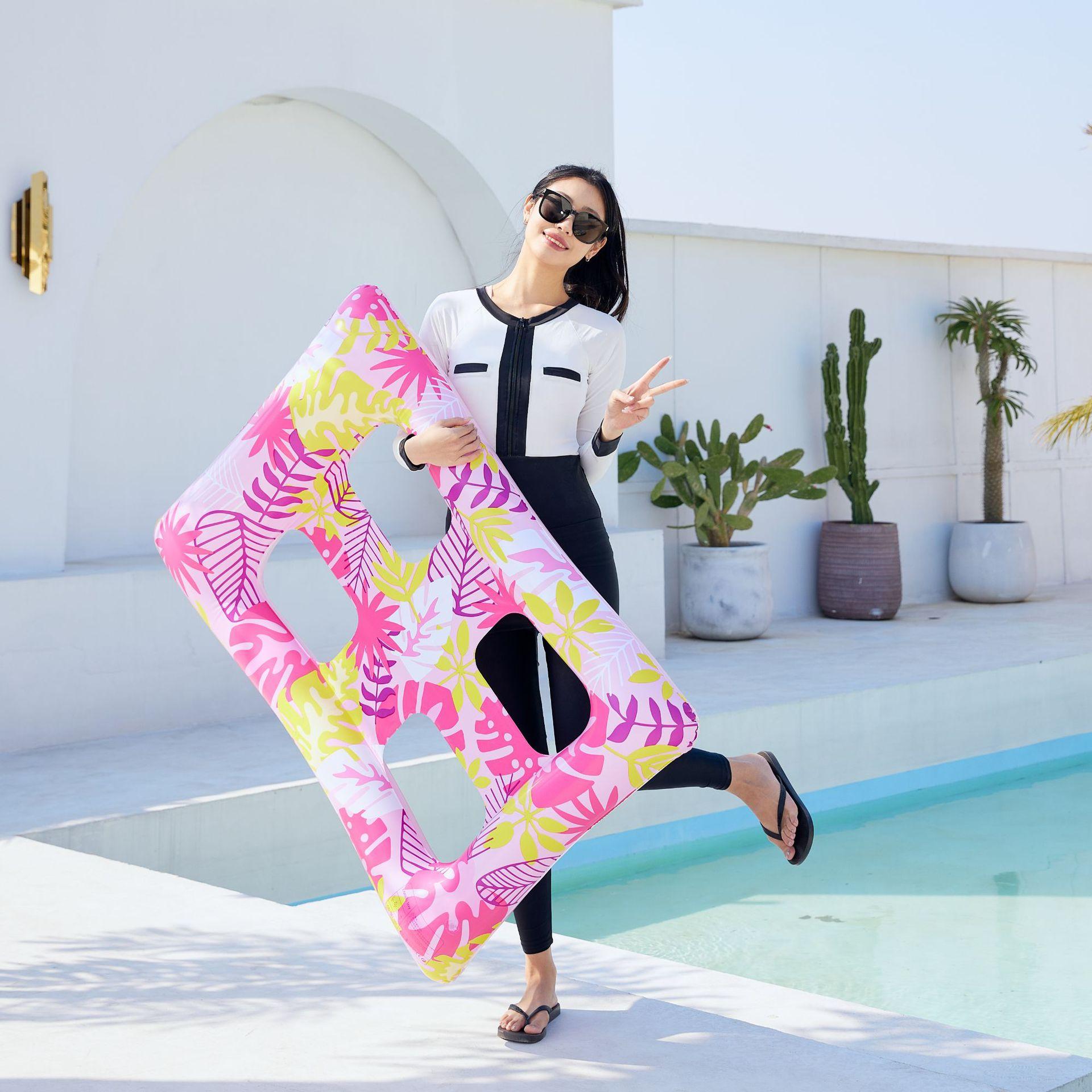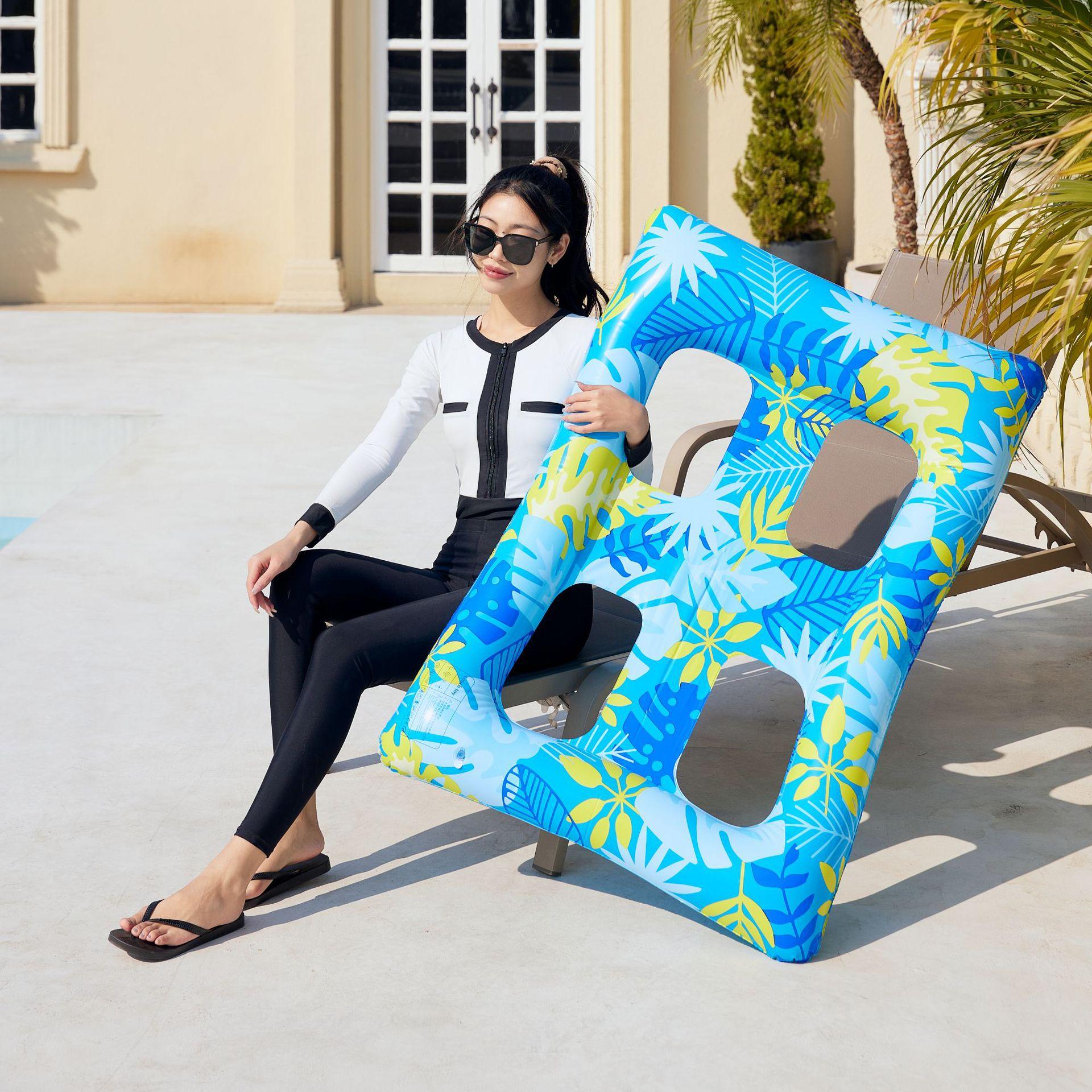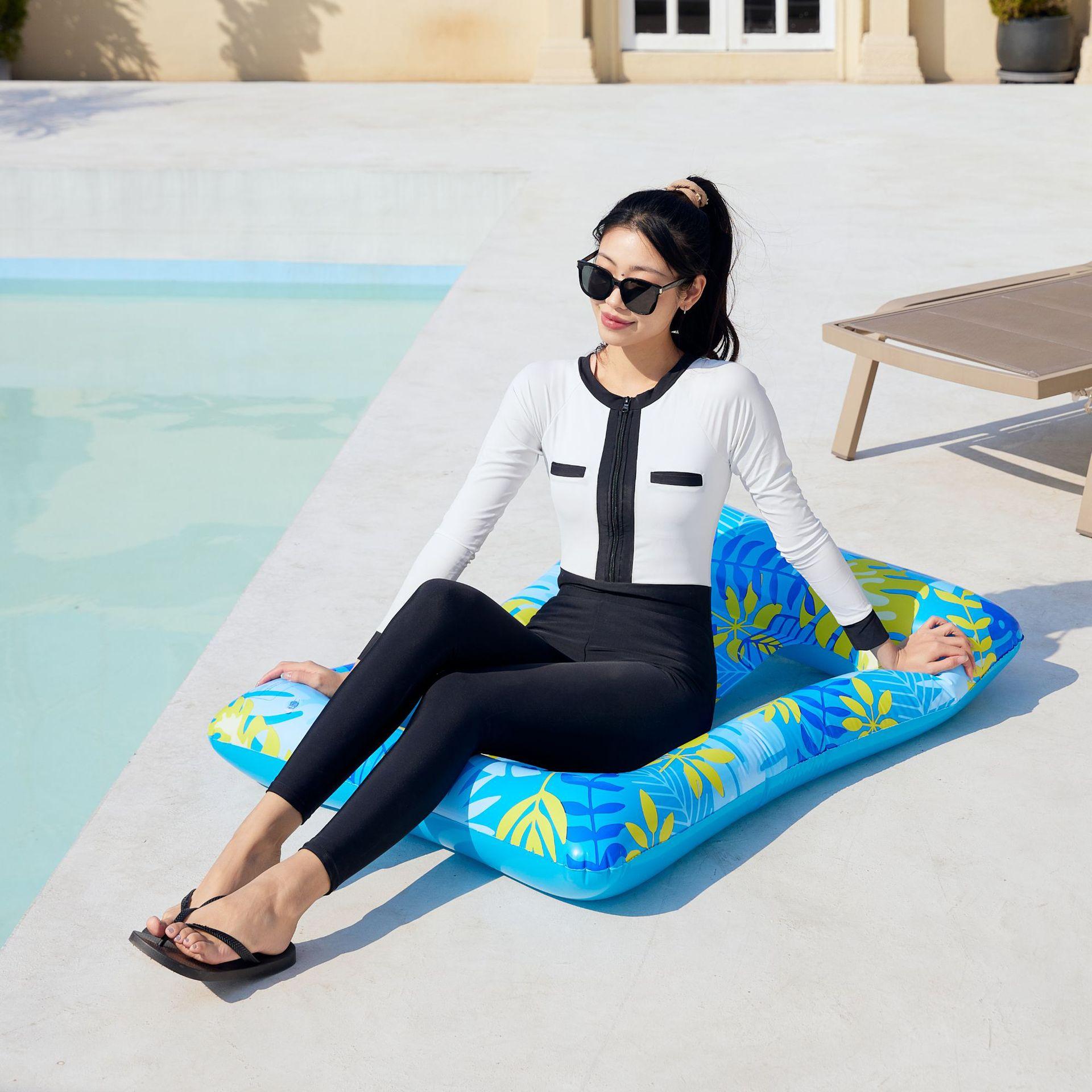 Transfronteiriço em estoque Folha em forma de campo inflável flutuante linha água inflável espreguiçadeira piscina ao ar livre folha flutuante cama flutuante