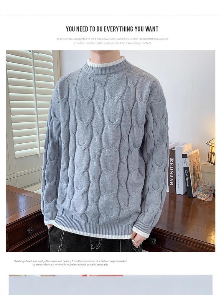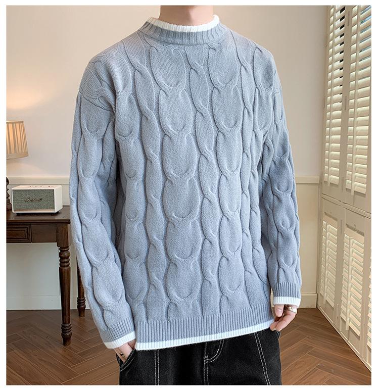 Compre Suéter da Moda para Homens, Tricô Grosso de Outono e Inverno, Nova Camisa Básica Solta 2026, Suéter de Tricô Quente no atacado no Joom.pro