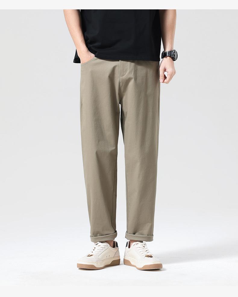 Novas calças casuais de primavera de 2025, calças masculinas estilo coreano, soltas, justas, com aparência reta, calças largas da marca da moda para homens