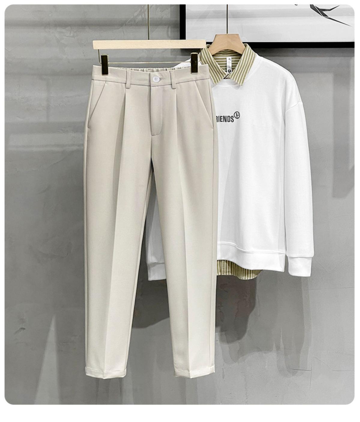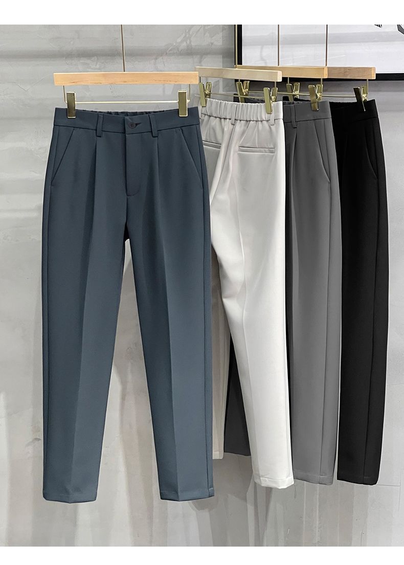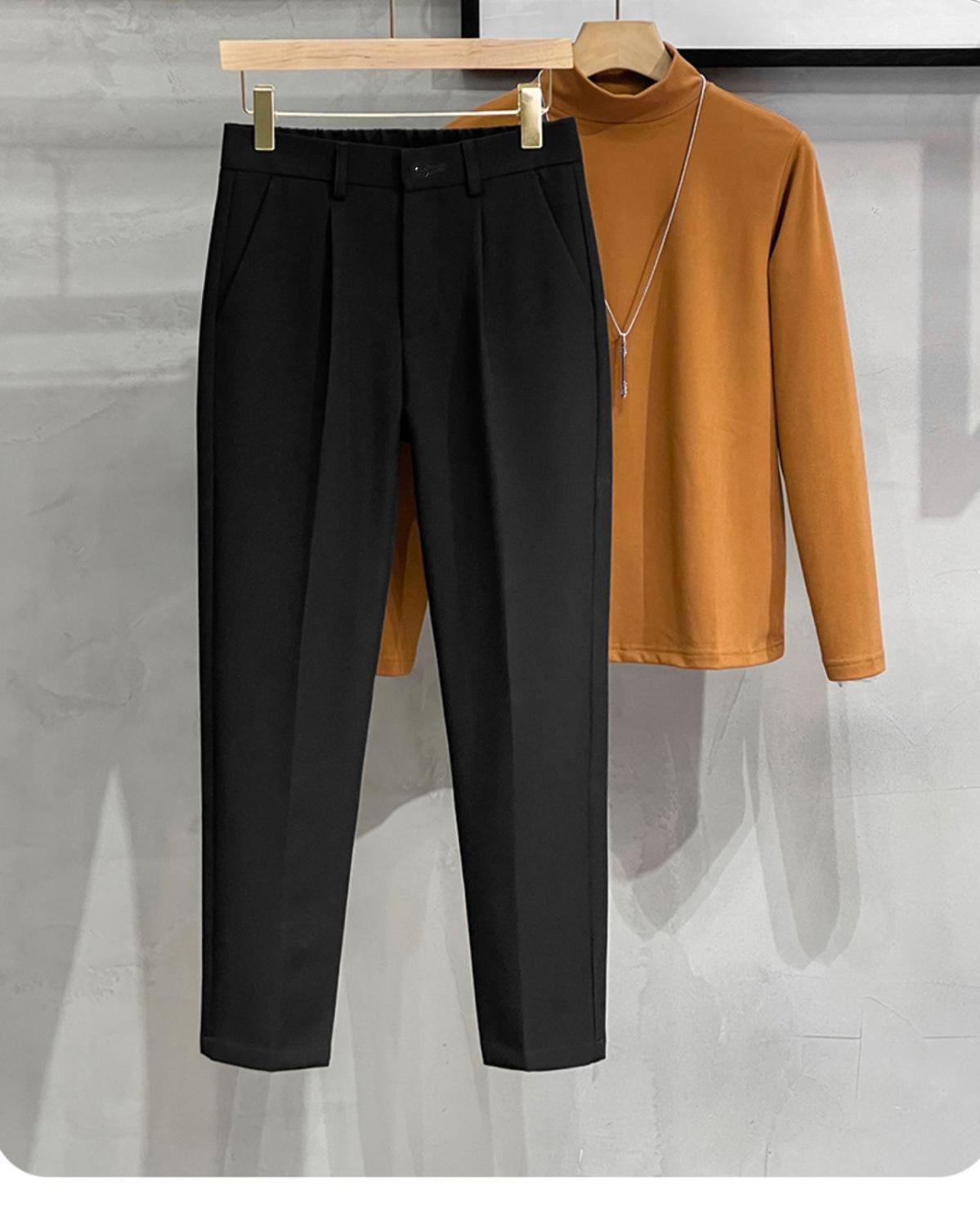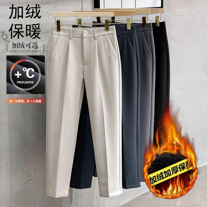 Compre Calças masculinas grossas com forro de lã, calças curtas leves e luxuosas, soltas, retas, de cor sólida, casuais, estilo britânico no atacado no Joom.pro