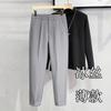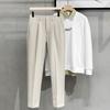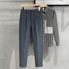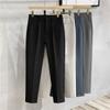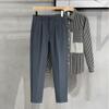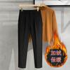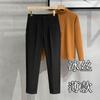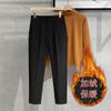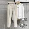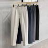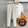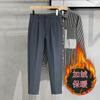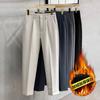 Calças masculinas grossas com forro de lã, calças curtas leves e luxuosas, soltas, retas, de cor sólida, casuais, estilo britânico