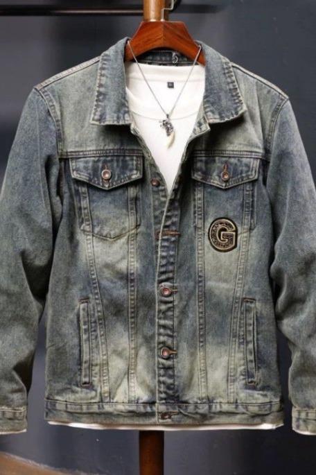 Jaqueta jeans de marca da moda estilo americano, nova moda masculina, bordada de alta qualidade, solta, primavera e outono, jaqueta masculina para homens