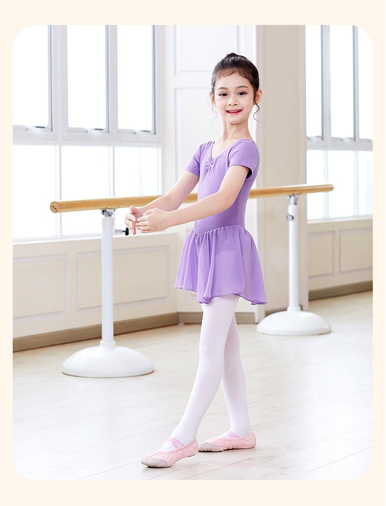 Roupas de dança infantil Roupas de prática feminina Roupas de ginástica Suéter Meninas Vestido de dança de manga curta Vestido de balé Roupas de dança chinesa para o verão