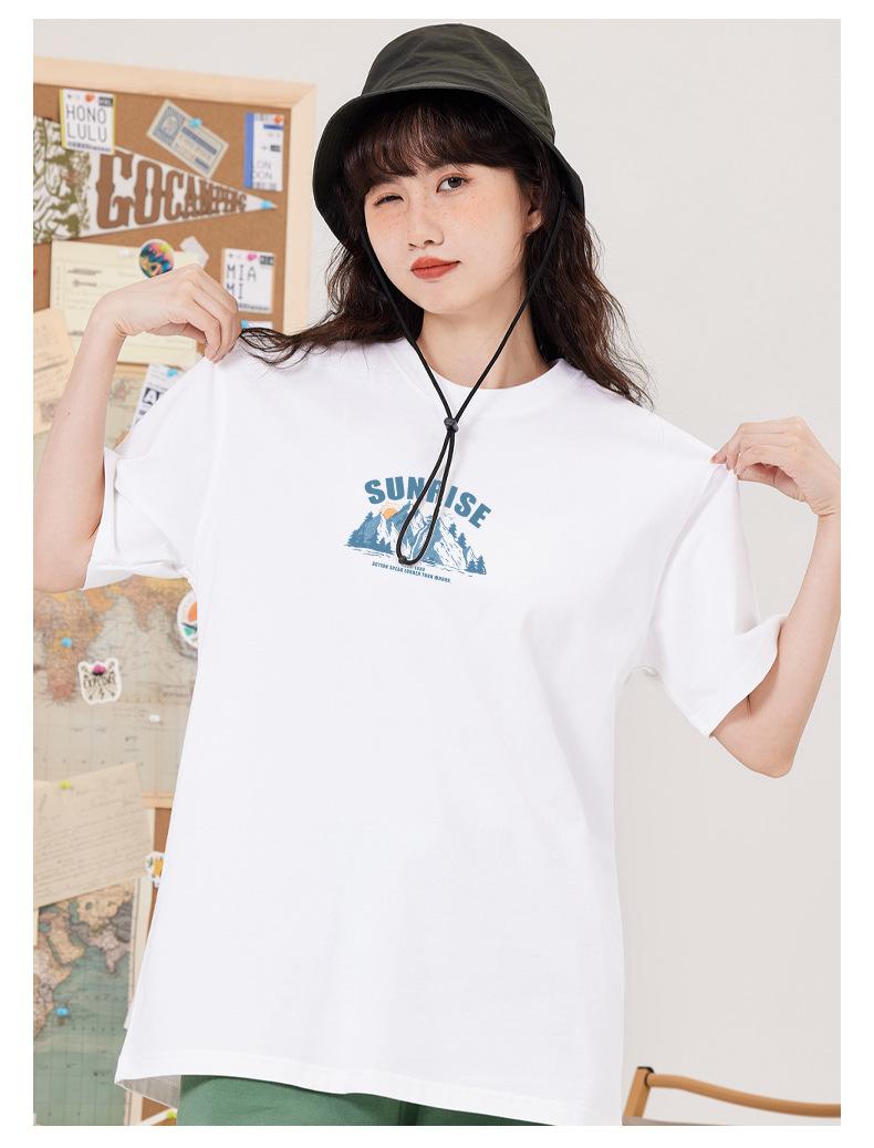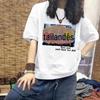 Camiseta Solta de Algodão Feminina Verão 2023 Nova Moda Marca Estampada Camiseta Básica Masculina Combina com Tudo Simples Top de Manga Curta Ins