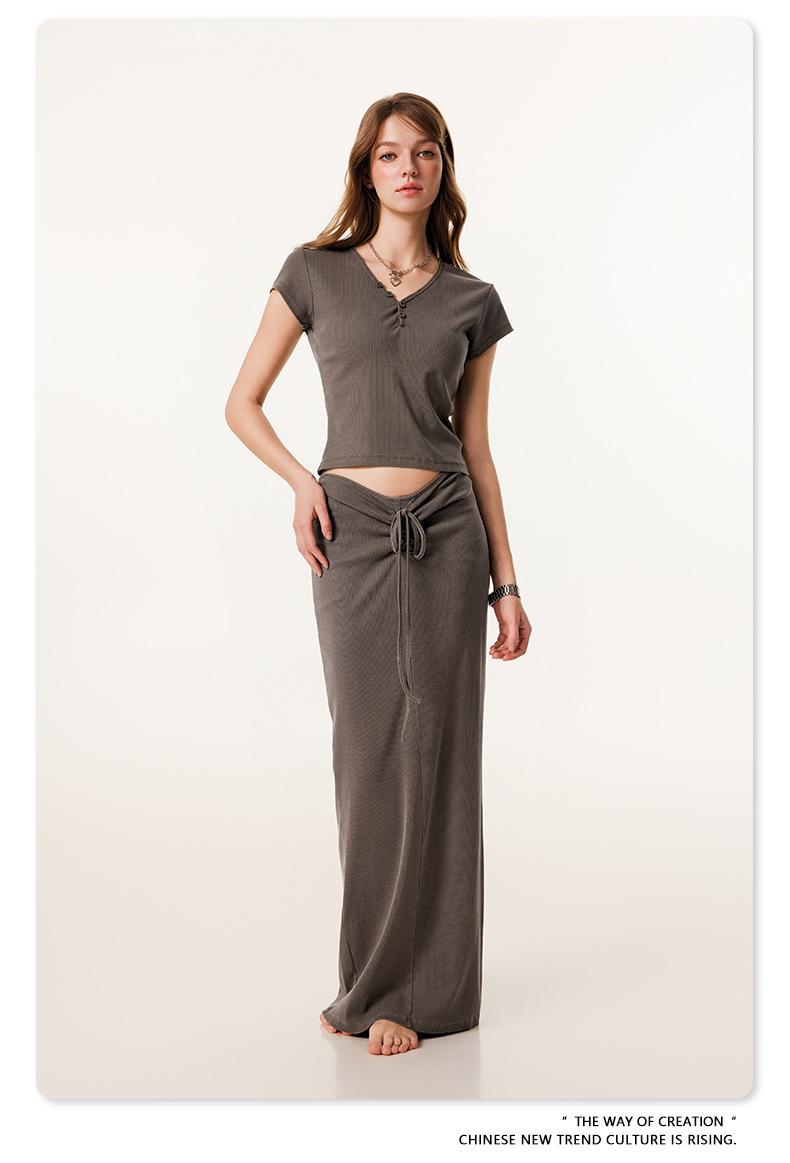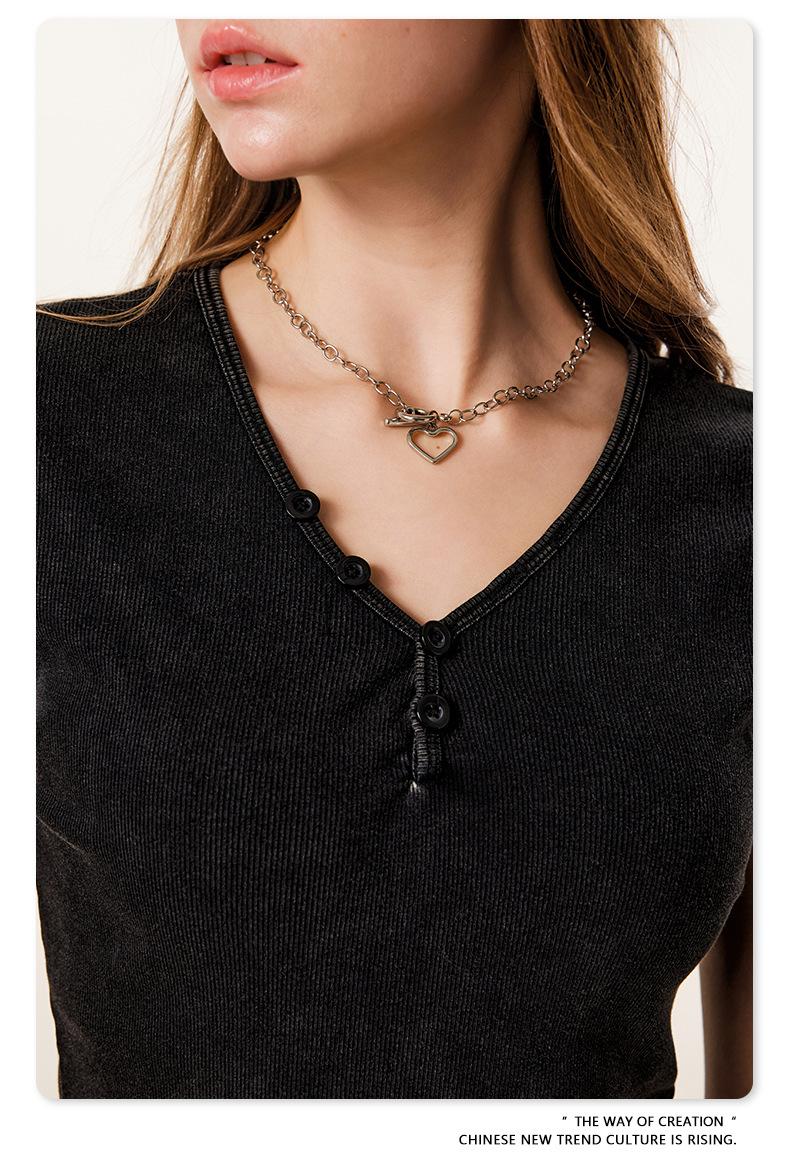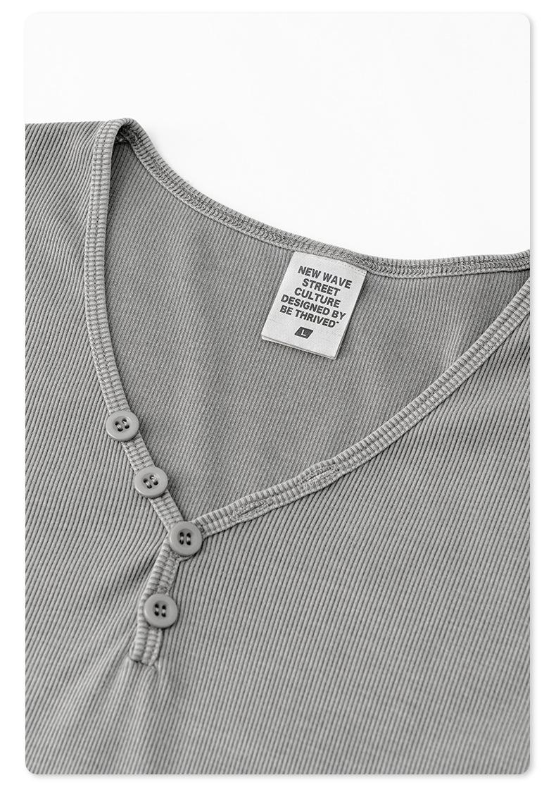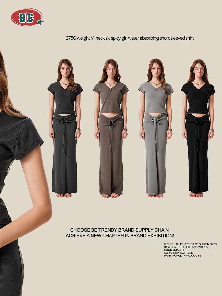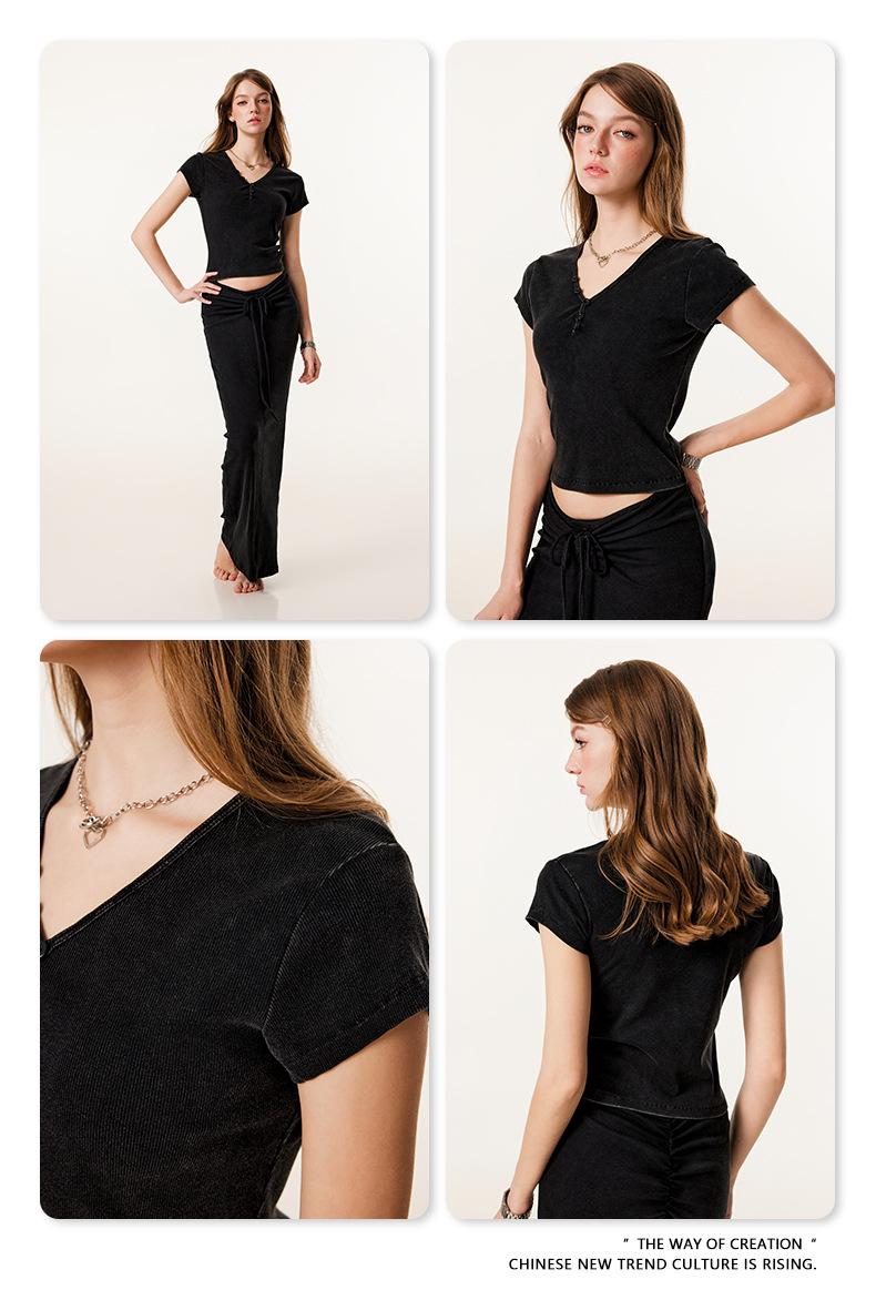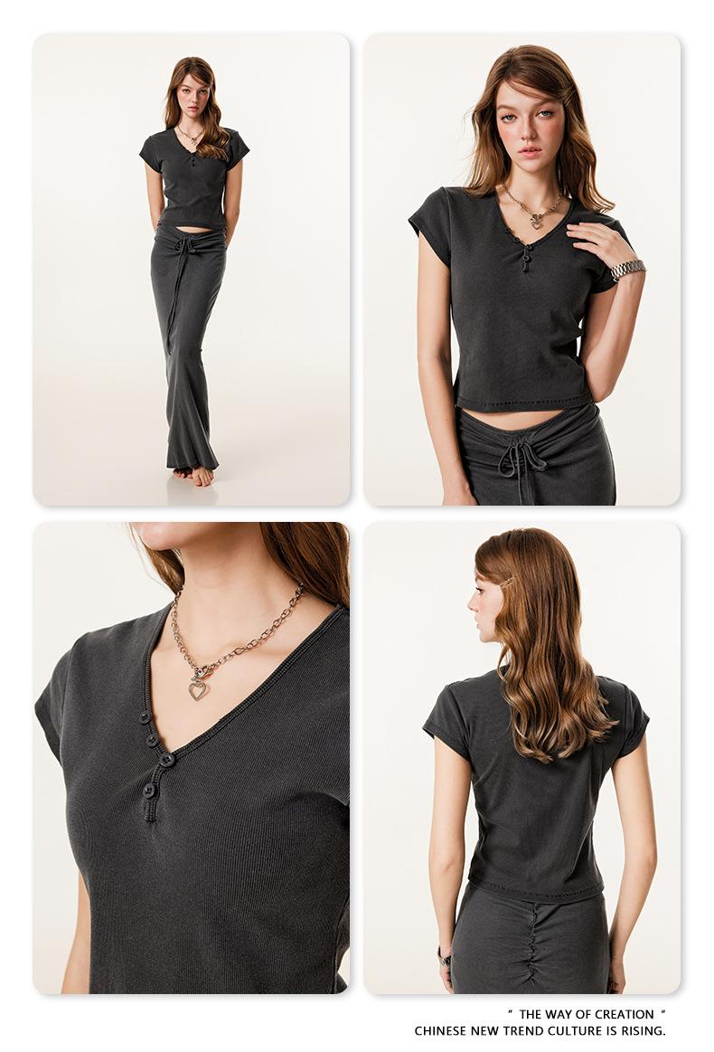 Compre Seja Roupa Feminina 2025 Verão Design Retrô Americano Sexy Slim Top Botão Decote V Ombro Direito Camiseta de Manga Curta para Mulheres no atacado no Joom.pro