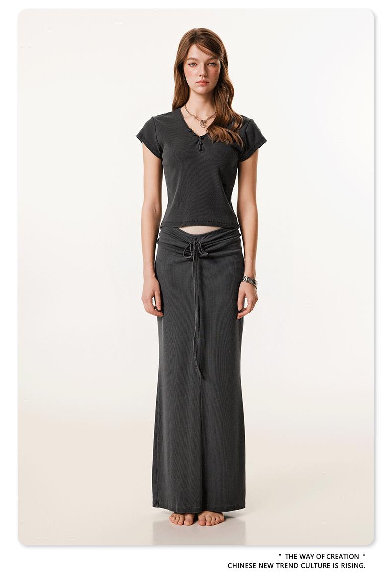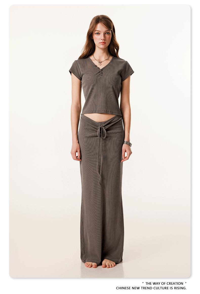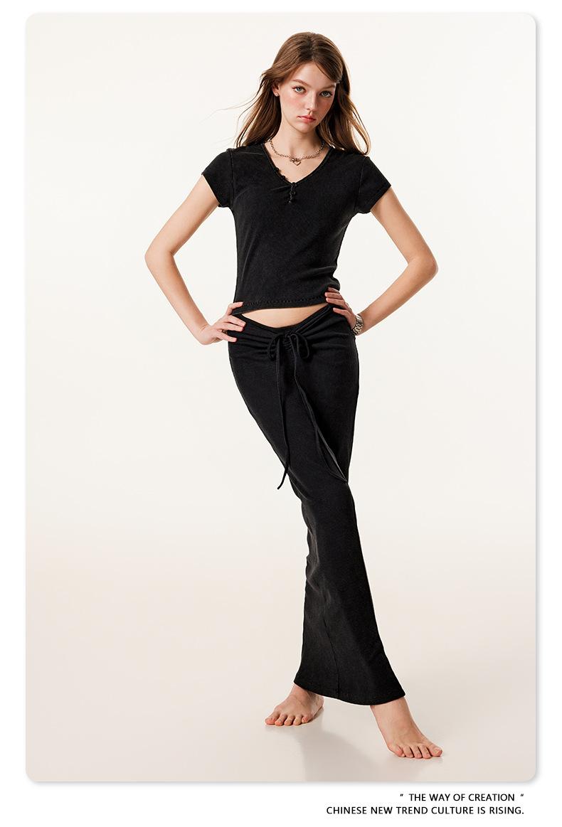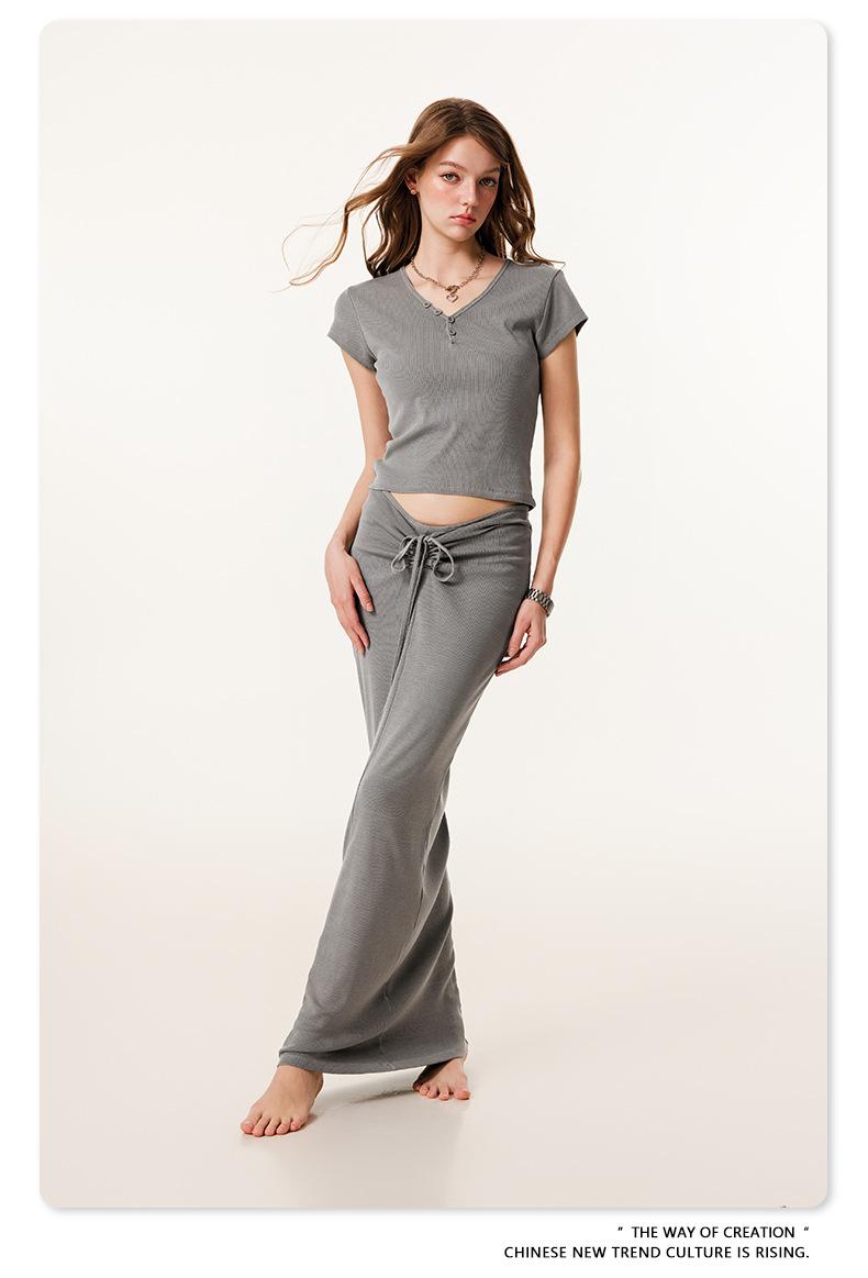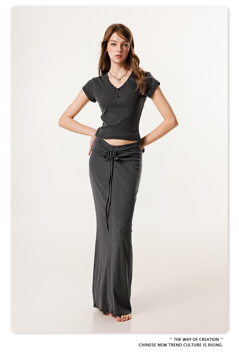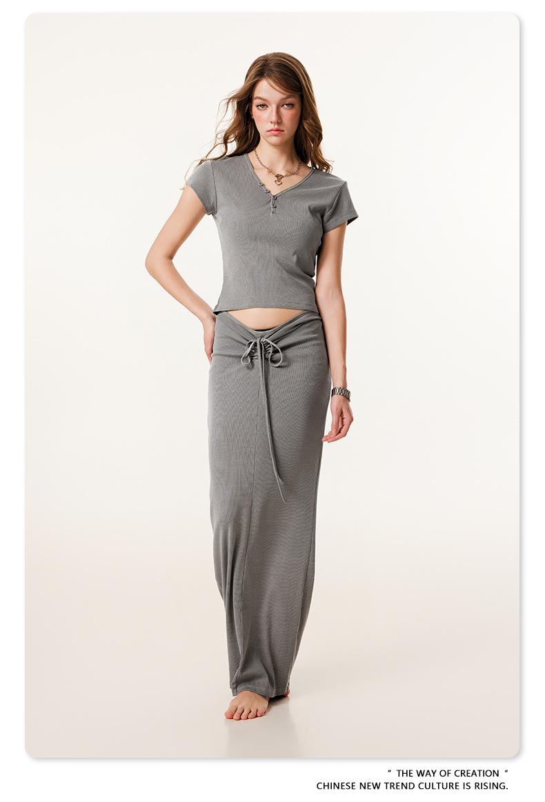 Compre Seja Roupa Feminina 2025 Verão Design Retrô Americano Sexy Slim Top Botão Decote V Ombro Direito Camiseta de Manga Curta para Mulheres no atacado no Joom.pro