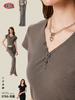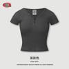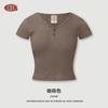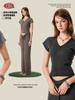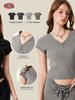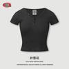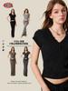 Seja Roupa Feminina 2025 Verão Design Retrô Americano Sexy Slim Top Botão Decote V Ombro Direito Camiseta de Manga Curta para Mulheres