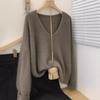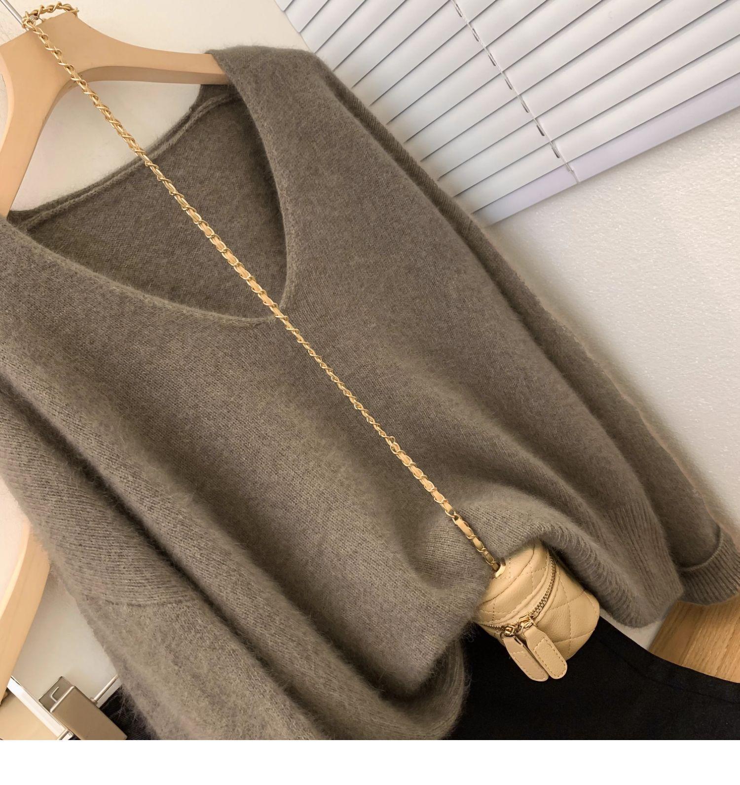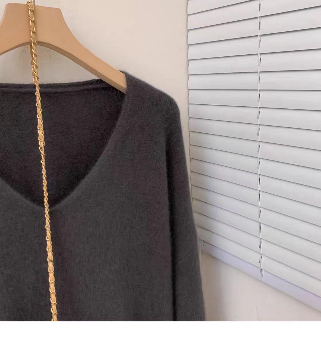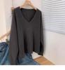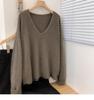 Estilo coreano preguiçoso estilo com decote em V camisola de lã das mulheres soltas emagrecimento nova chegada camelo malha de manga comprida camisa base de cashmere para mulheres