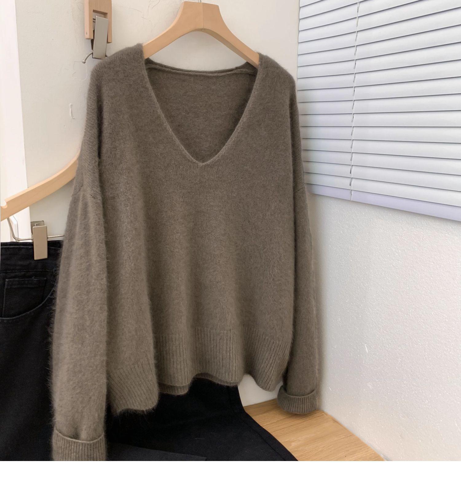 Compre Estilo coreano preguiçoso estilo com decote em V camisola de lã das mulheres soltas emagrecimento nova chegada camelo malha de manga comprida camisa base de cashmere para mulheres no atacado no Joom.pro