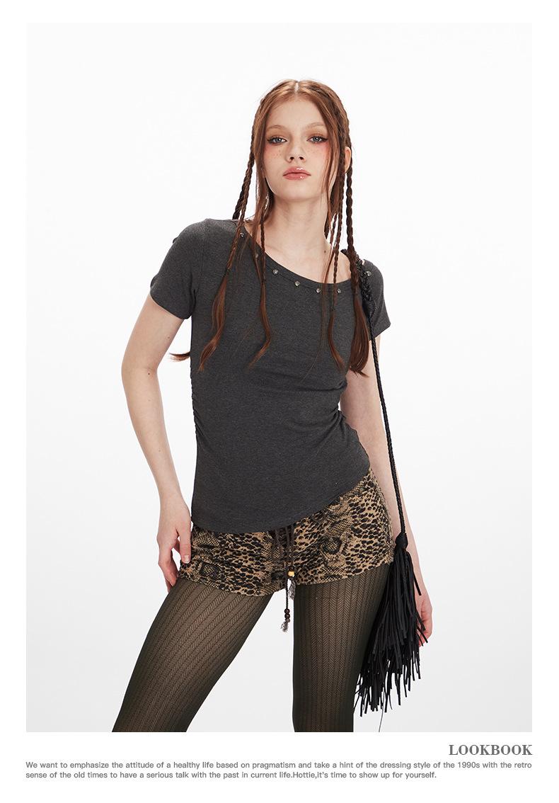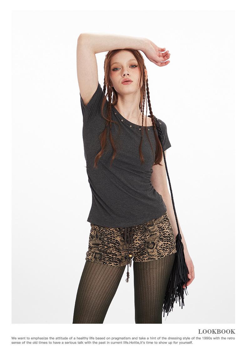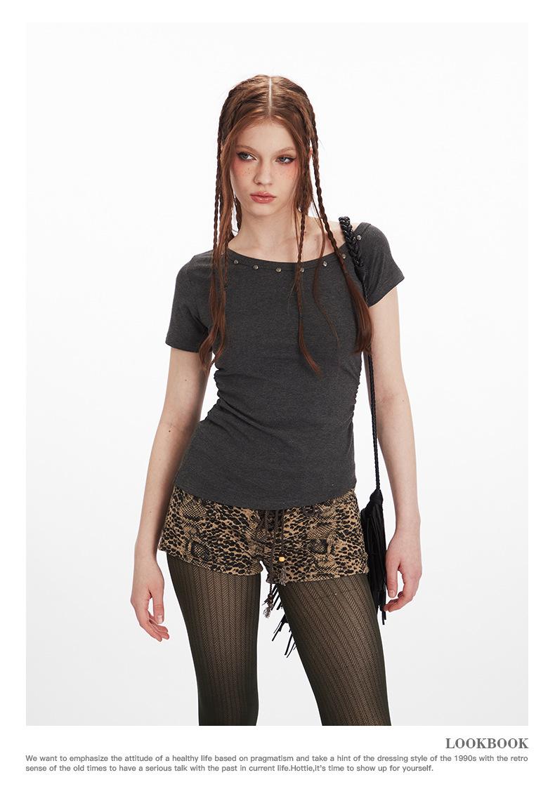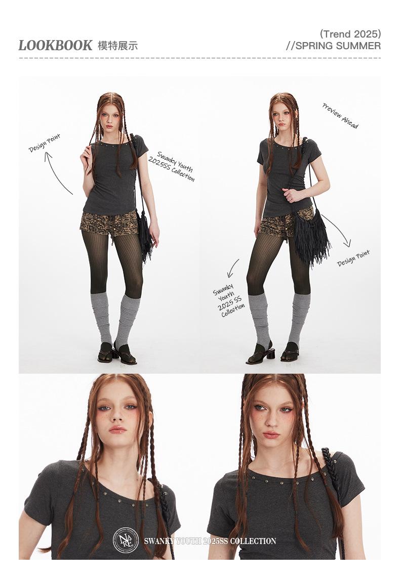 HeyHenry American Style Hot Girl Slim-fit Camiseta de manga curta feminina 2025 Verão Ombro exposto Top de cintura curta