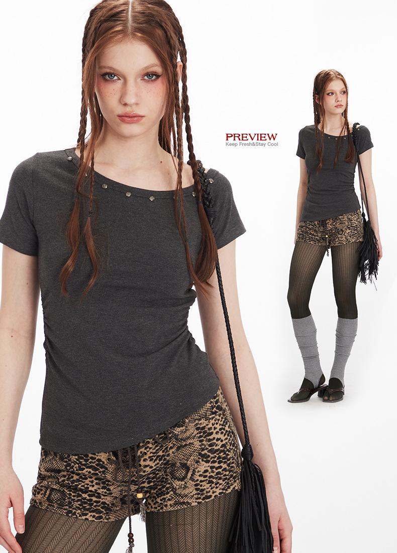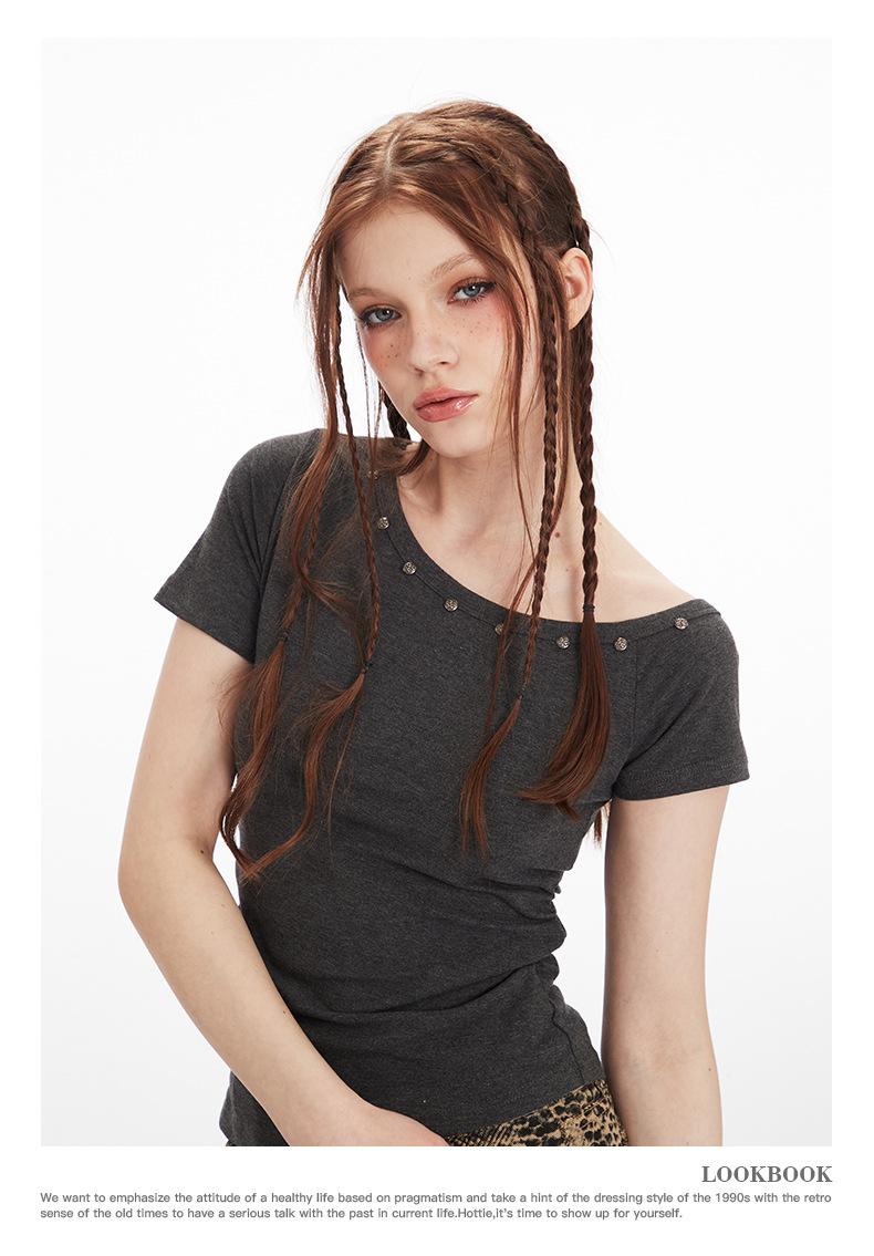 Compre HeyHenry American Style Hot Girl Slim-fit Camiseta de manga curta feminina 2025 Verão Ombro exposto Top de cintura curta no atacado no Joom.pro