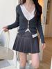 Suéter de Tricô Falso Duas Peças em Cor Contrastante para Mulheres, Novo Estilo Coreano Primavera 2026 Slim Fit Manga Longa Gola V
