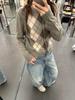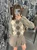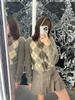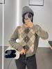 Ce Cardigã de Tricô de Lã Xadrez Diamante 25 Início da Primavera Gola Redonda Manga Longa Retrô Slim Pequena Fragrância Casual Top Feminino
