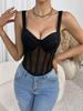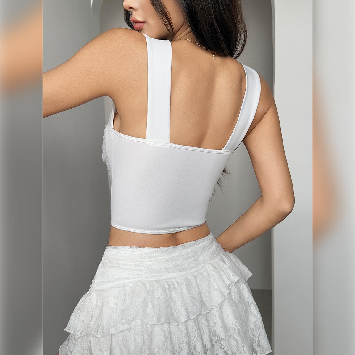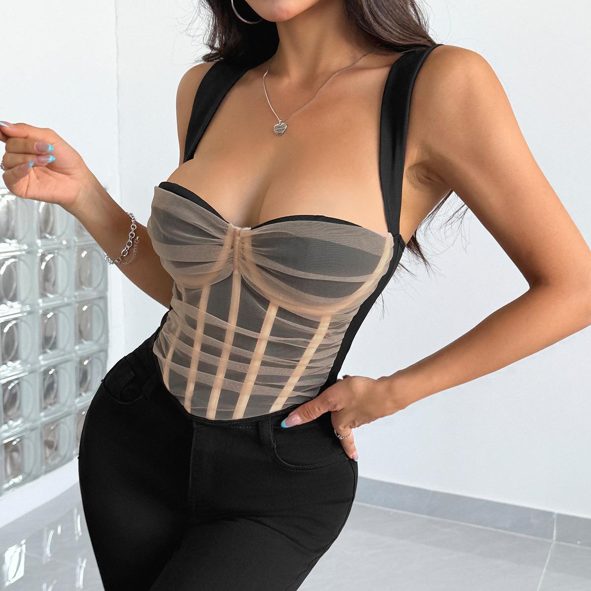 Novo estilo europeu e americano transfronteiriço feminino sexy malha perspectiva costura cor peito algodão espinha de peixe sutiã colete 71009