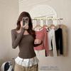 Novo estilo Spice Girl Sexy Pure V-Neck manga comprida T-shirt Base Shirt com manga sino Slim-Fit Slimming Fino Fleece Top