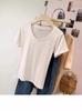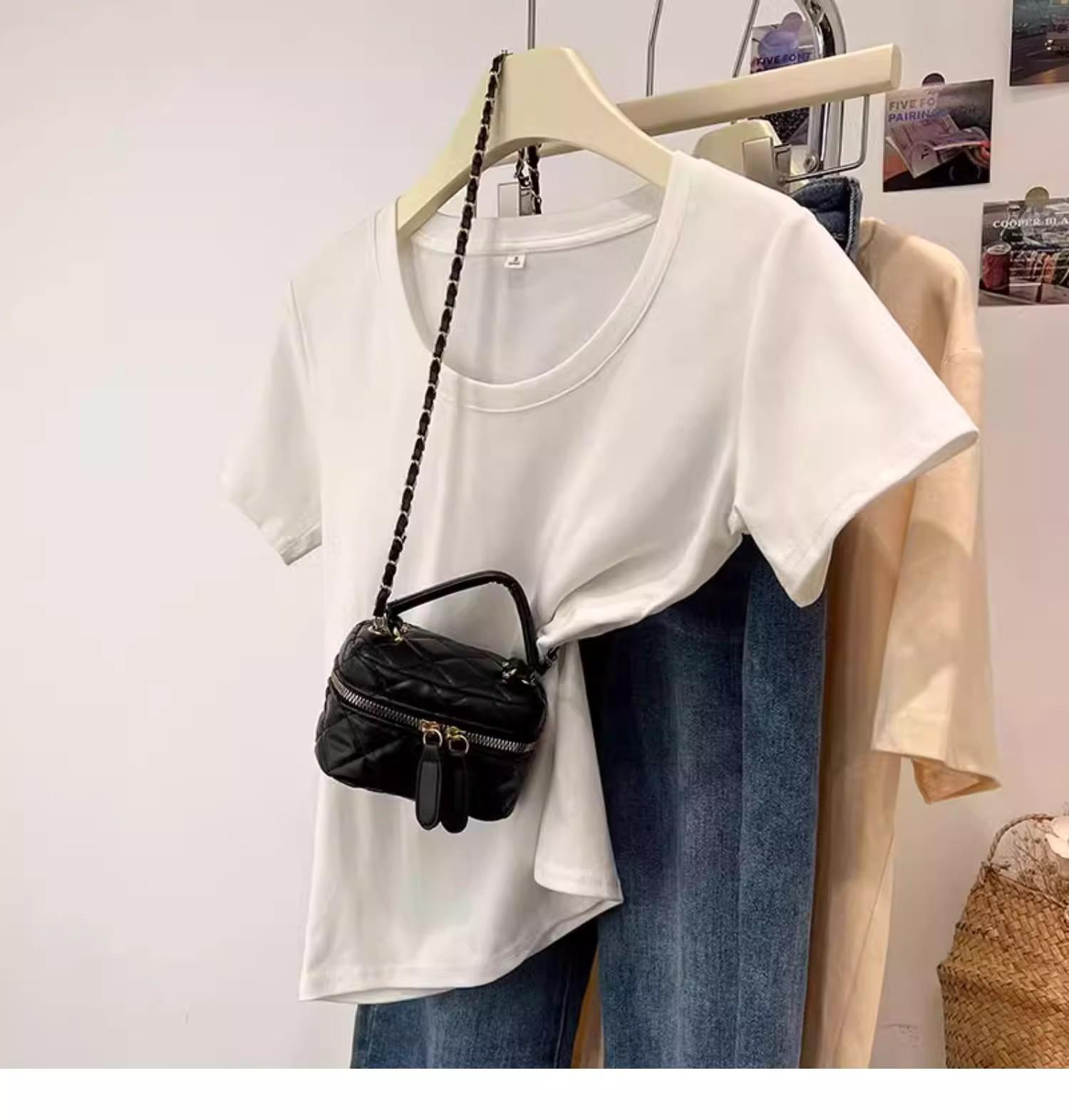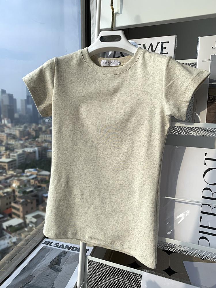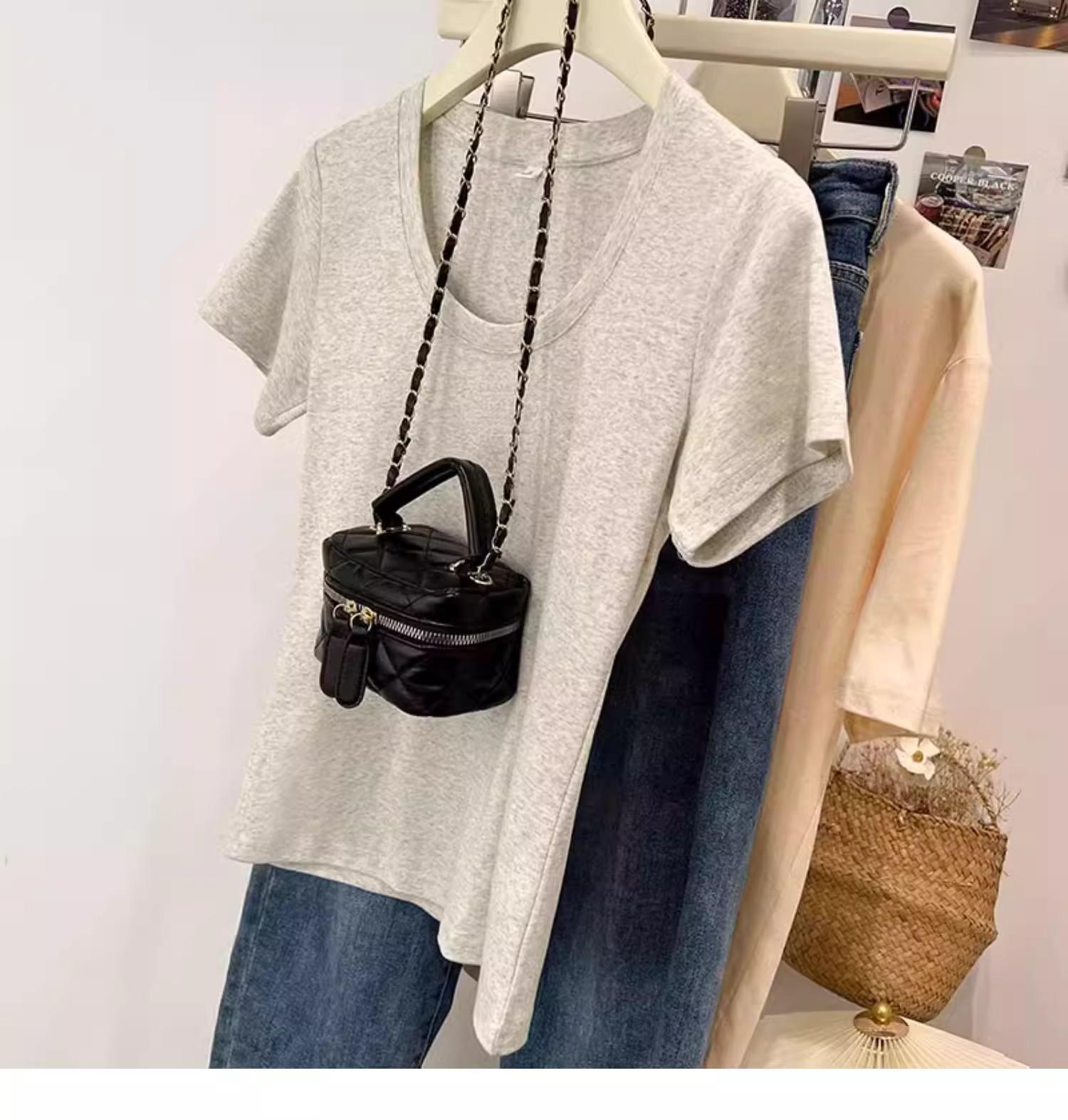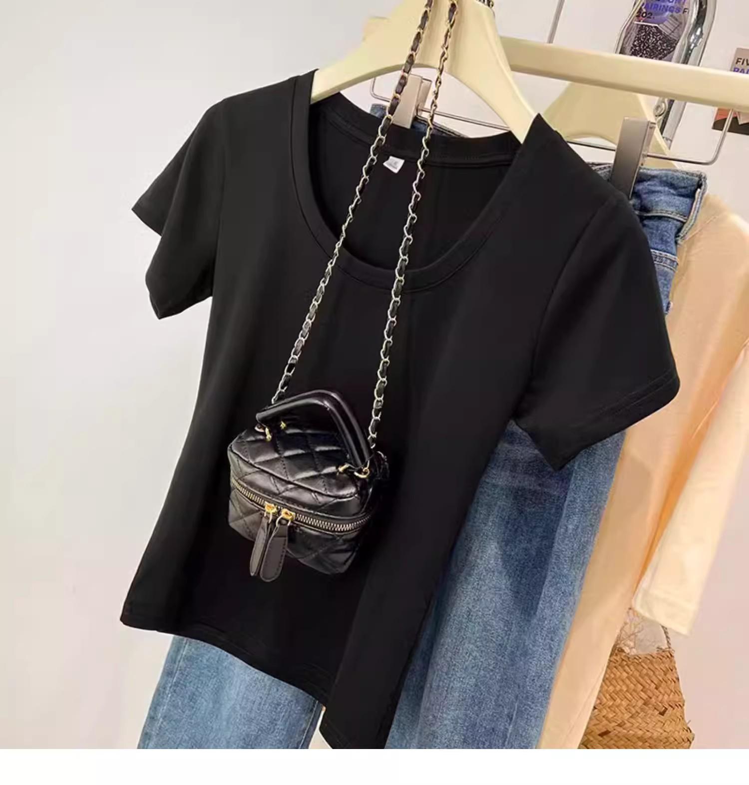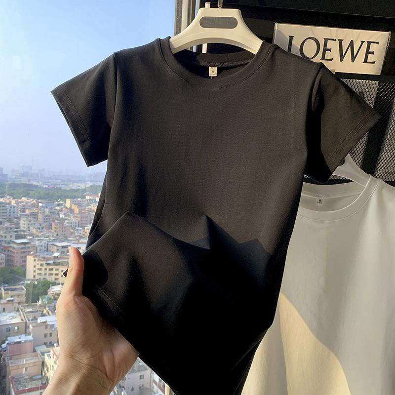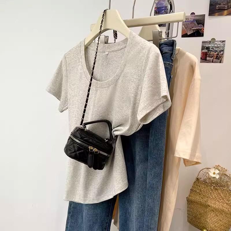 Camiseta de Algodão com Decote U Feminina Manga Curta 2025 Nova Verão Stretch Slim-fit Camiseta Slim-fit Camisa Básica Regata Ombro para Mulheres
