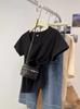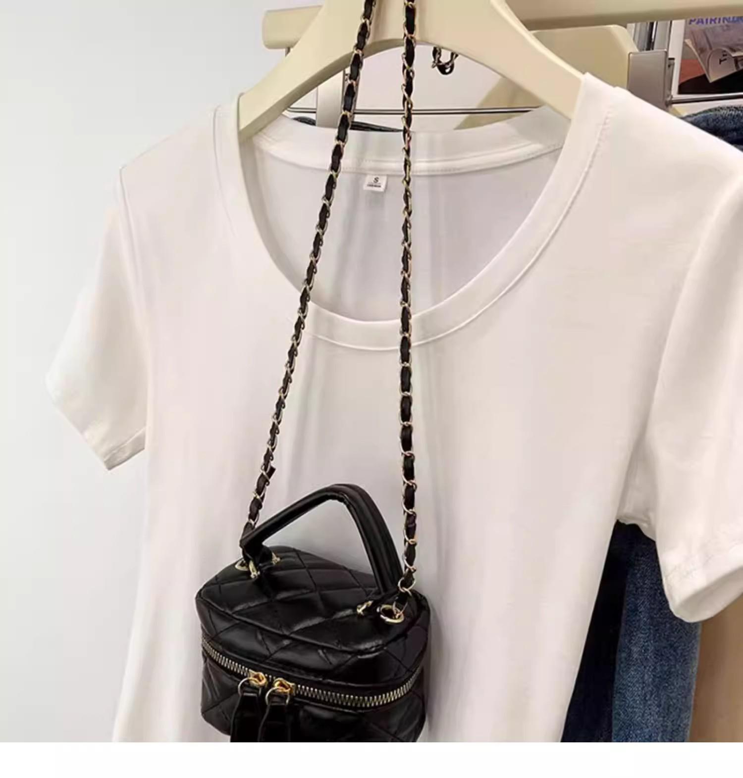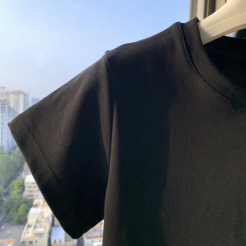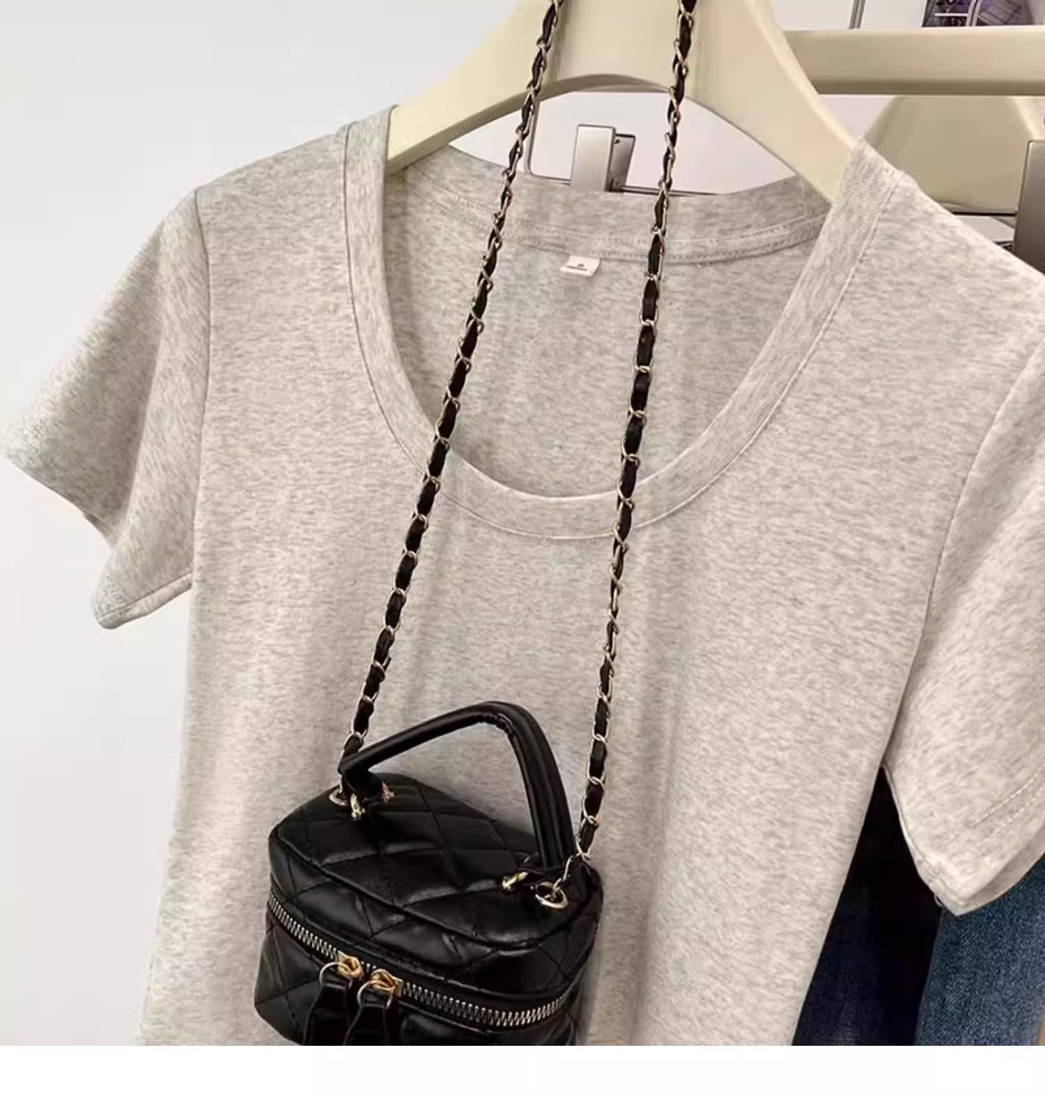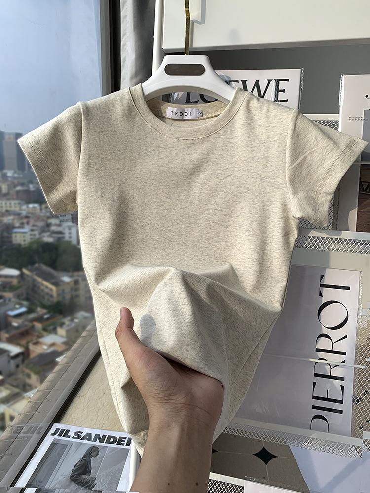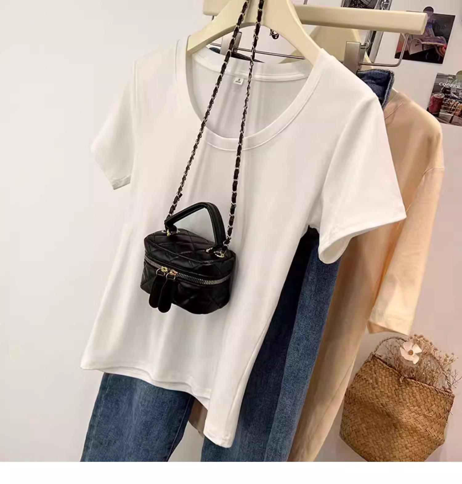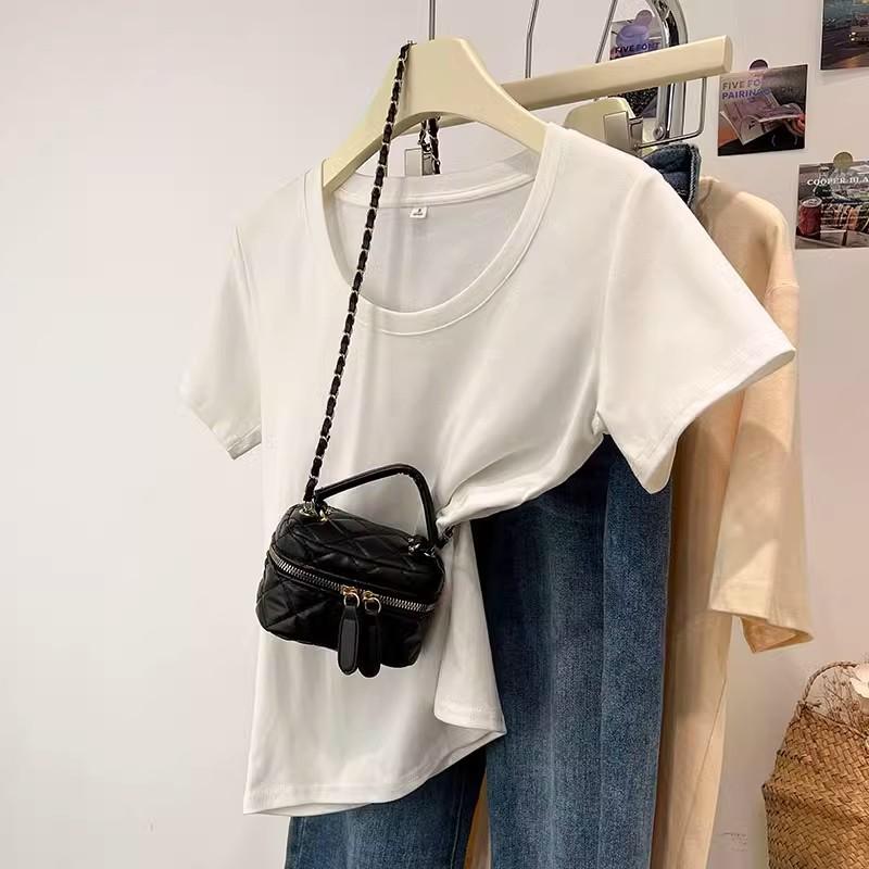 Camiseta de Algodão com Decote U Feminina Manga Curta 2025 Nova Verão Stretch Slim-fit Camiseta Slim-fit Camisa Básica Regata Ombro para Mulheres