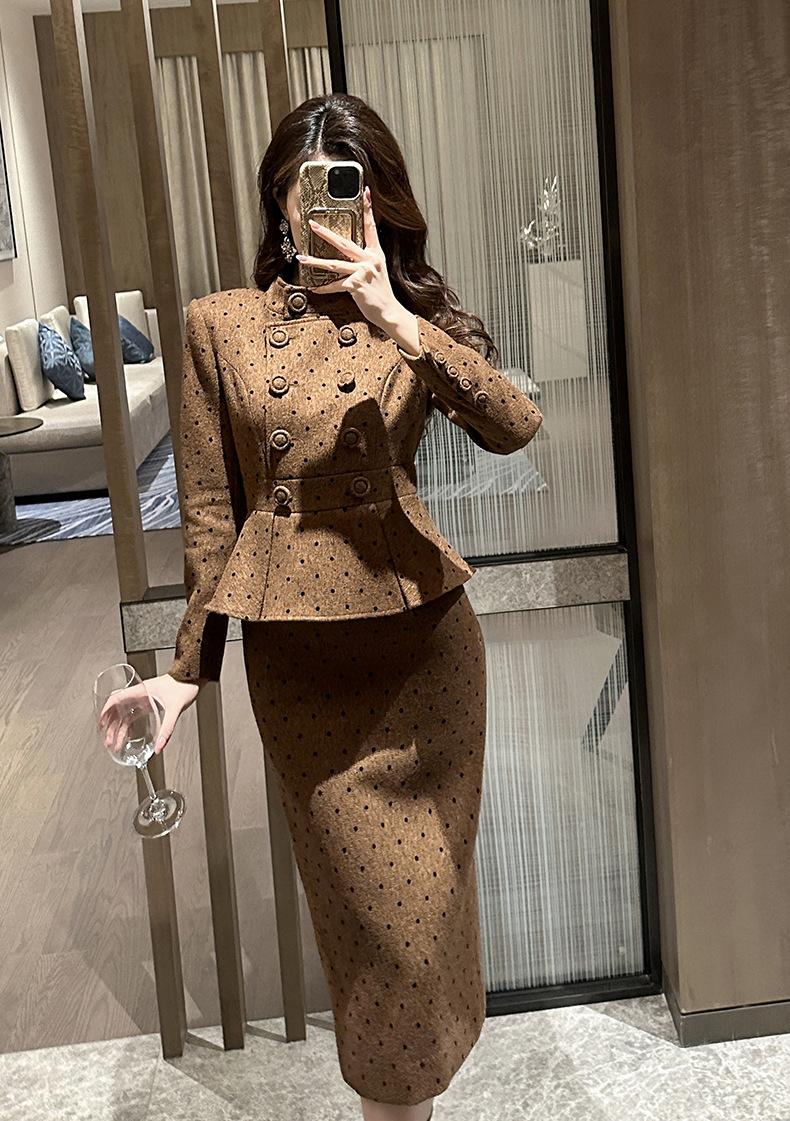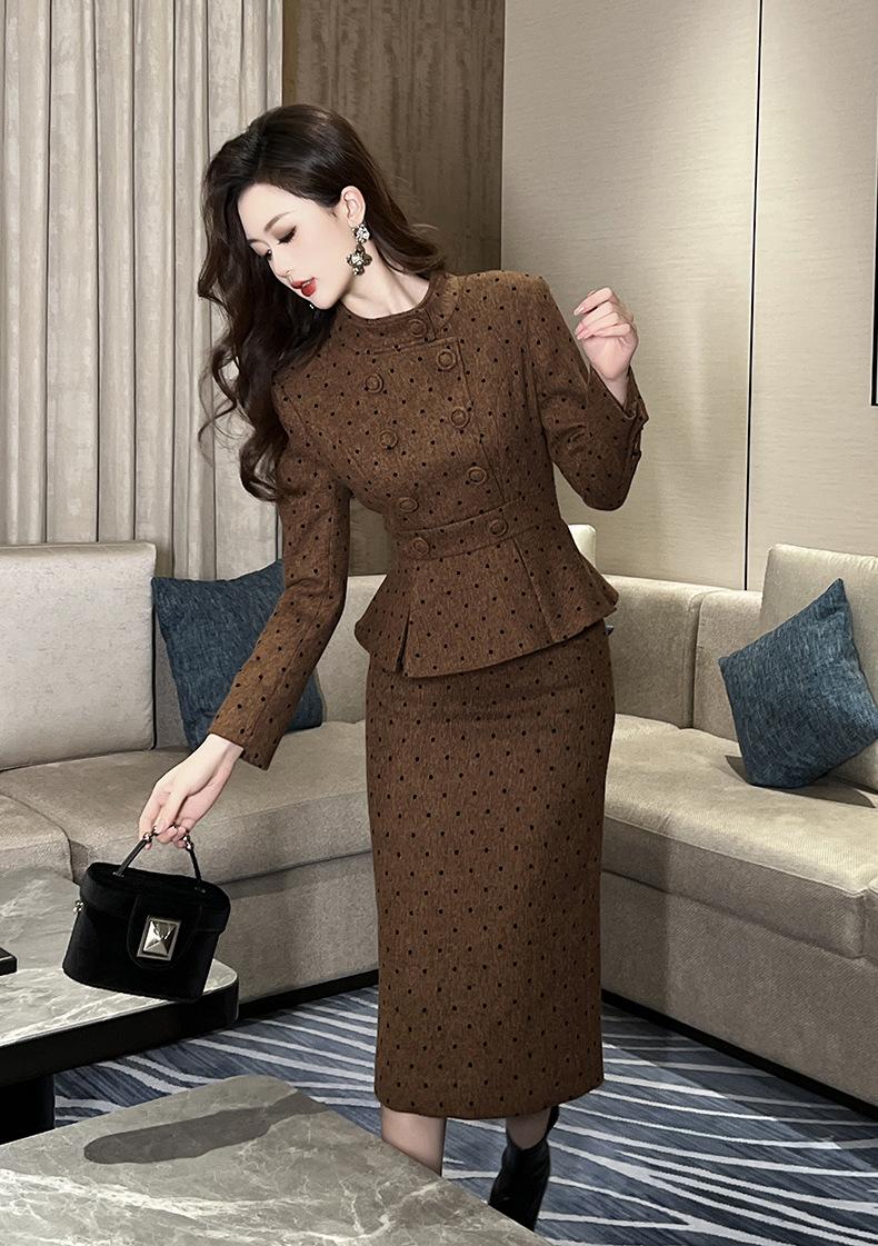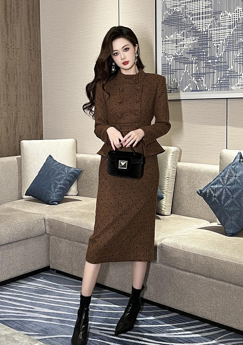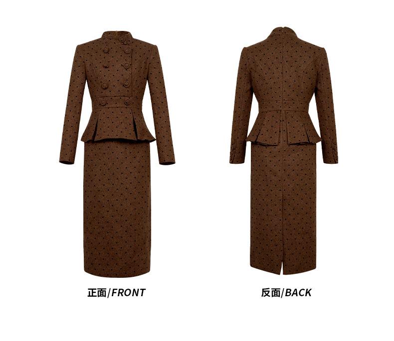 2025 Nova Roupa de Outono Feminina Commuter Elegante Abotoadura Dupla Babados Cobre Cintura Quadril Vestido Poá 61148