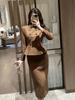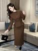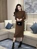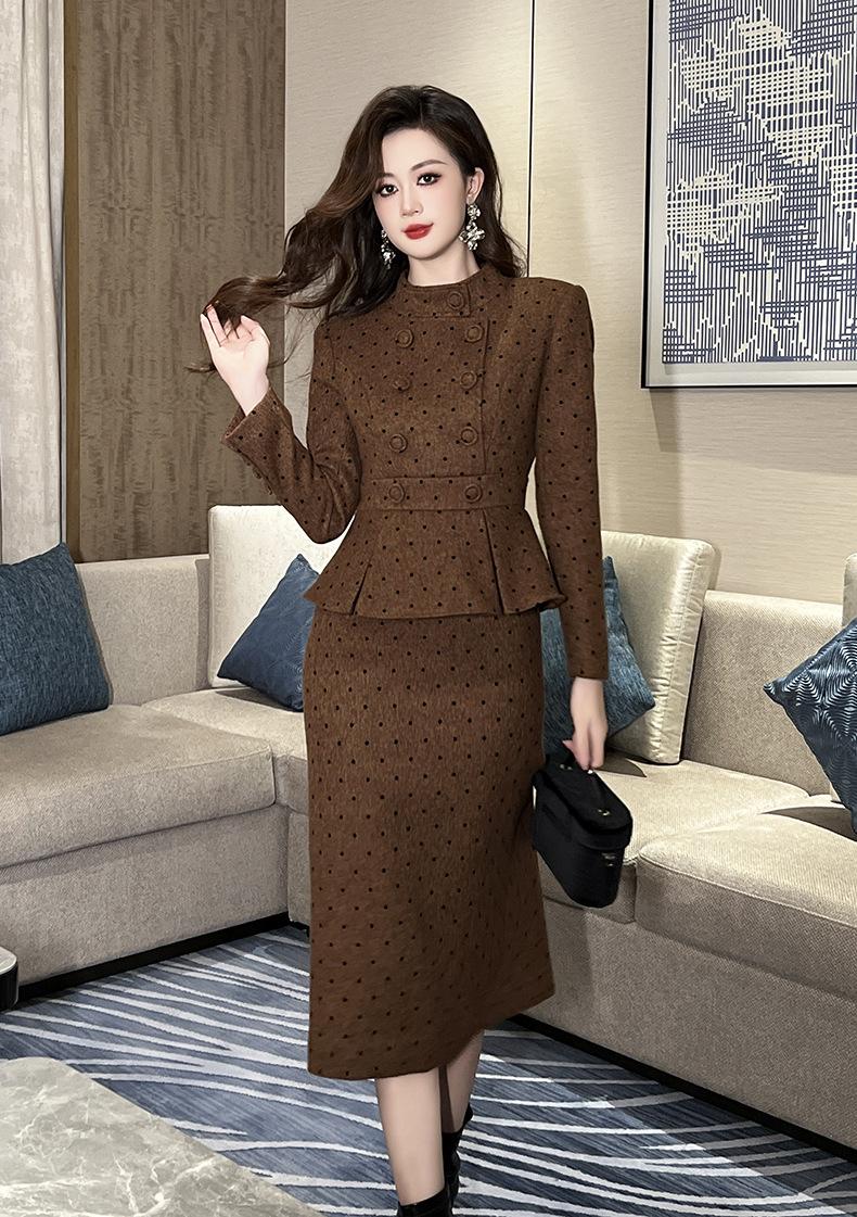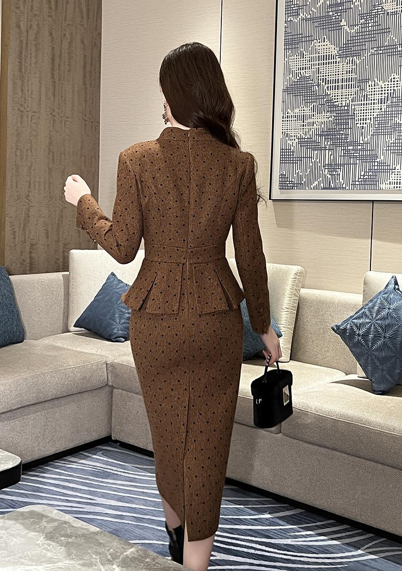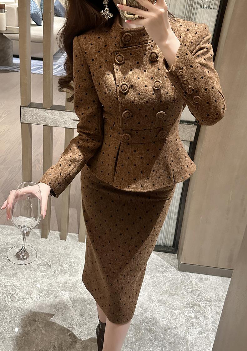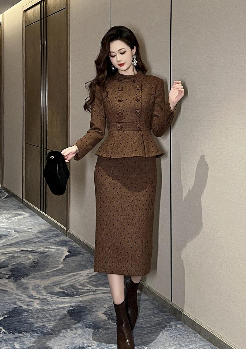 2025 Nova Roupa de Outono Feminina Commuter Elegante Abotoadura Dupla Babados Cobre Cintura Quadril Vestido Poá 61148