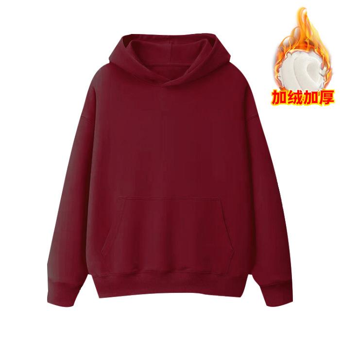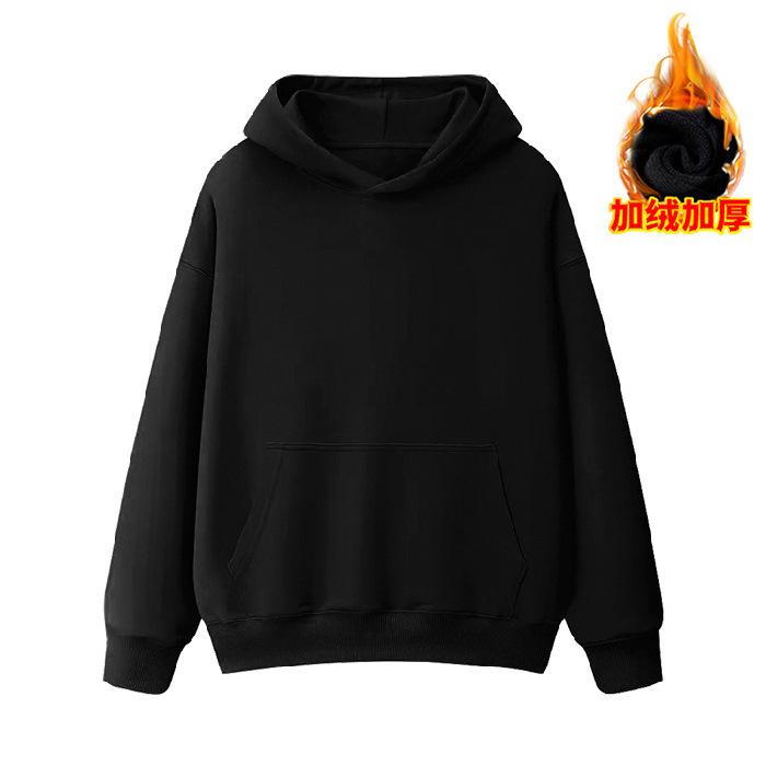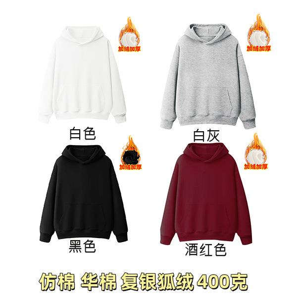 400g Suéter de cor sólida com ombros soltos, masculino e feminino, nova marca de moda, forrado de lã, com capuz grosso, tamanho grande, camisa em branco