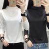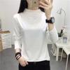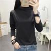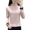 Primavera e outono manga comprida T-shirt mulheres uma geração de pullover meia gola alta fina cor sólida rosa temperamento commuter bottoming camisa maré