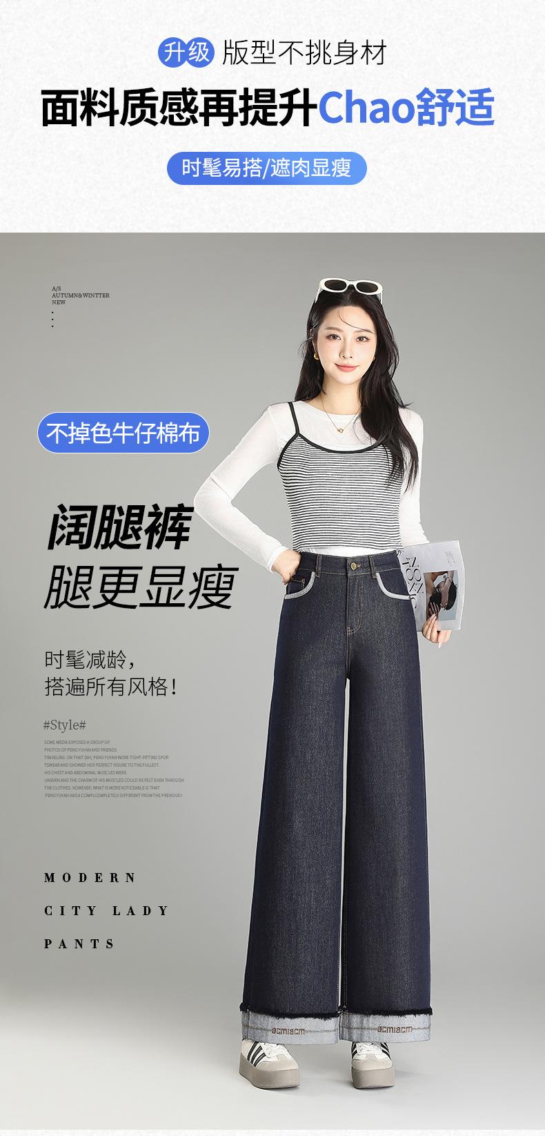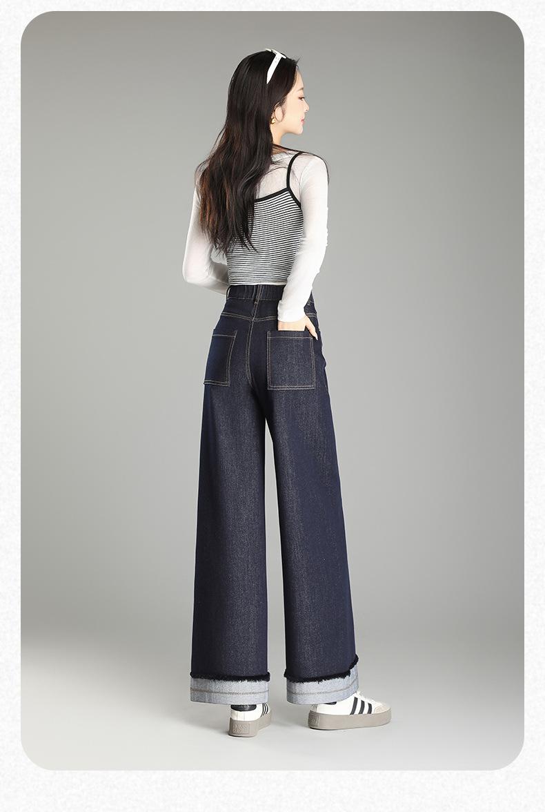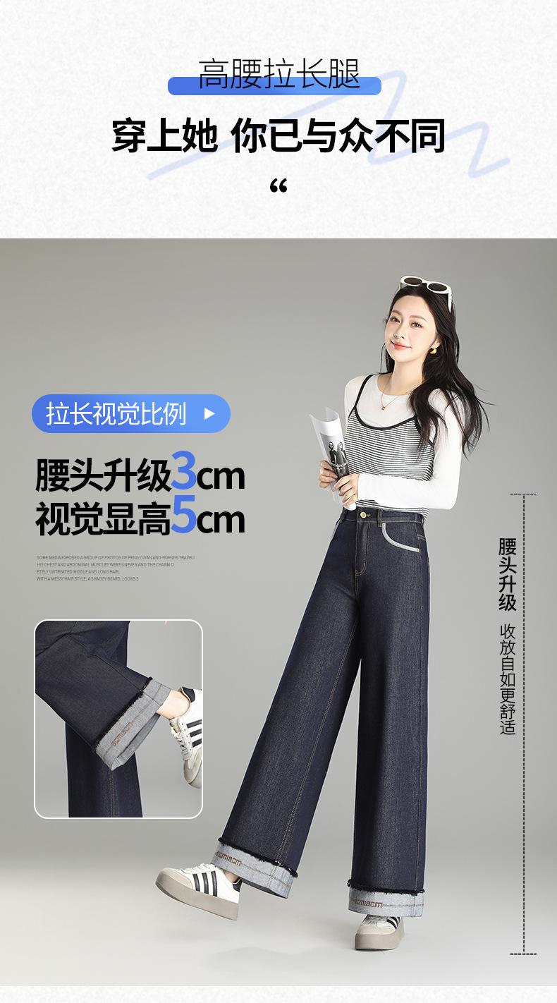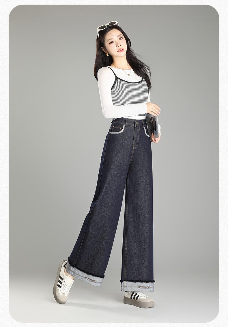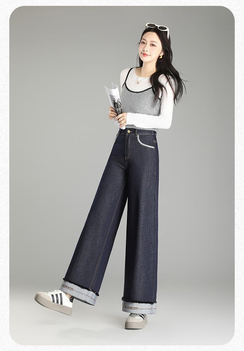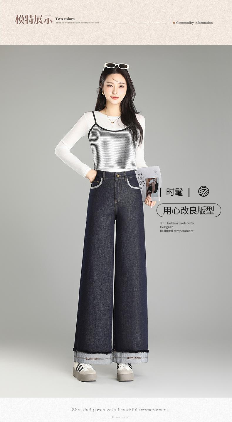 Compre Calça Jeans de Cintura Alta Tannin Blue Wide Leg Feminina 2025 Primavera e Outono Novas Calças Largas Bordadas Retro Calças Casuais para Mulheres no atacado no Joom.pro